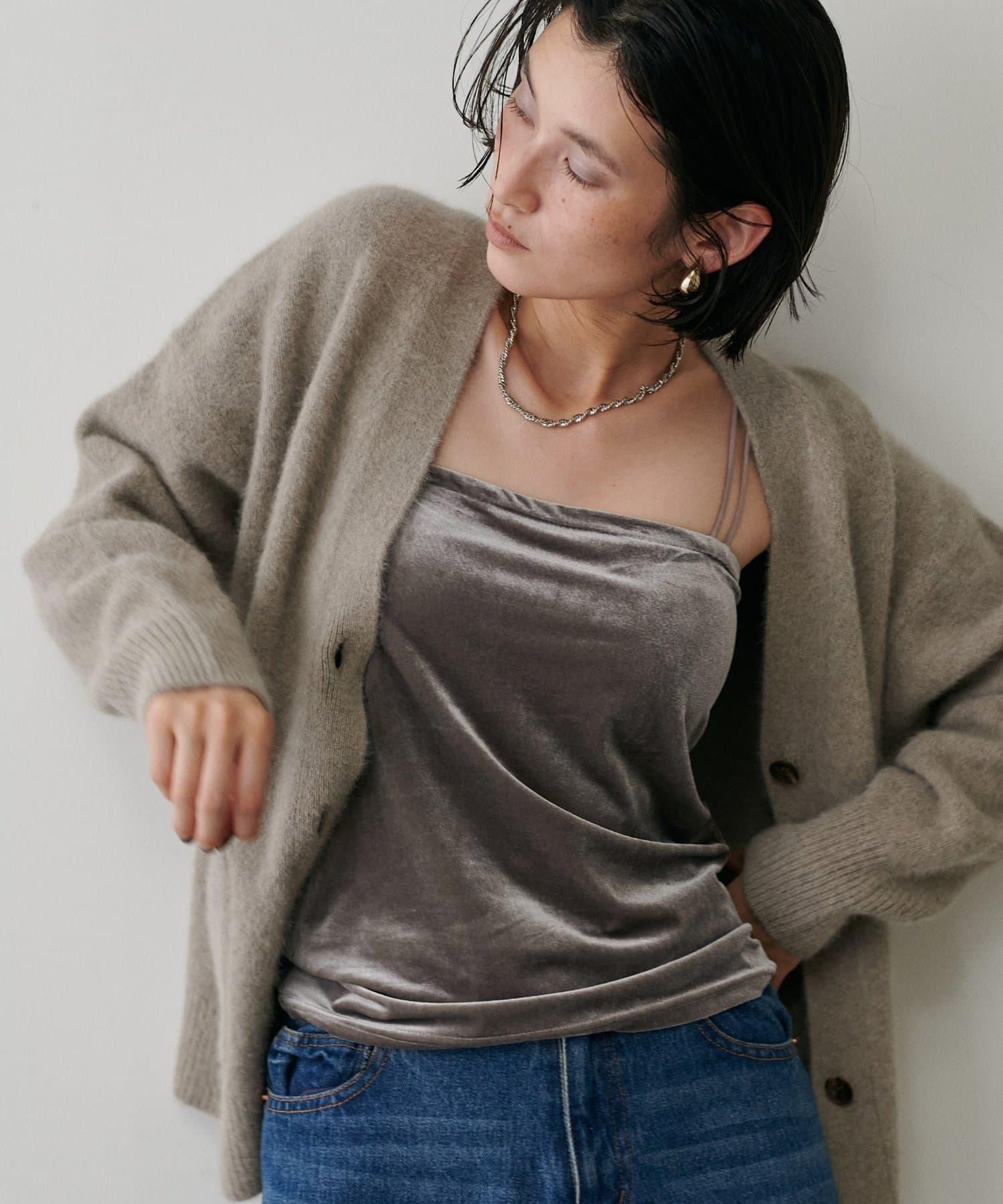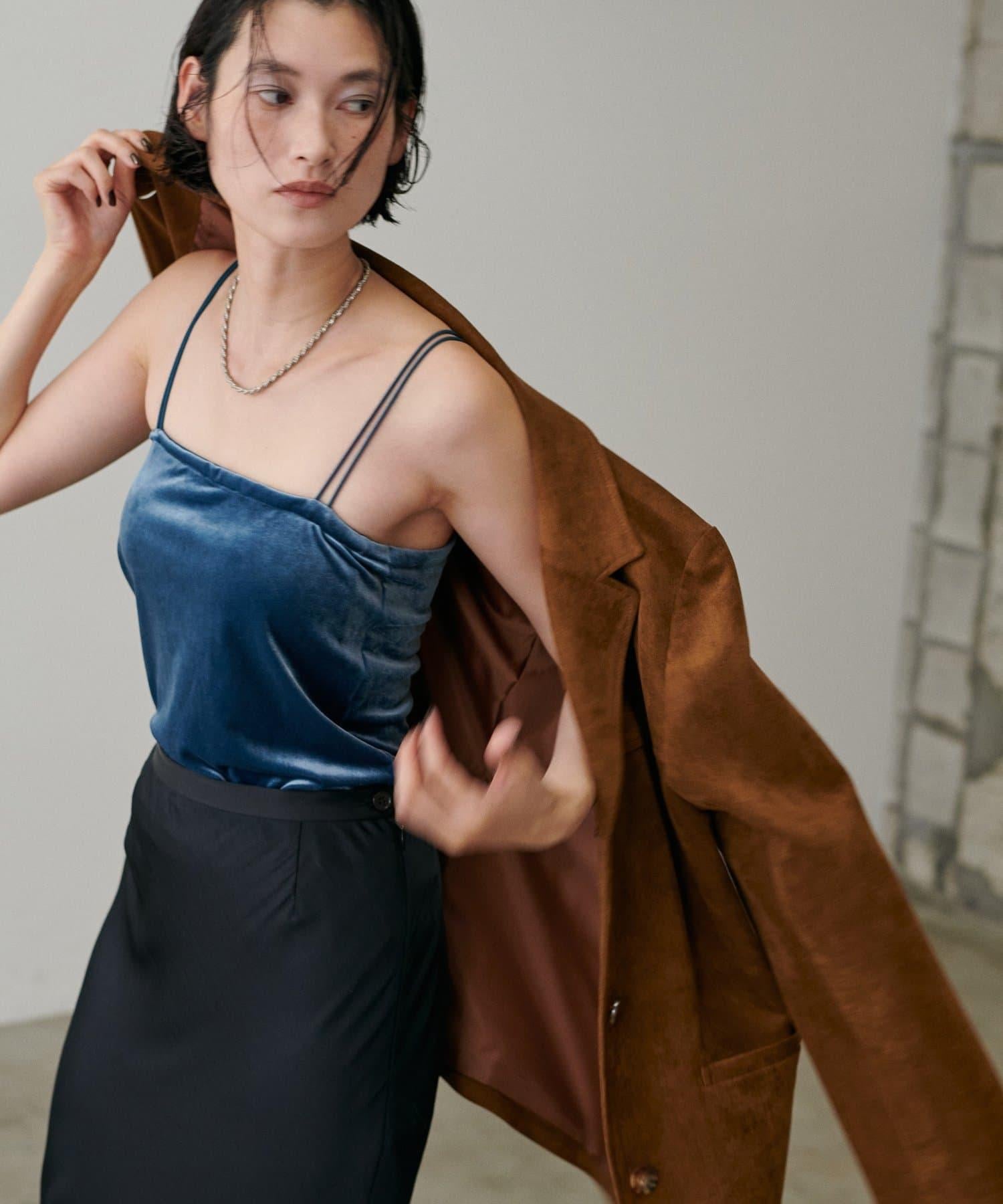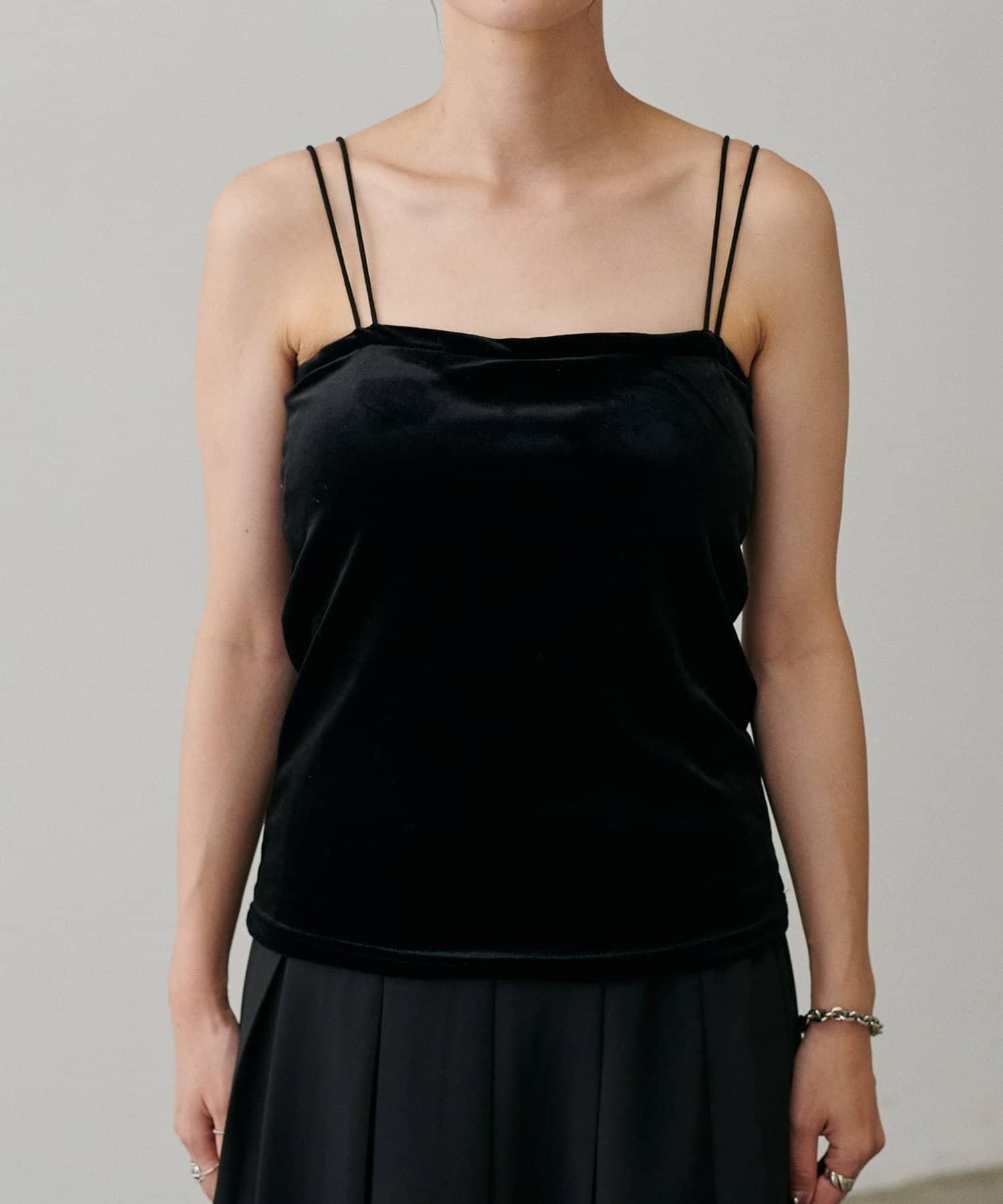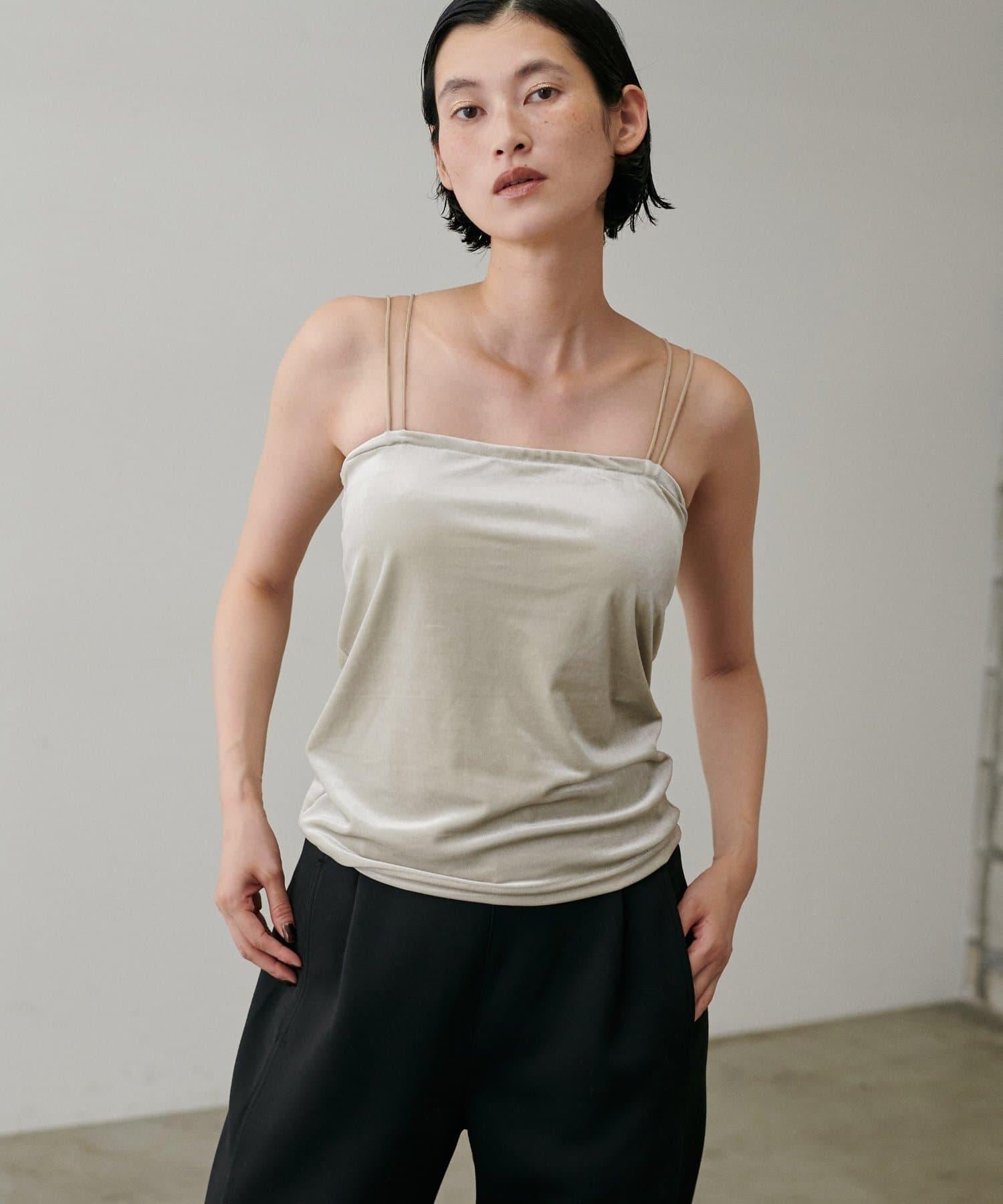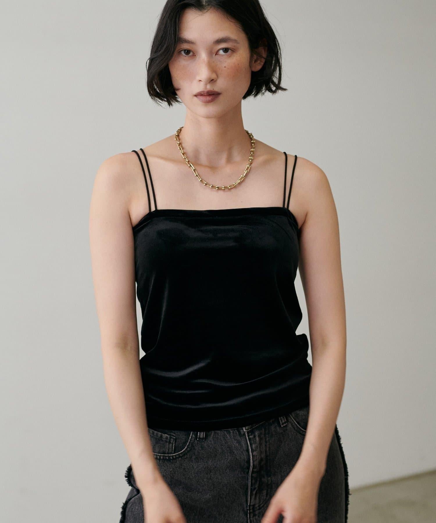 這款帶罩杯的吊帶衫由絲絨製成,具有優雅的光澤。