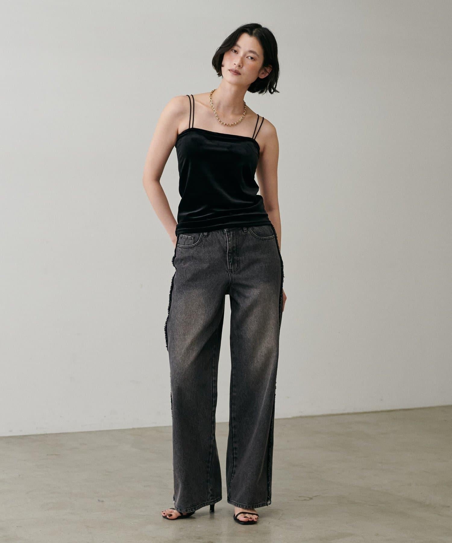 這款吊帶衫帶有罩杯,可以不穿內衣,單穿也很美觀。