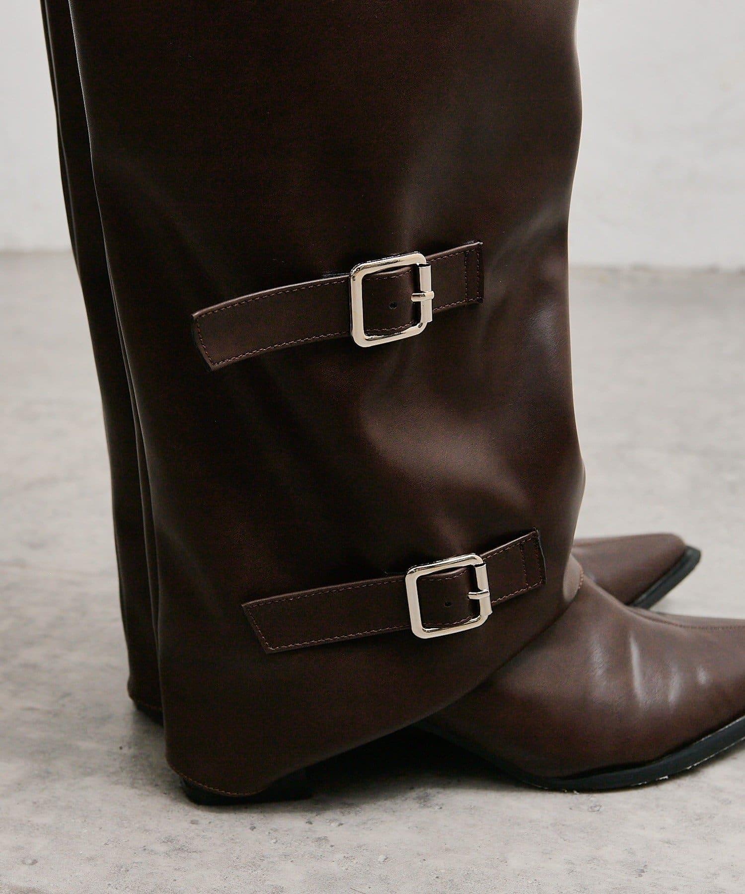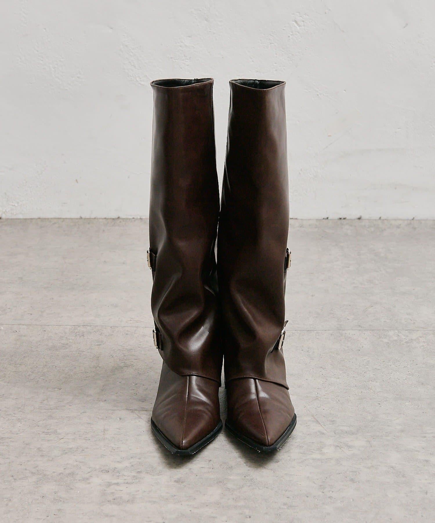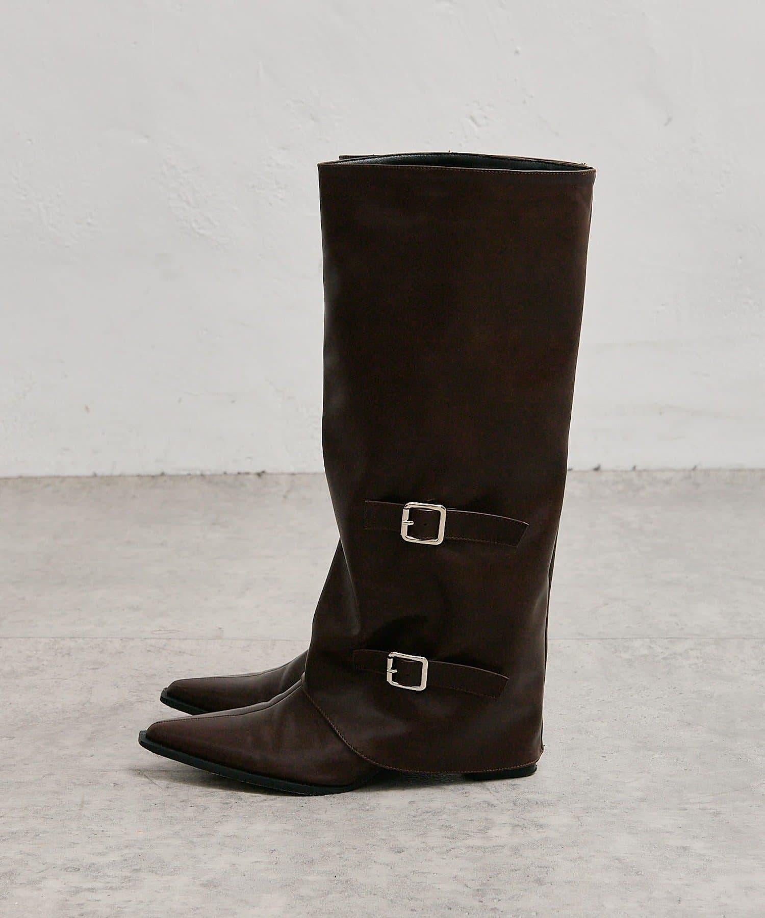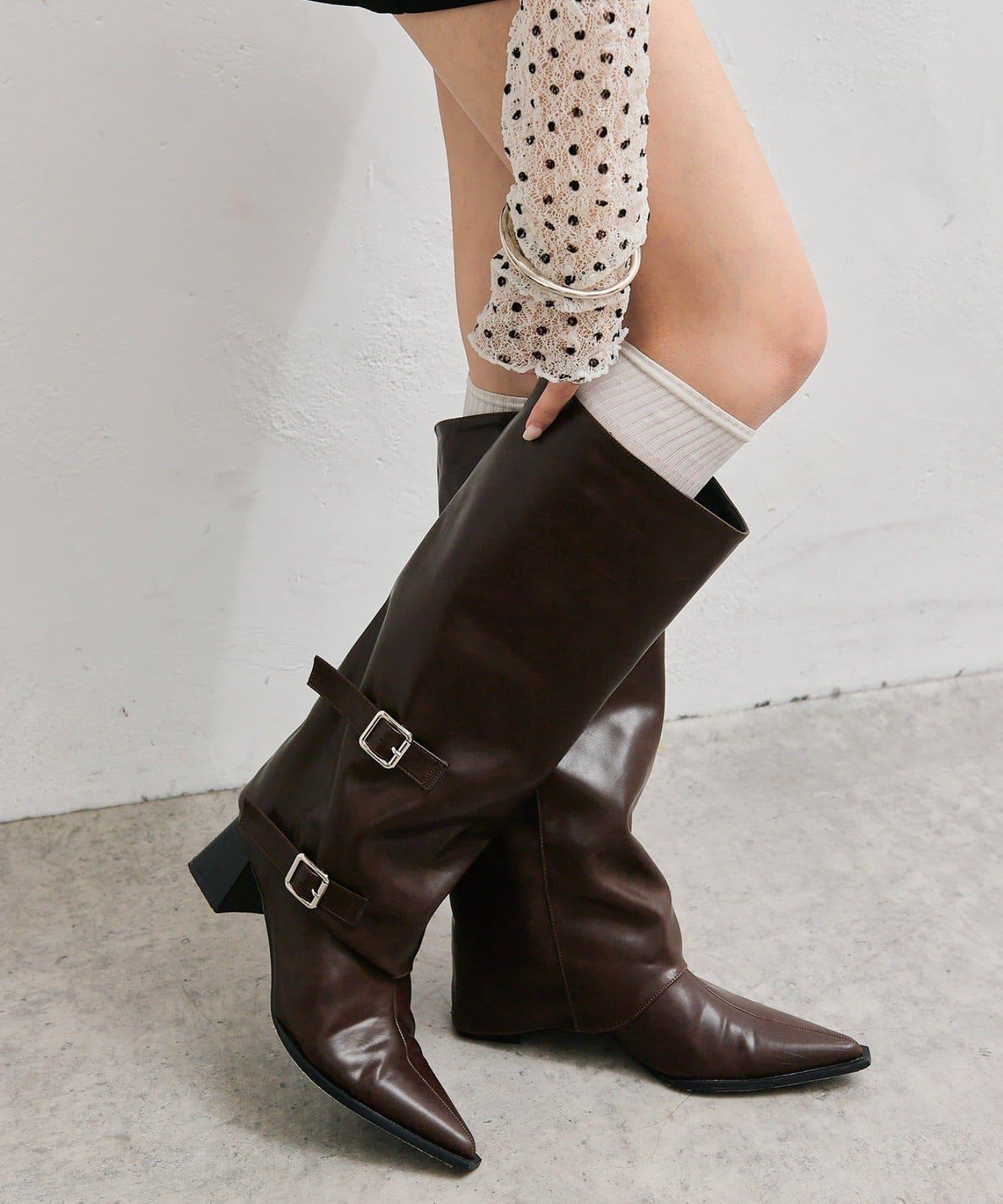這款長筒靴採用腰帶設計,具有很強的存在感。