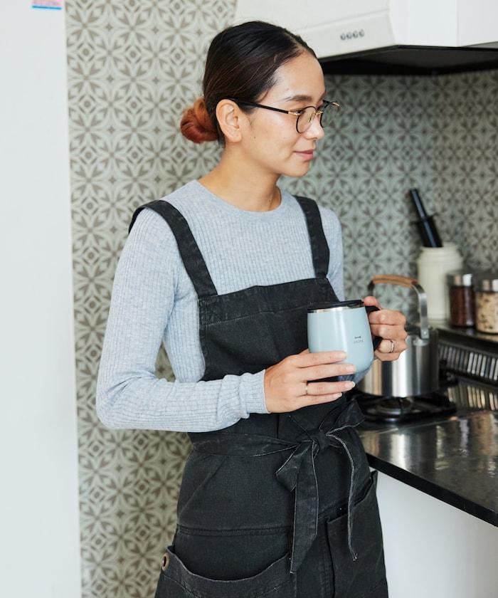 這款不鏽鋼水杯質地粗糙,顏色別緻,兩者相得益彰。
