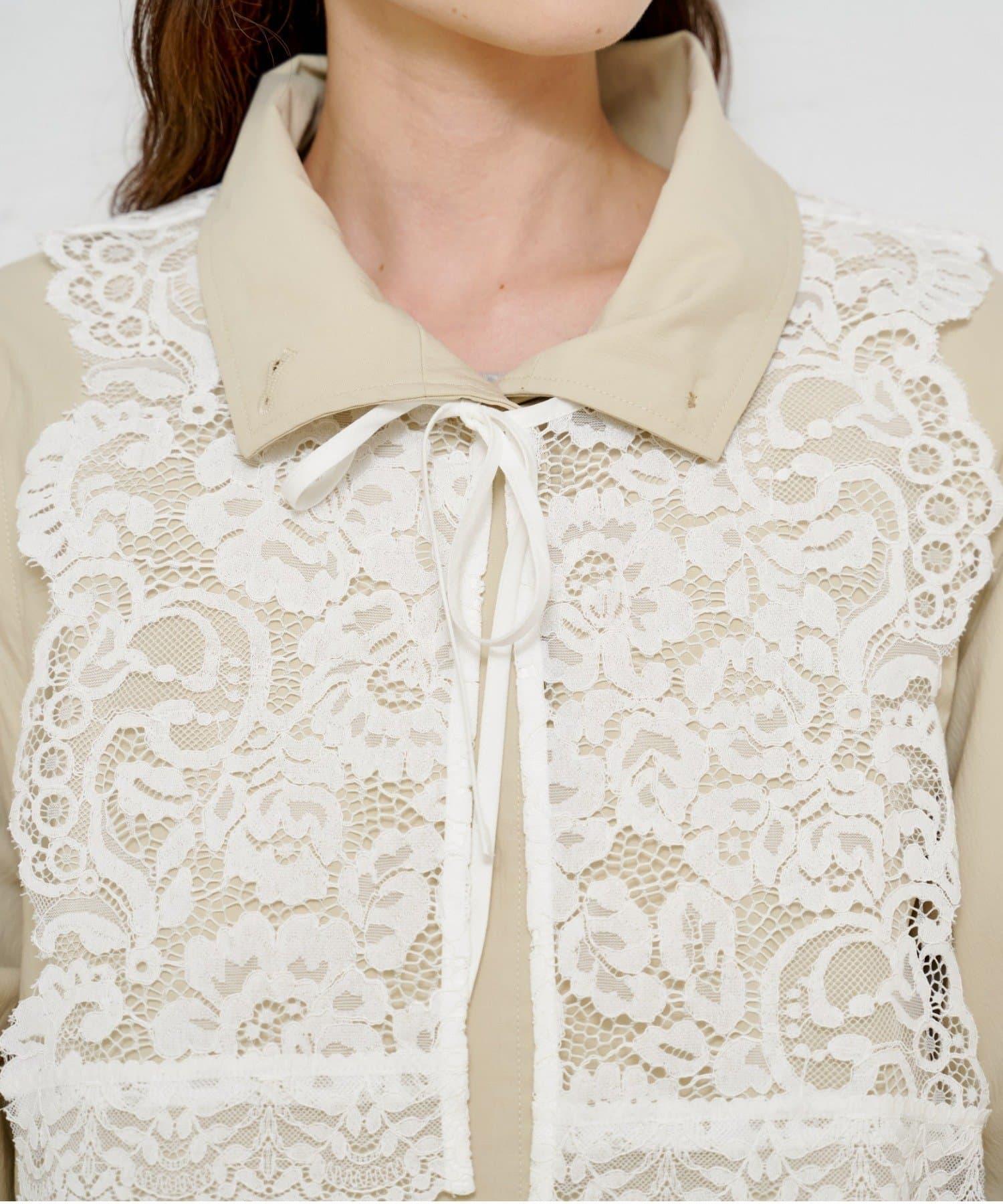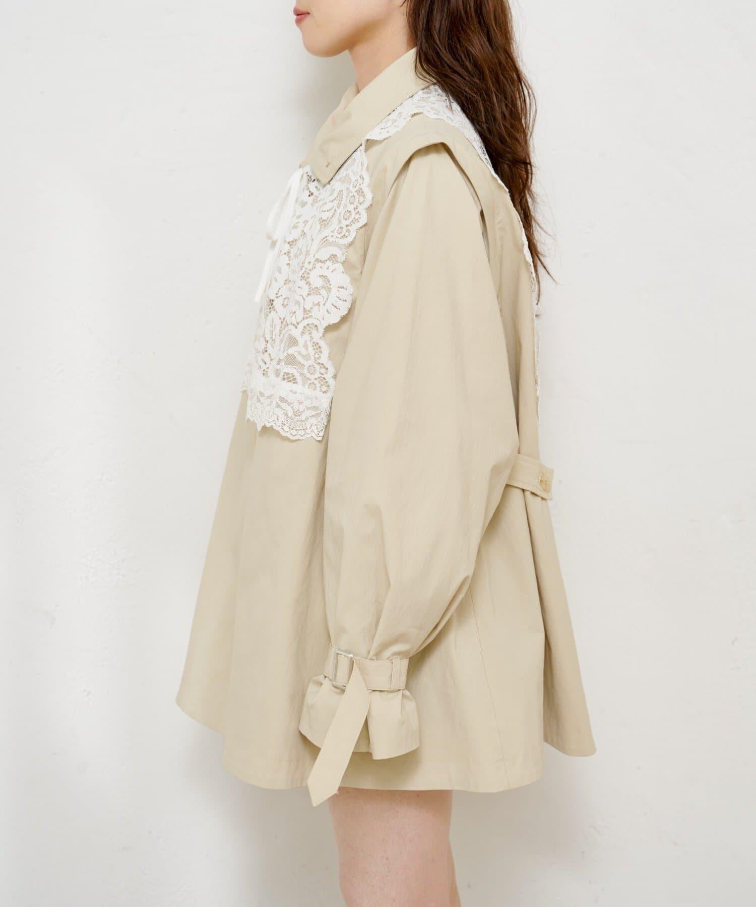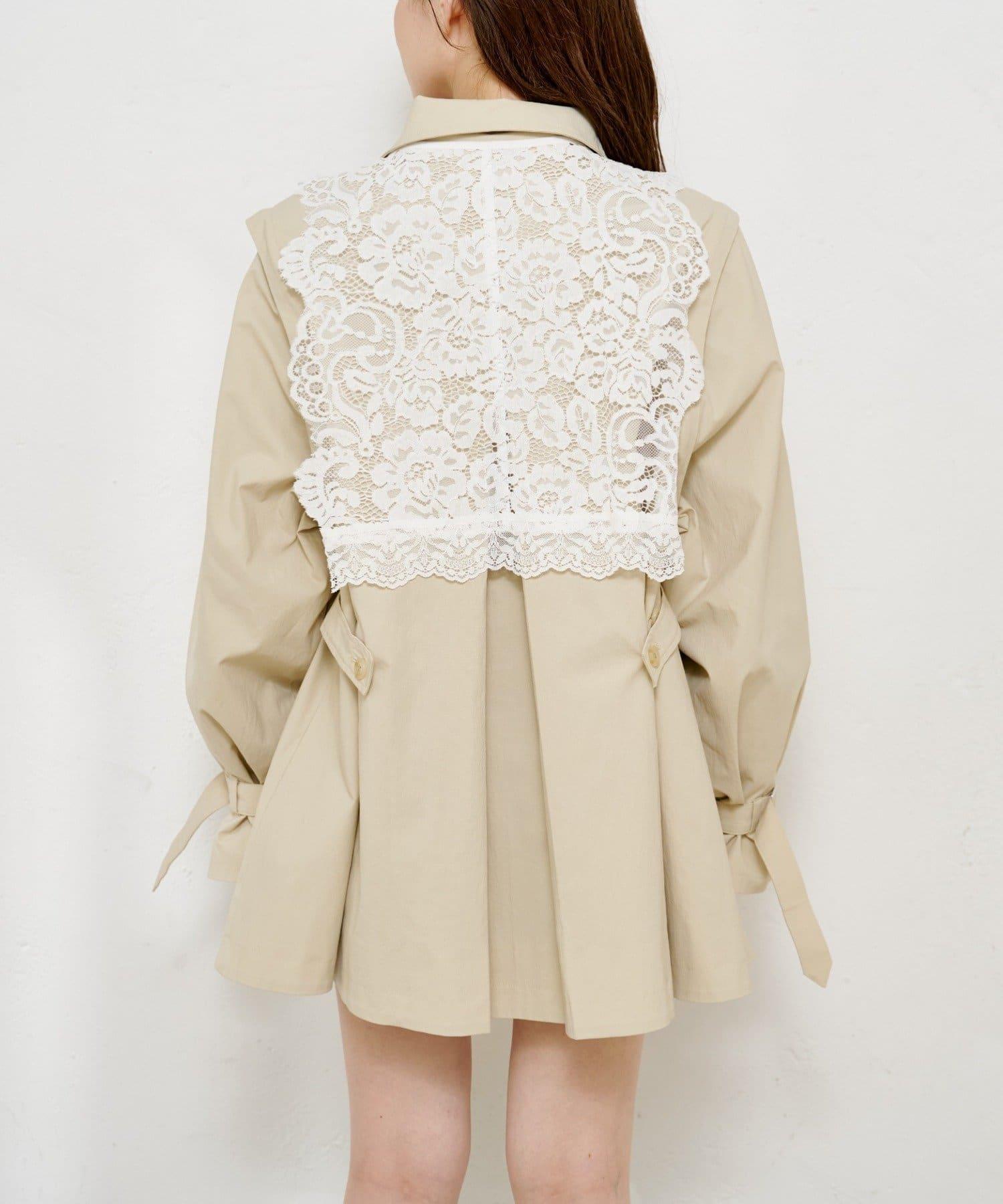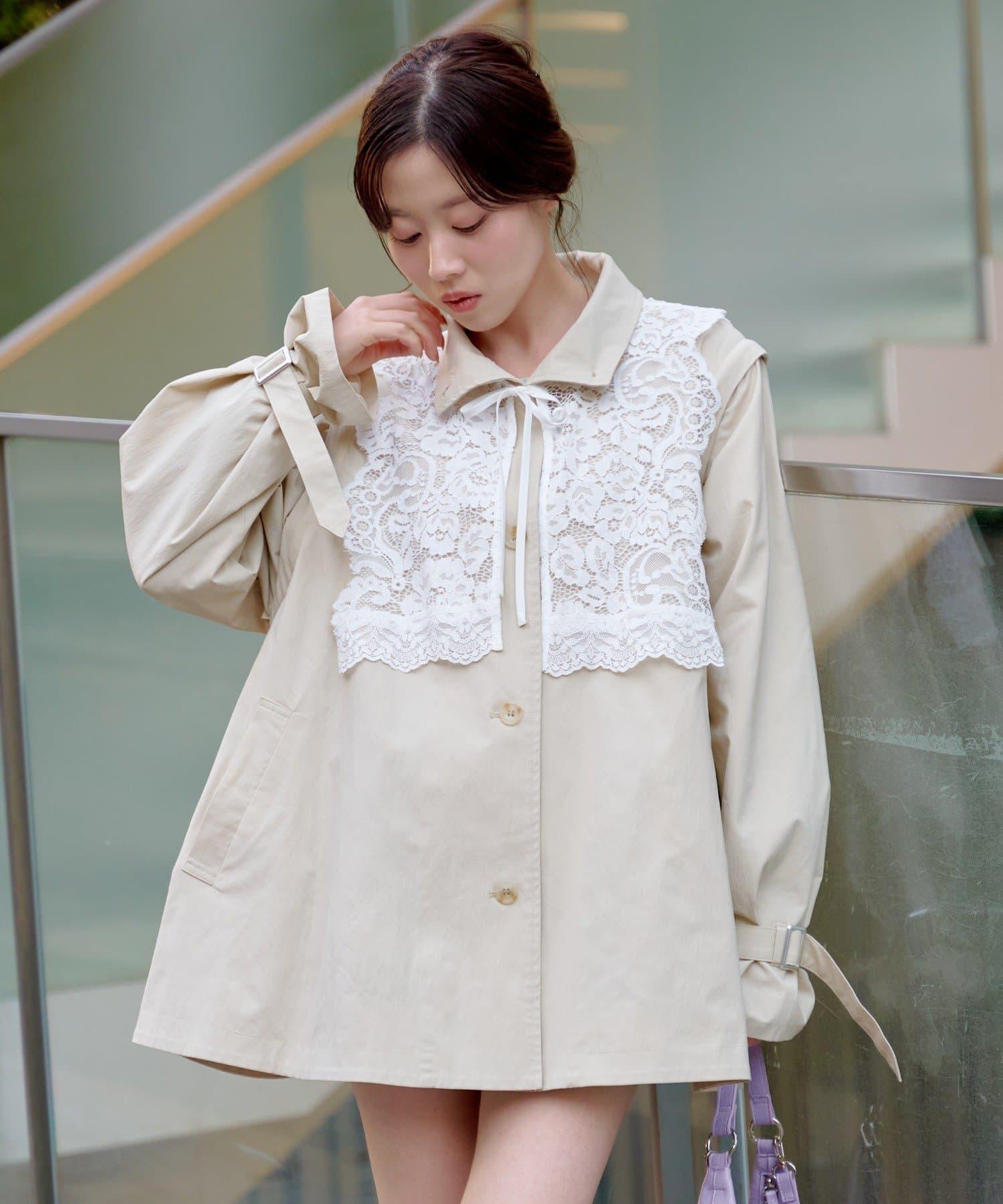 預約商品帶蕾絲裝飾喇叭袖風衣