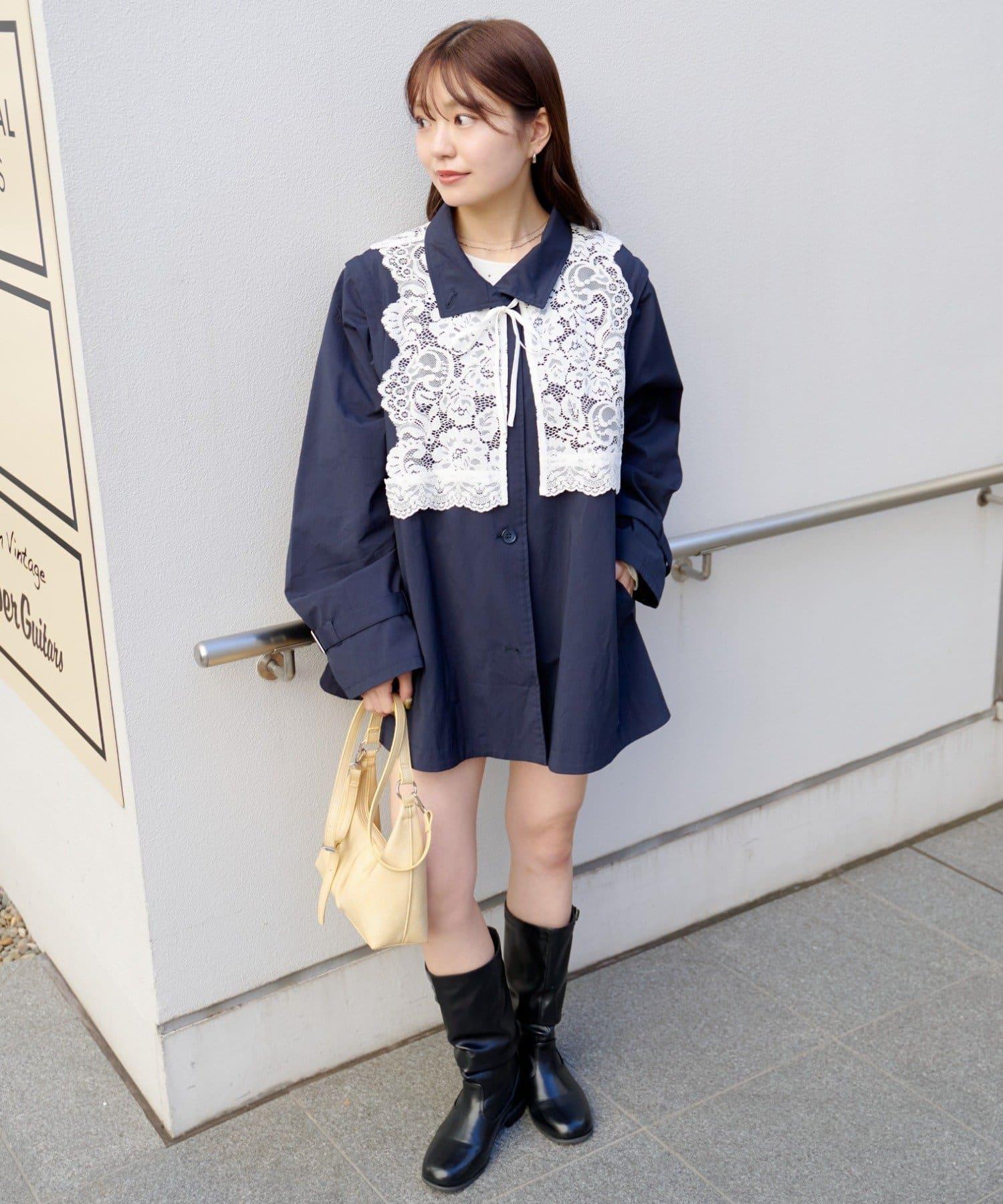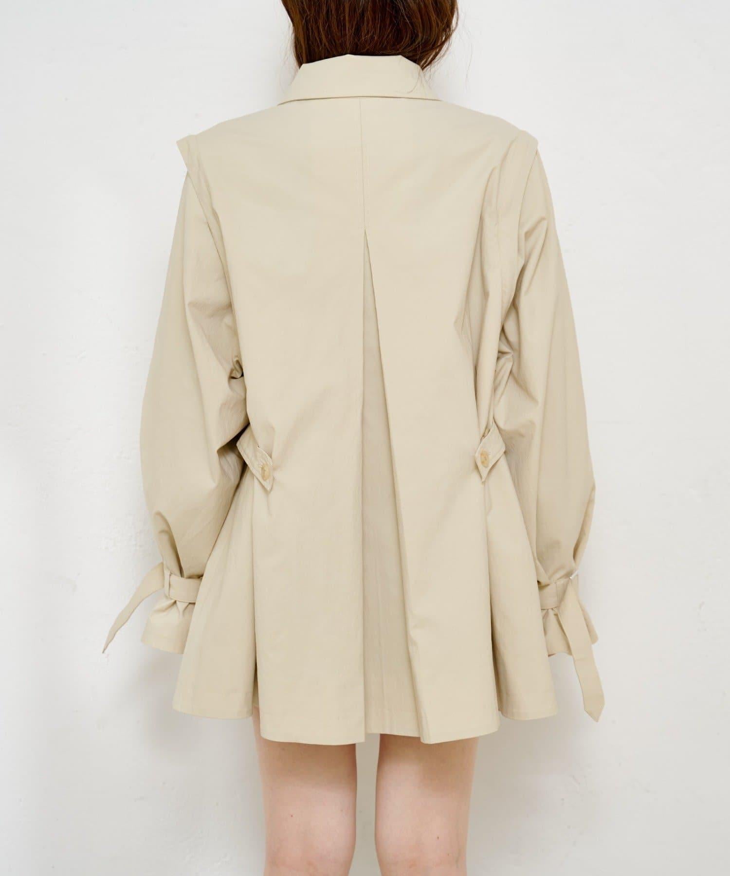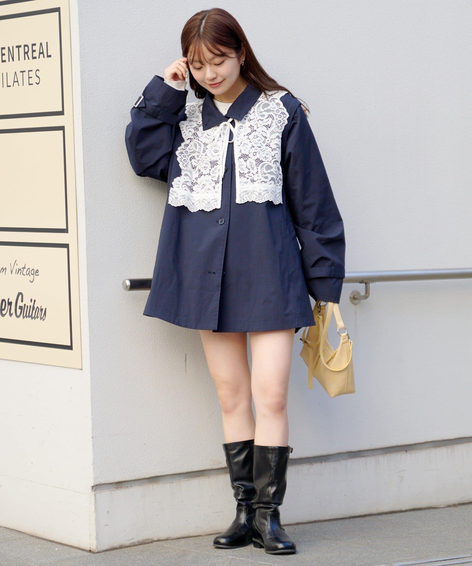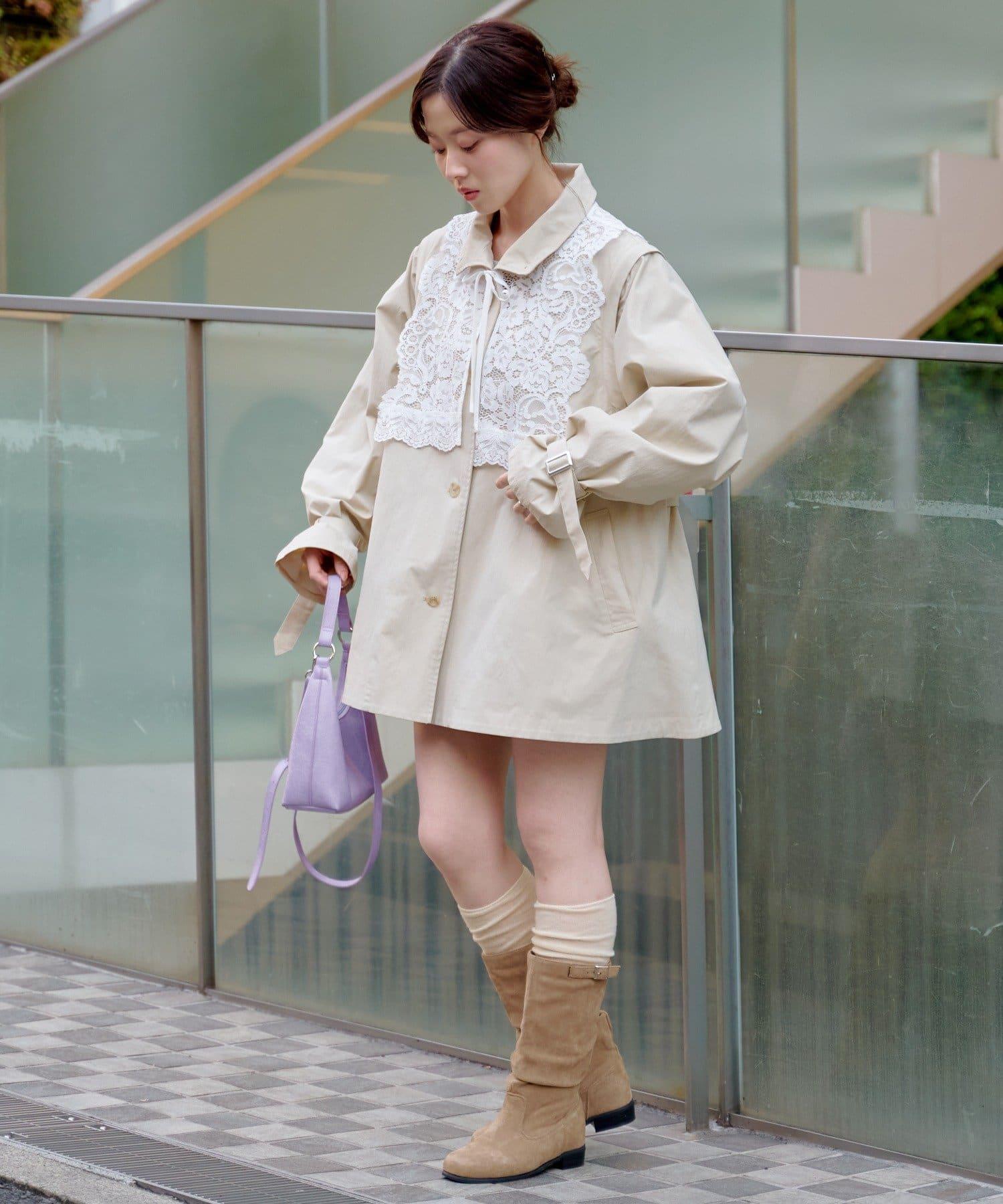 預約商品帶蕾絲裝飾喇叭袖風衣