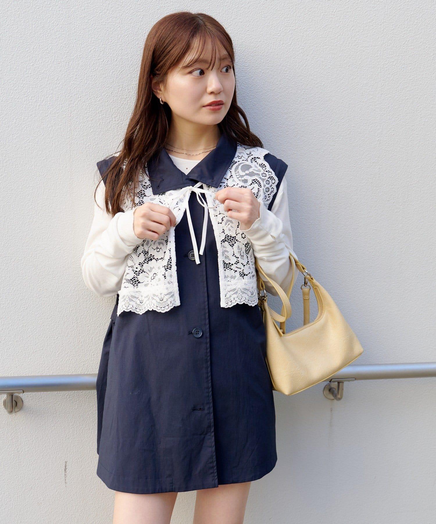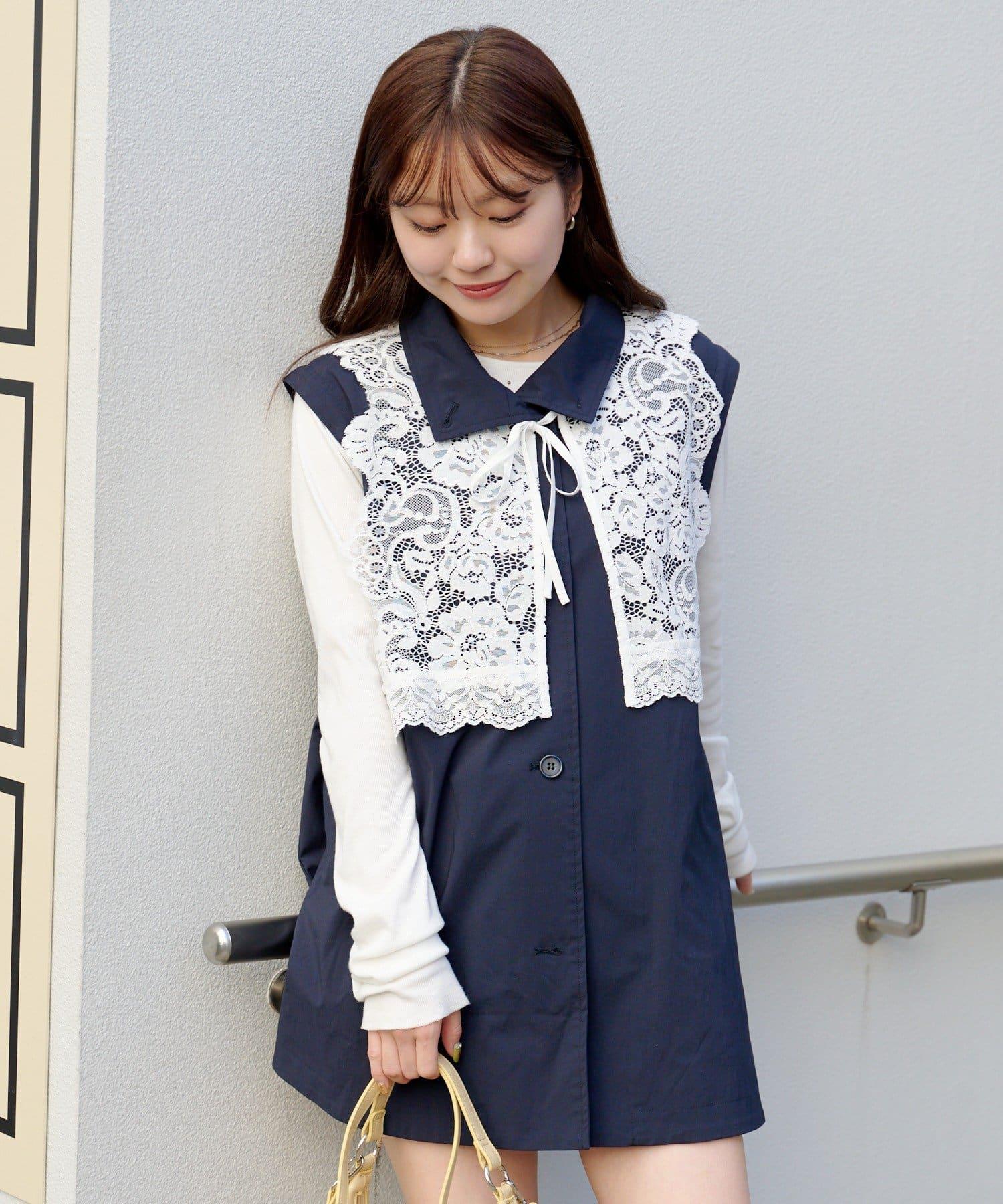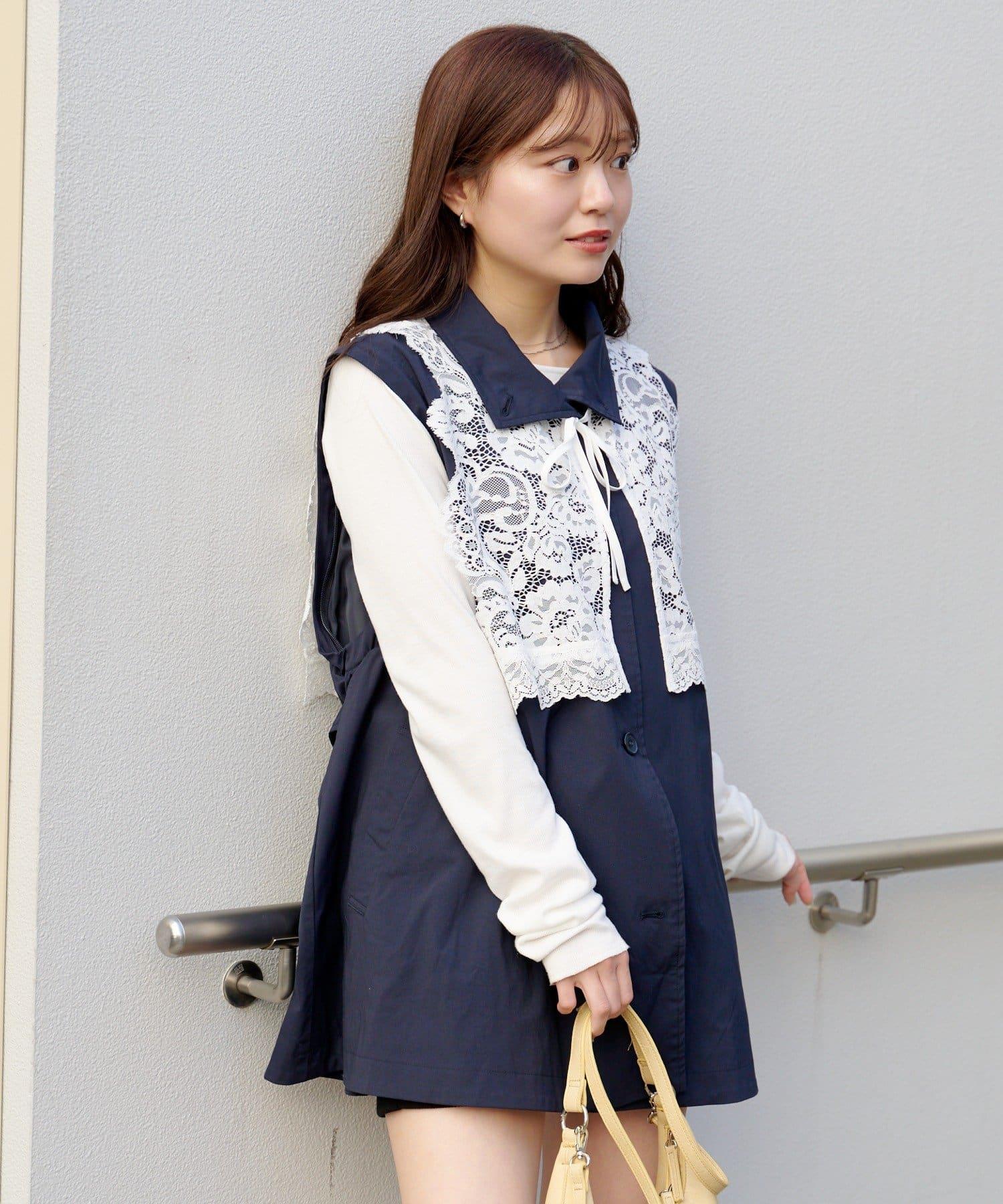 可拆卸的蕾絲飾帶和多向設計,脫下袖子後也可穿背心式。