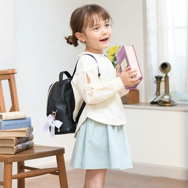 女孩揹包,基本色調,配有大號絲帶掛飾。簡潔的設計使其成為您的搭配單品。絲帶可拆卸。尺寸] 縱向/橫向/底部夾層:22.5/21/12.5(厘米) *肩帶👍短長度:51 厘米 👍長:92 厘米