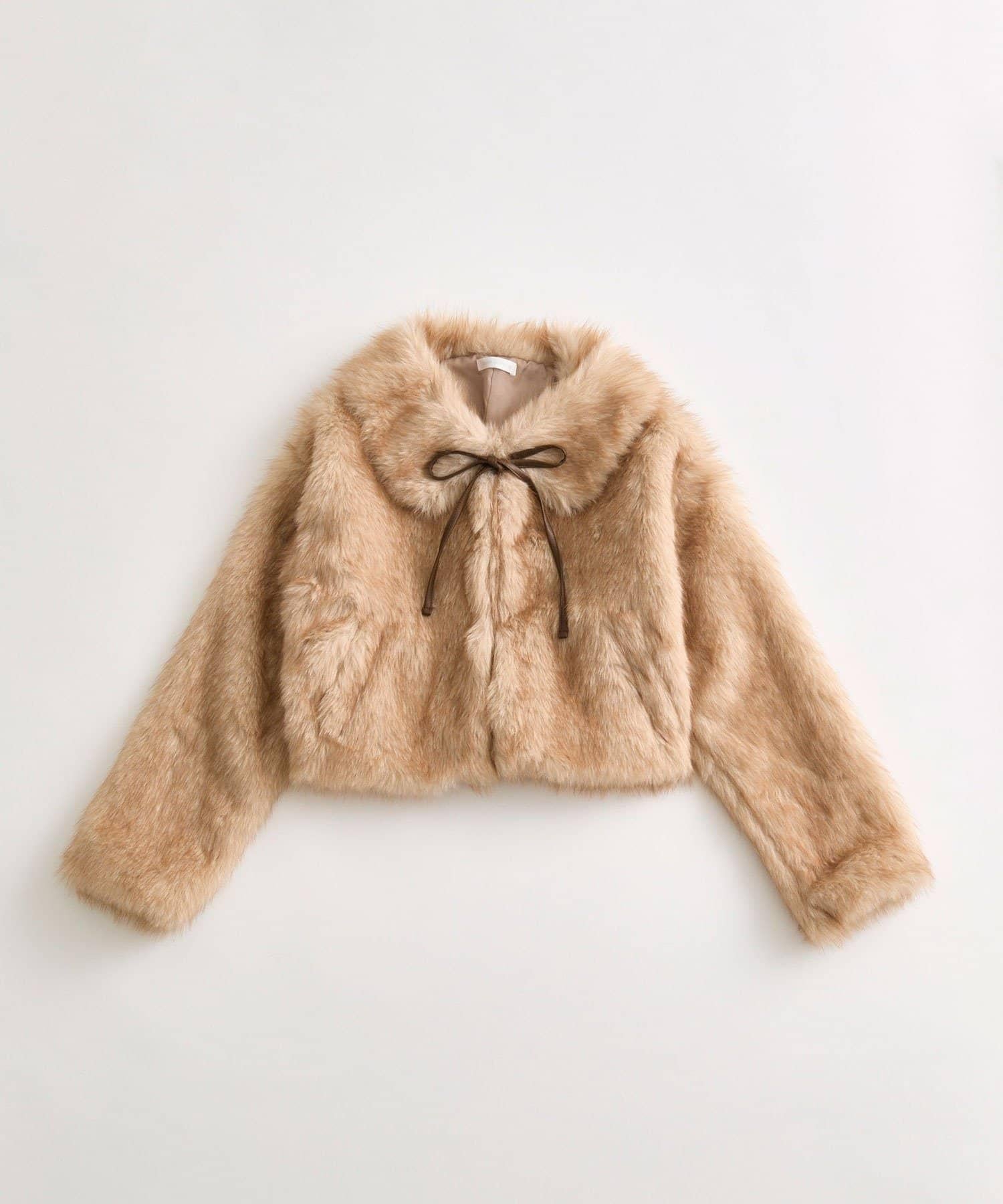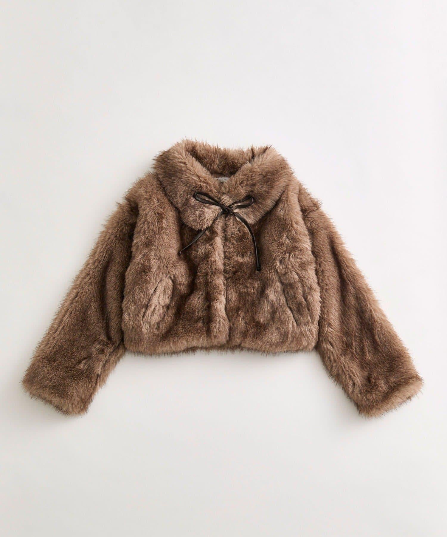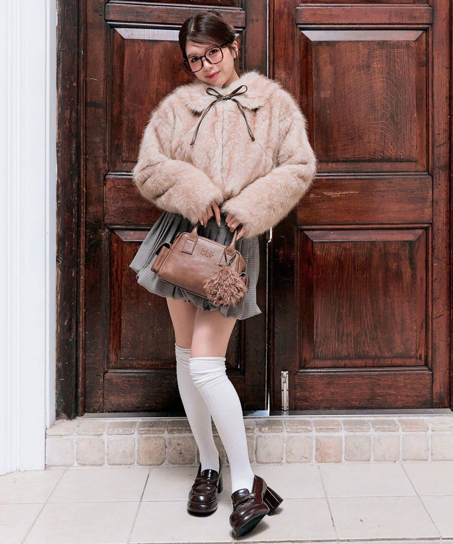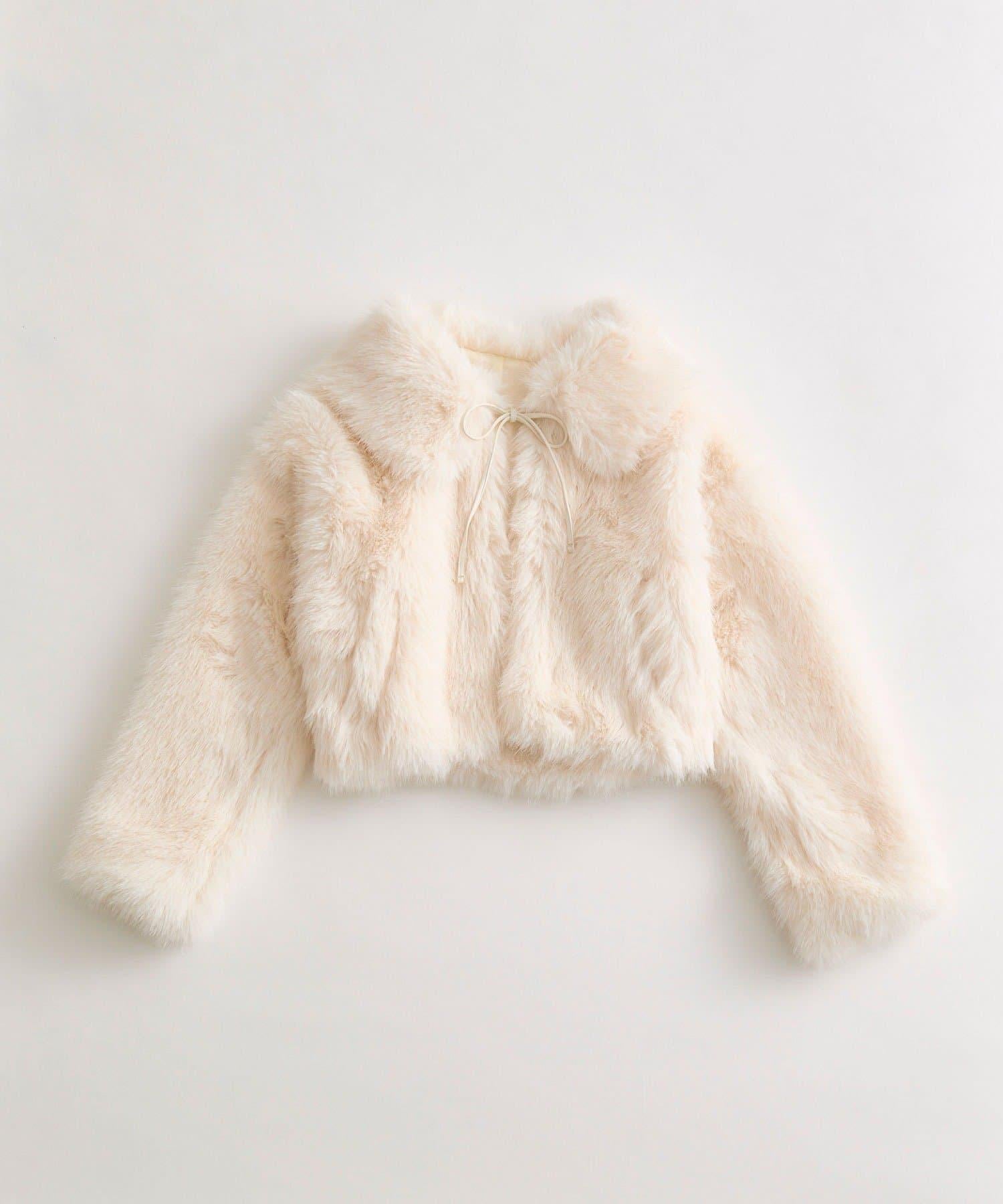 少女感十足的外衣設計,長款皮草材質,看起來貴氣十足,還有可愛的蝴蝶結。