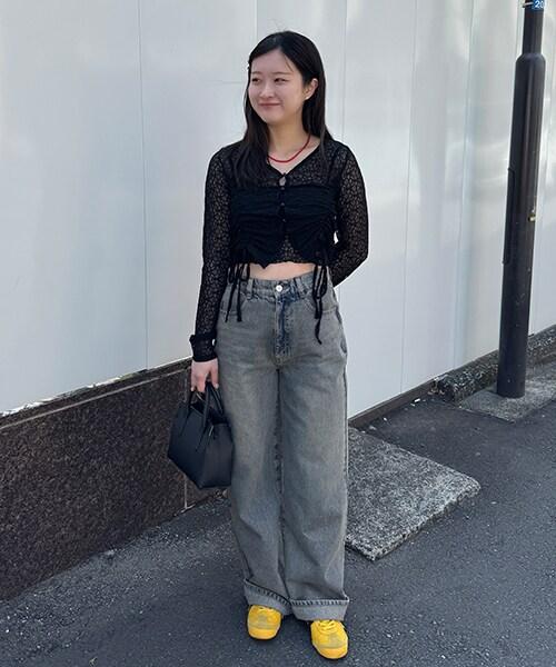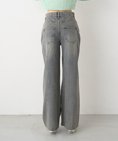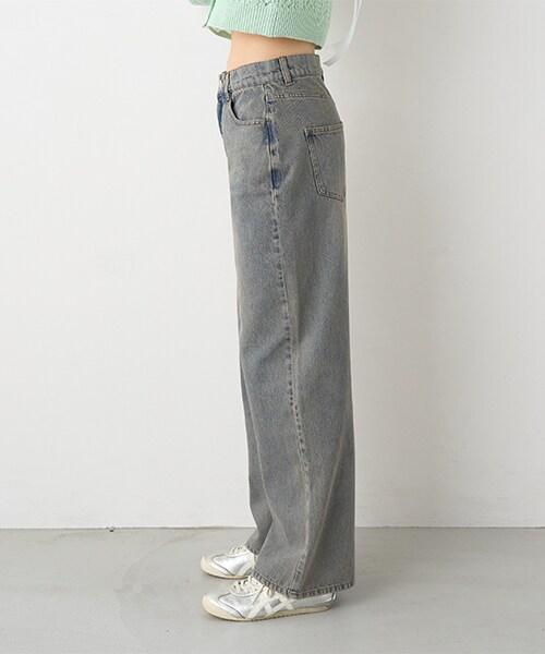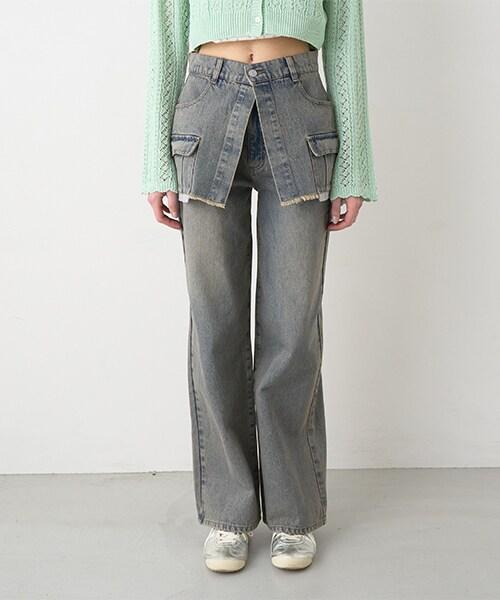 帶裹身設計牛仔寬腿褲【韓國時尚】