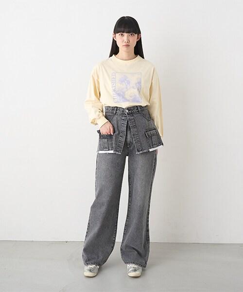 可愛的雙向設計,既可作為裹身褲+牛仔長褲穿著,也可單獨作為牛仔長褲穿著。