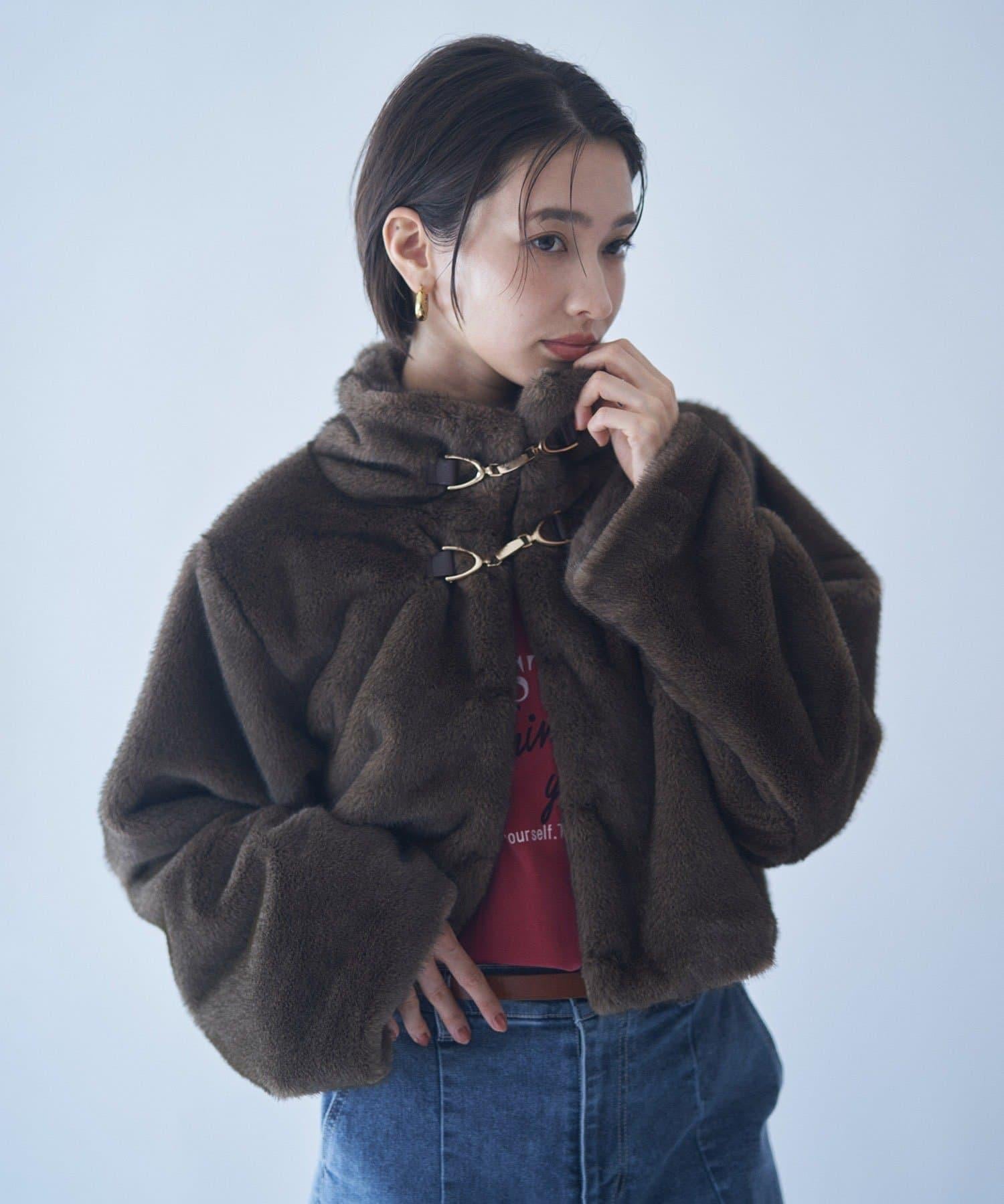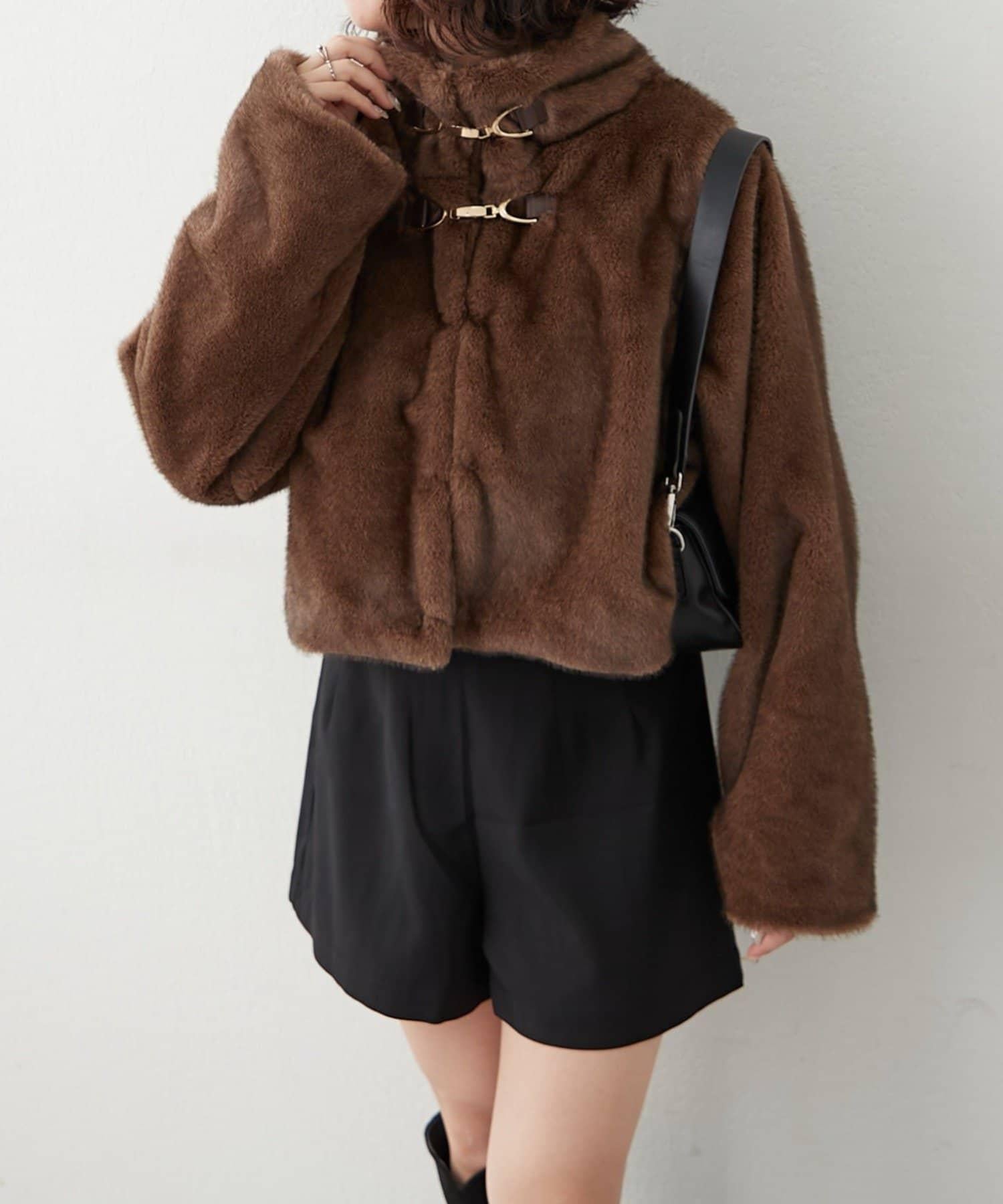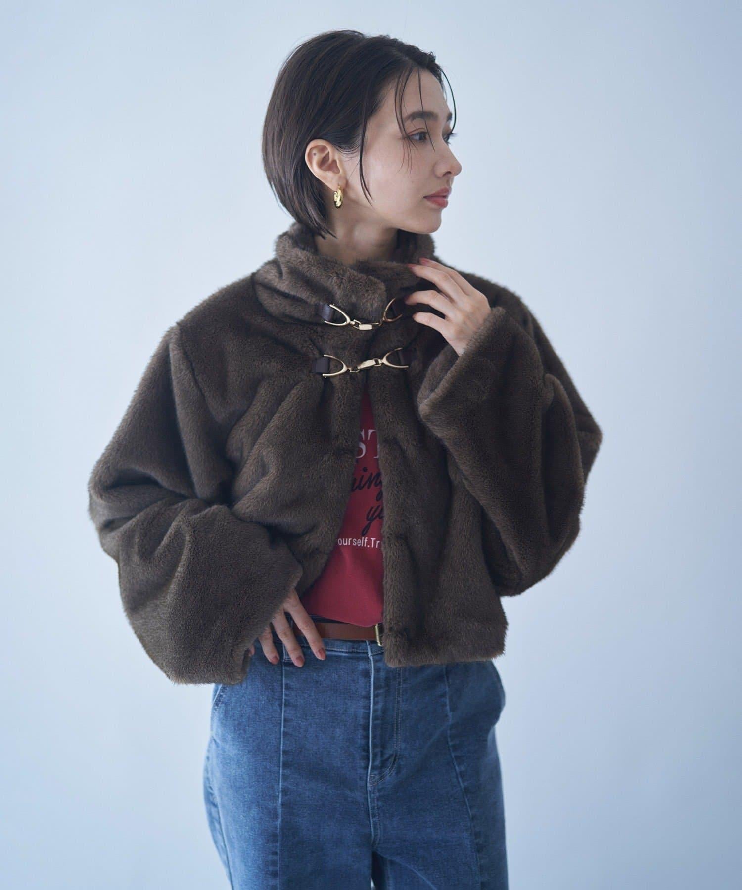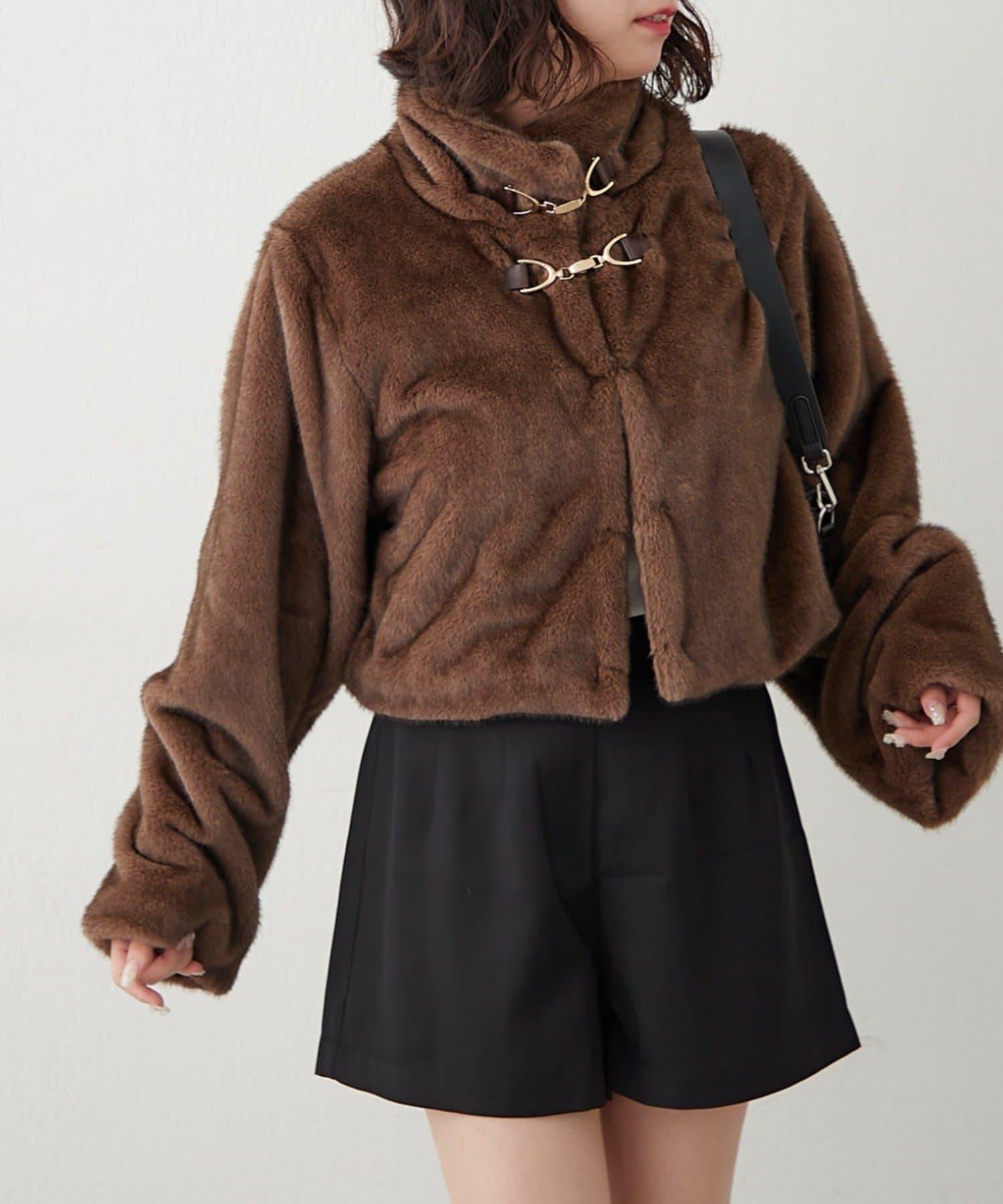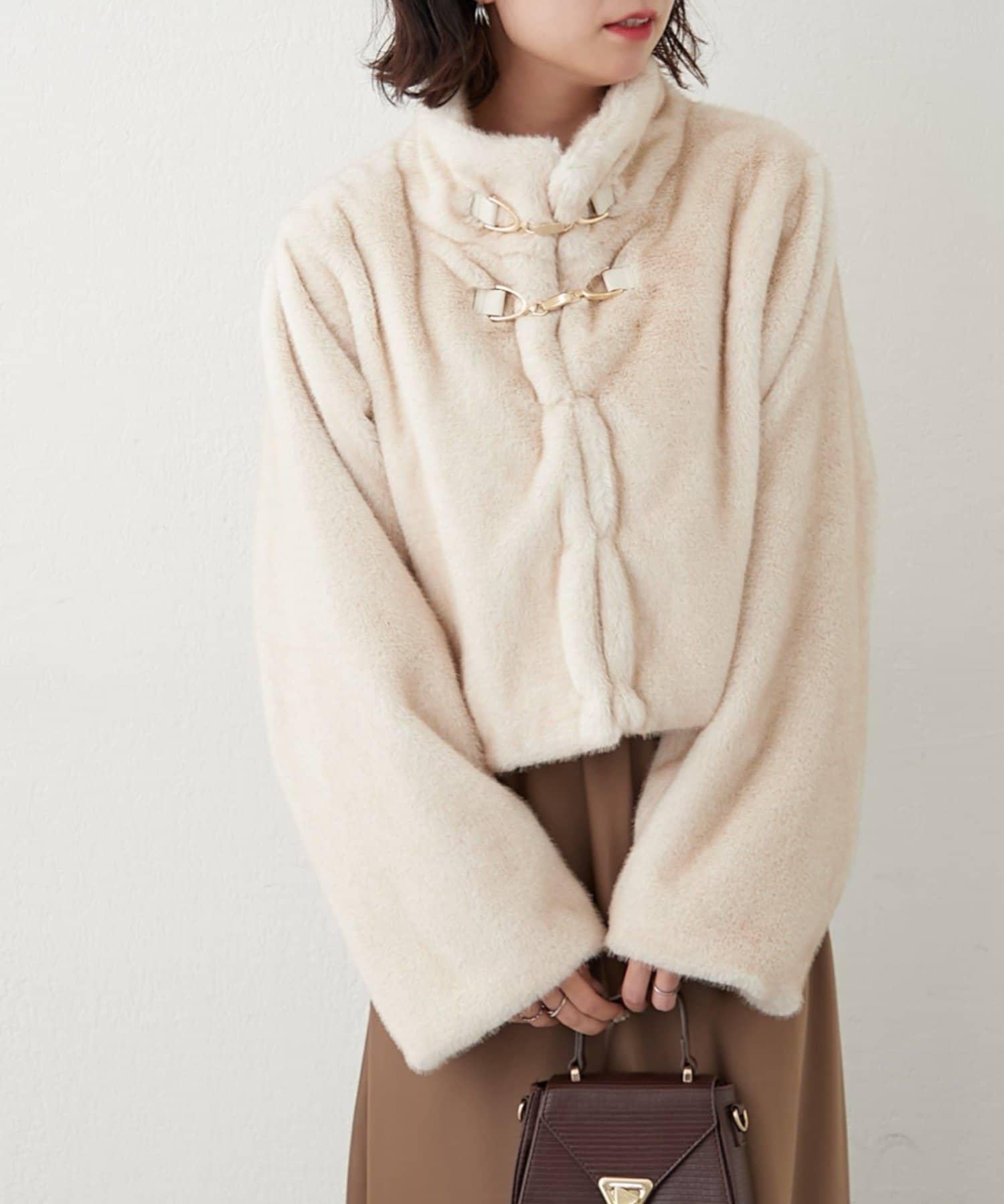 帶金屬扣混合毛短款夾克