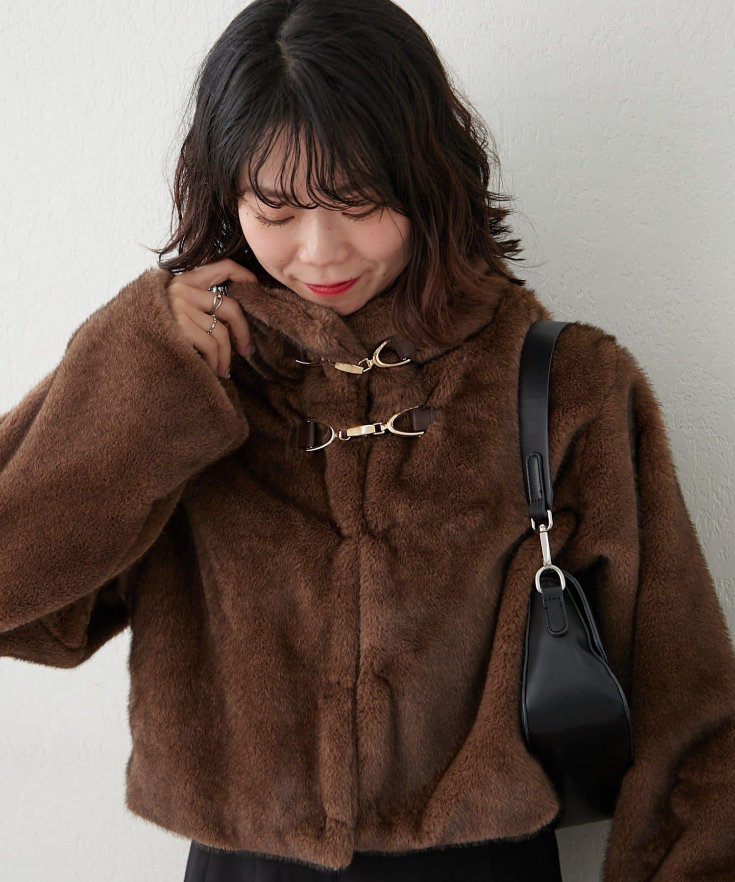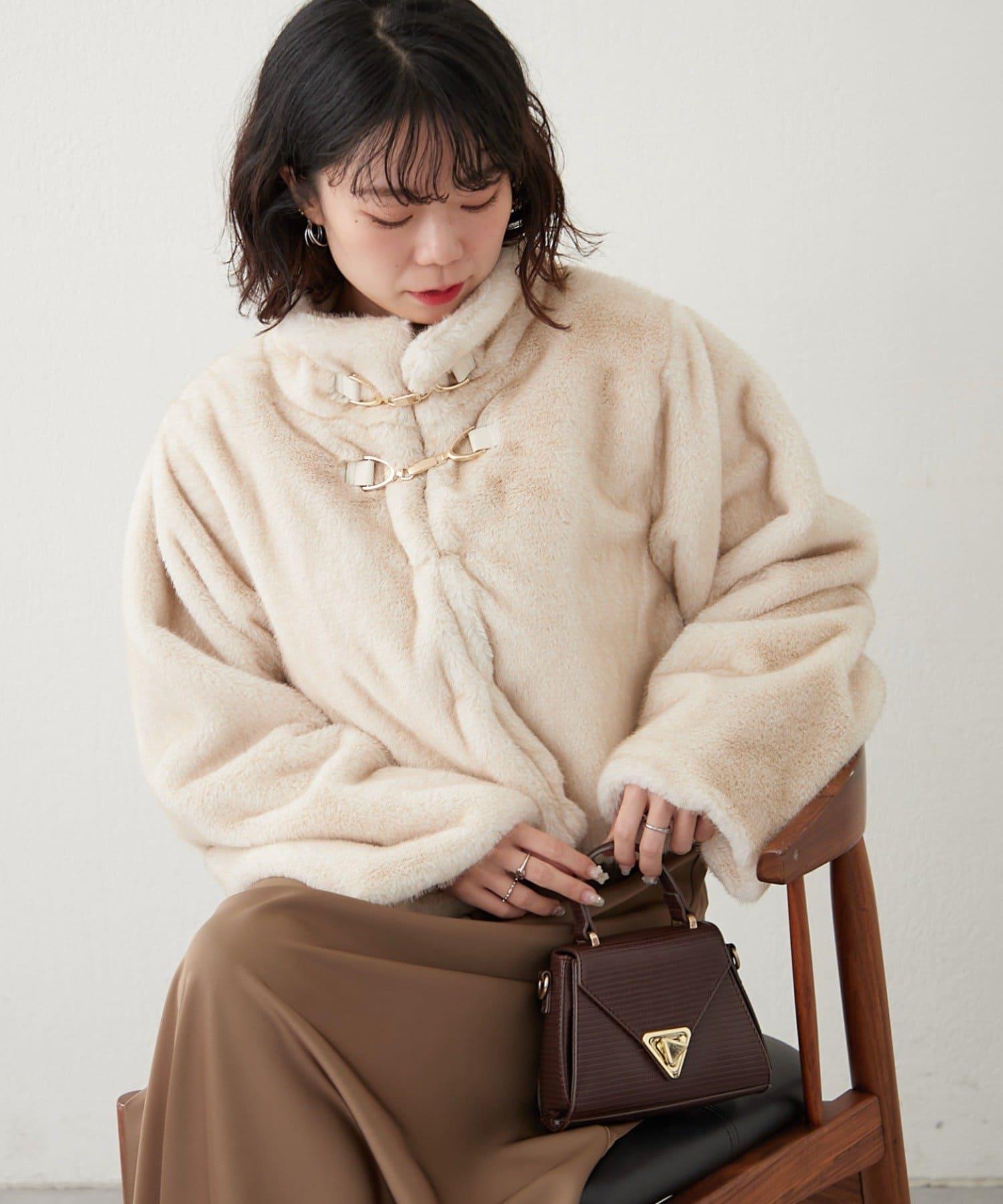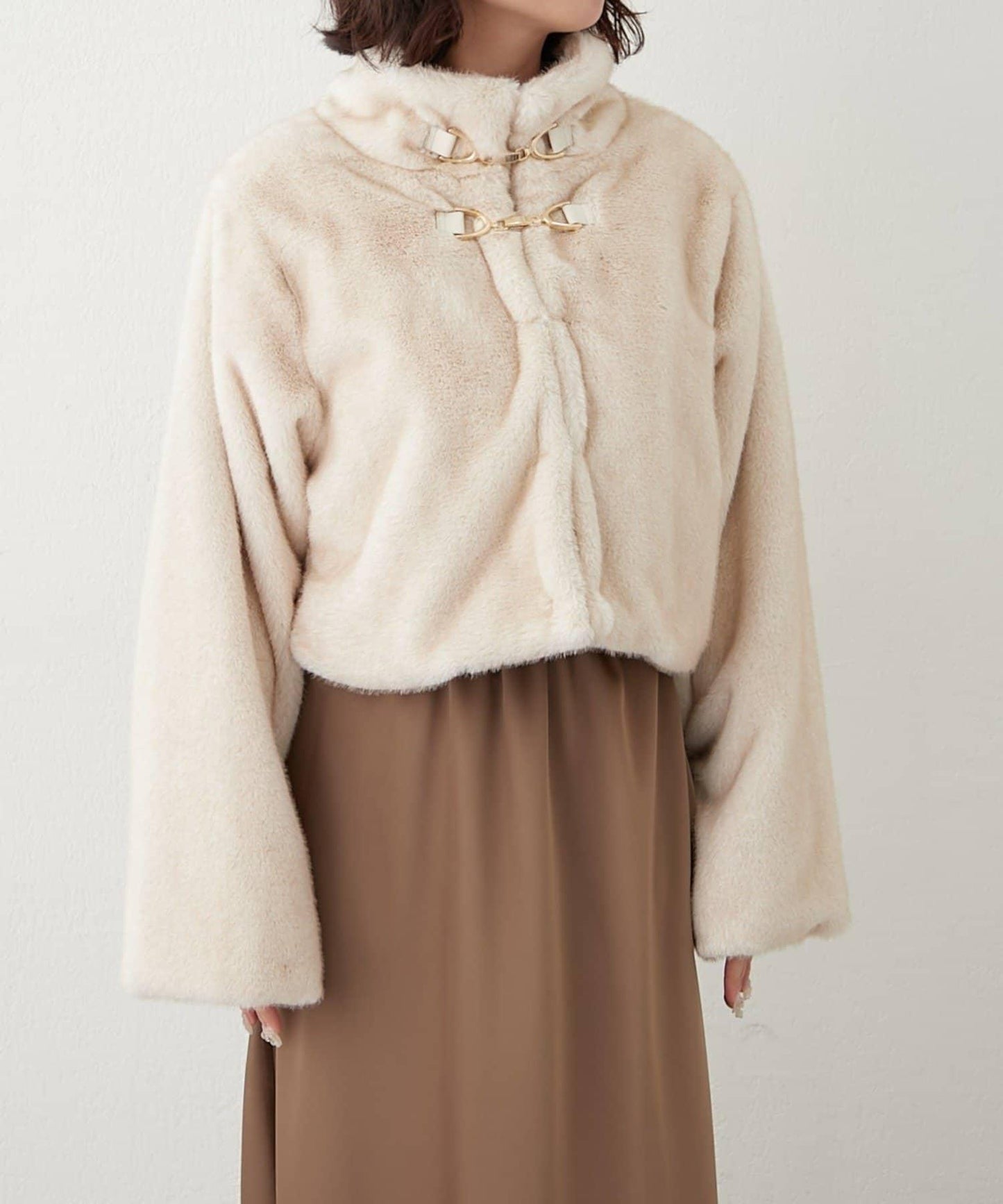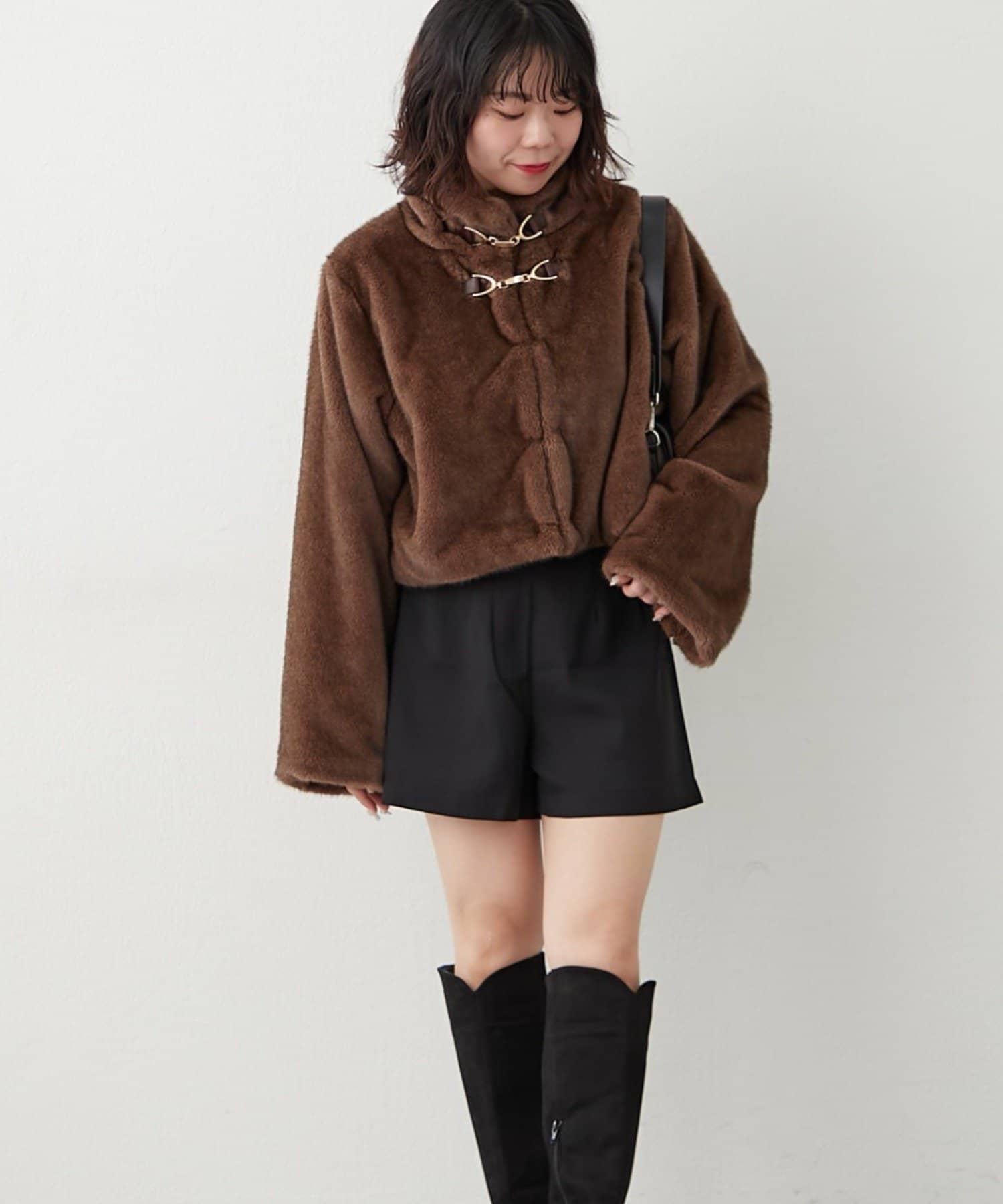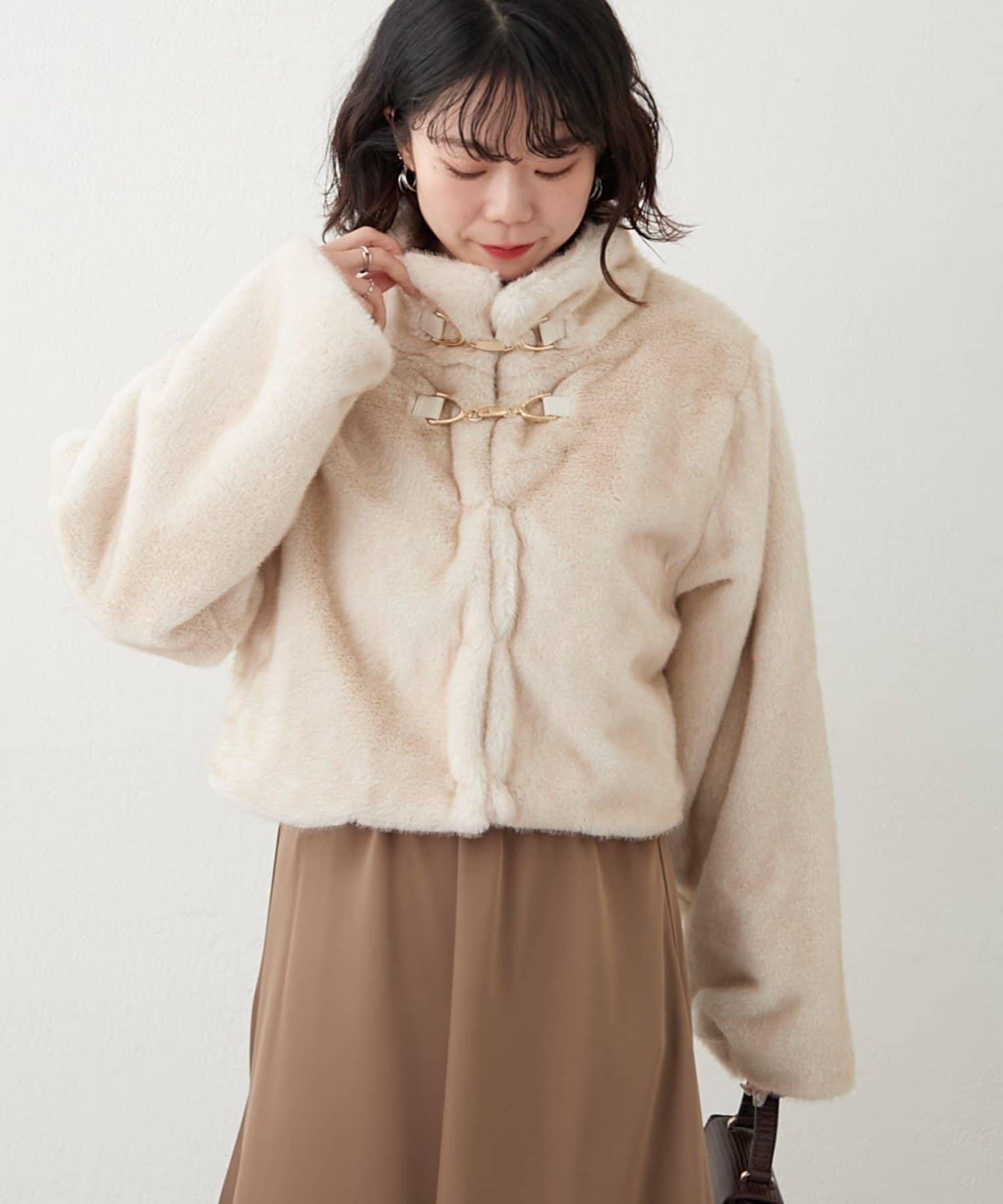 帶金屬扣混合毛短款夾克