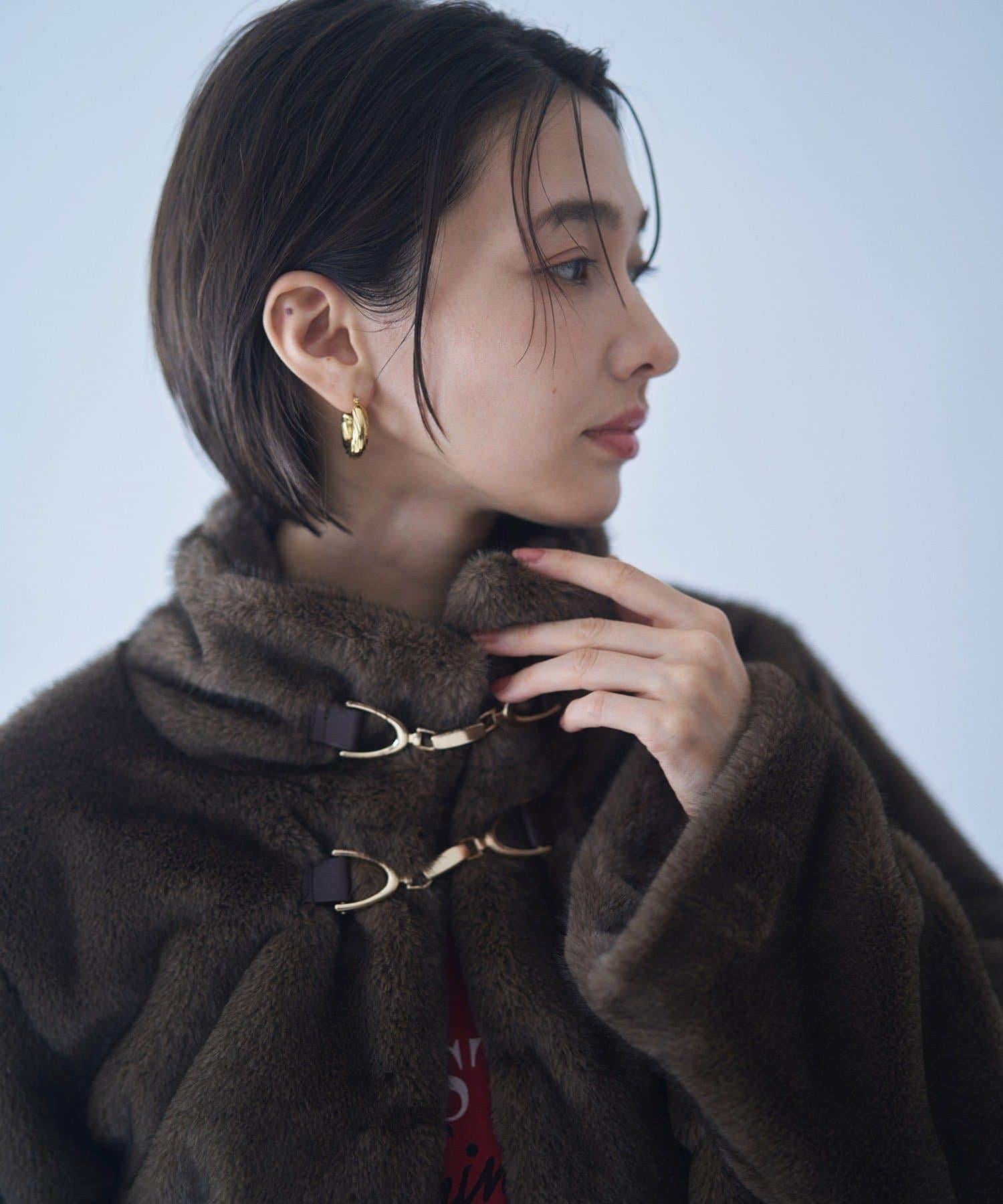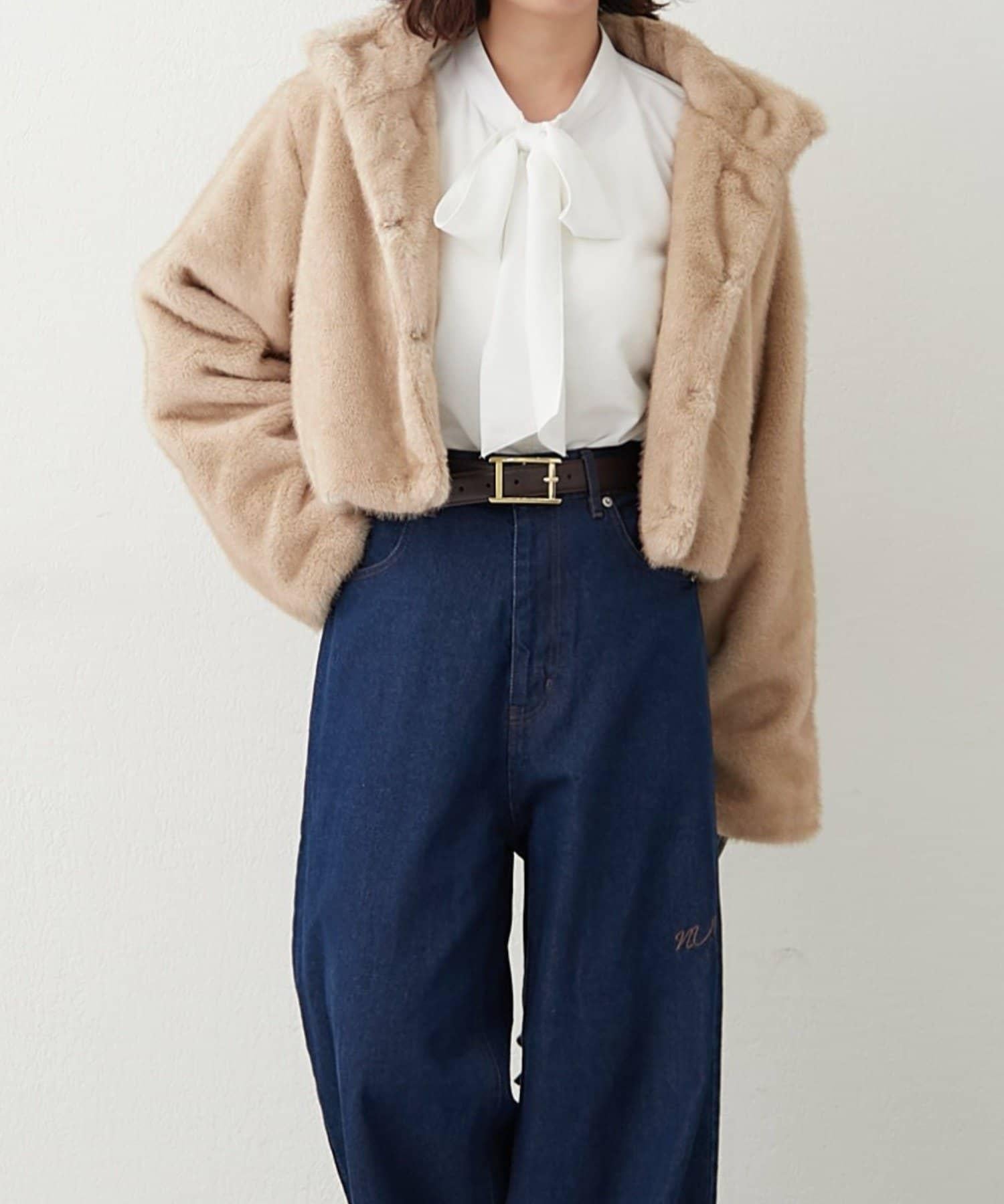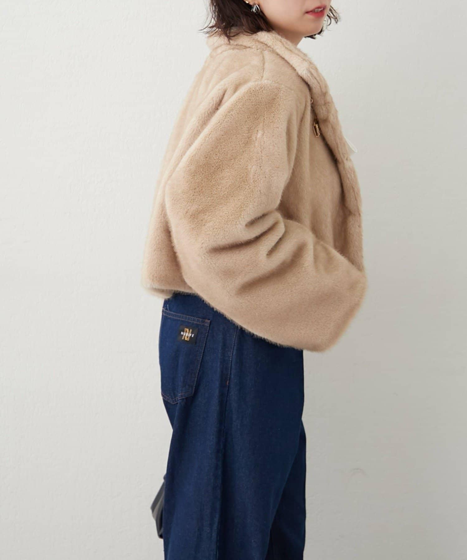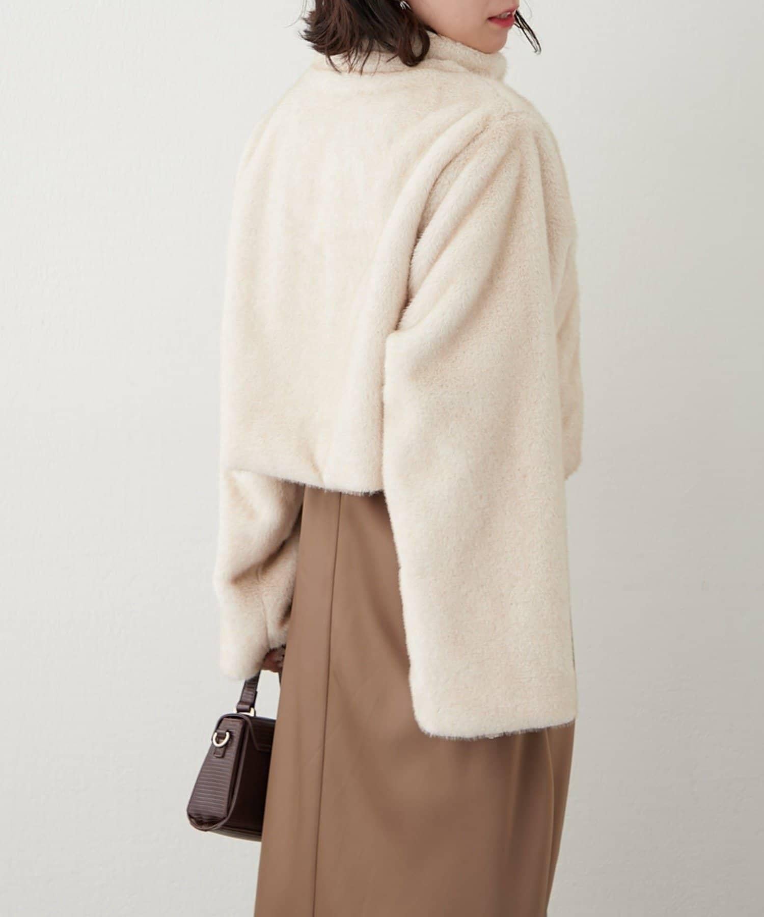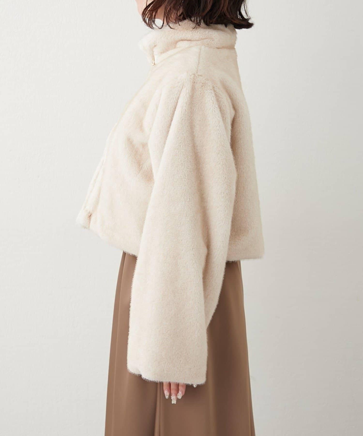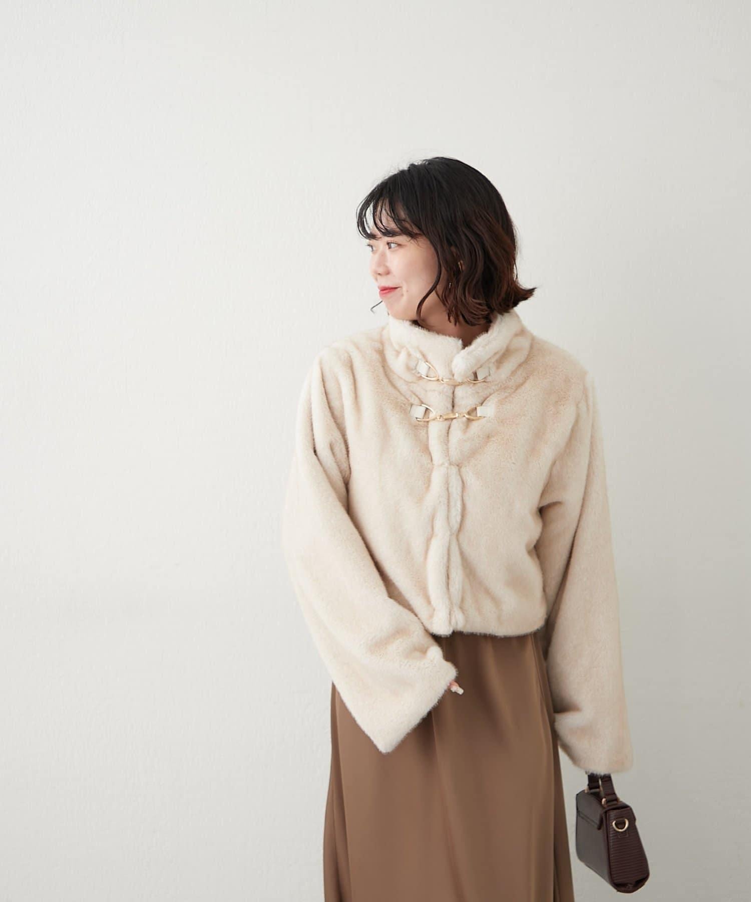 帶金屬扣混合毛短款夾克
