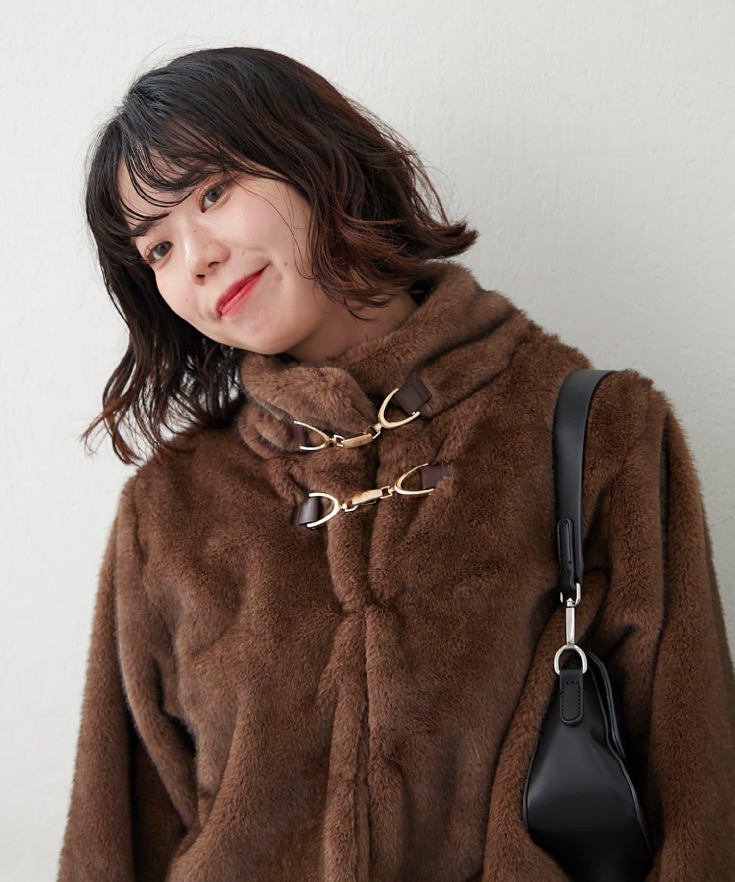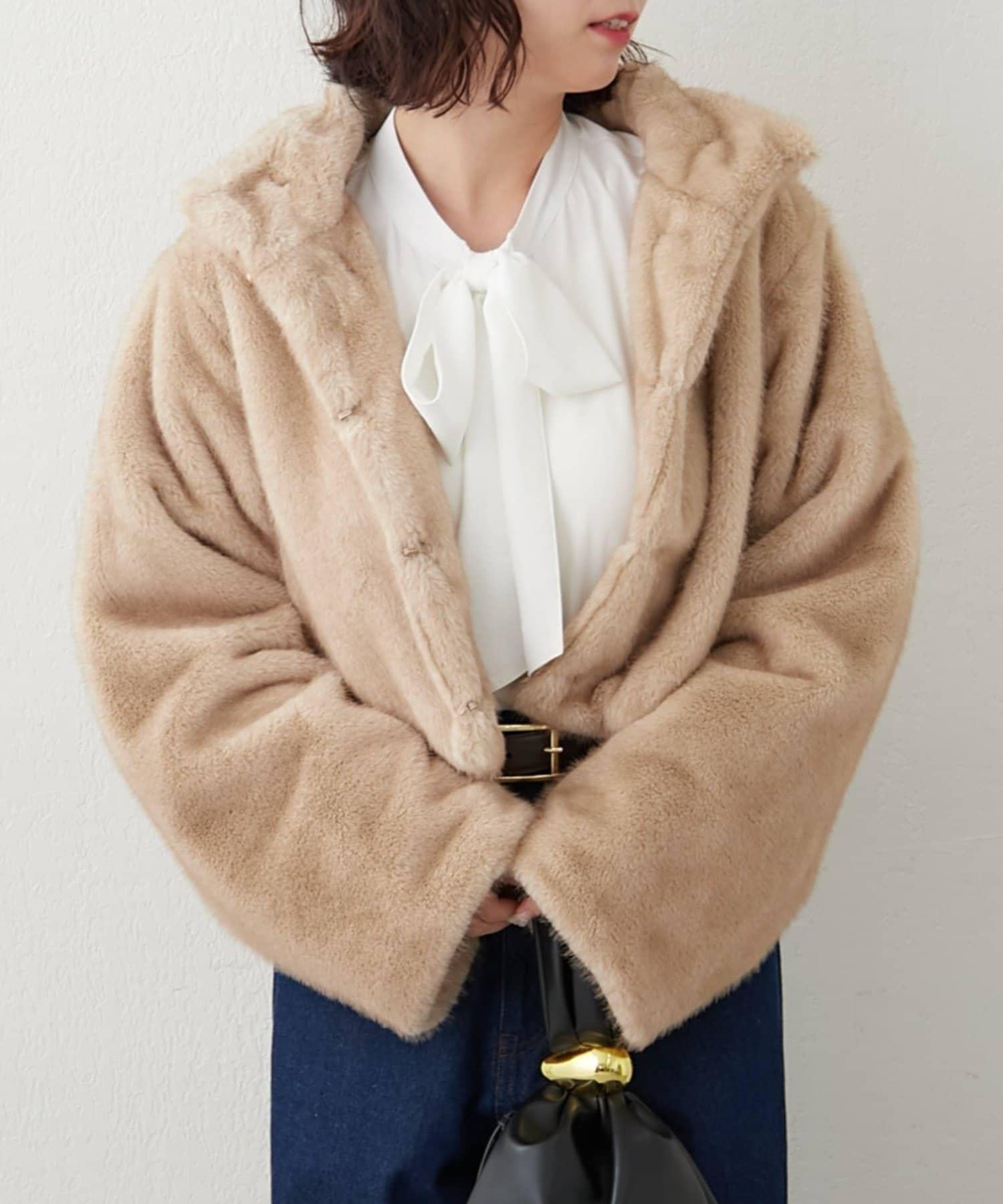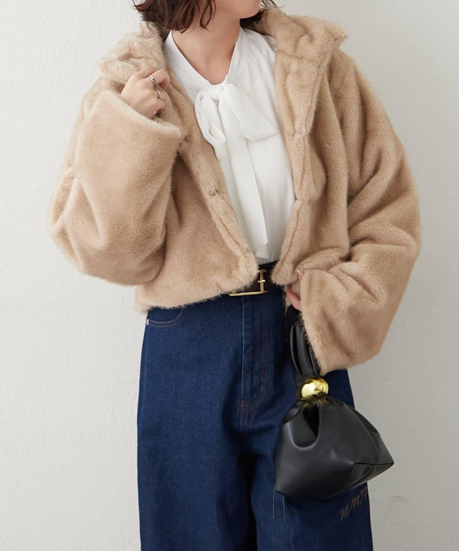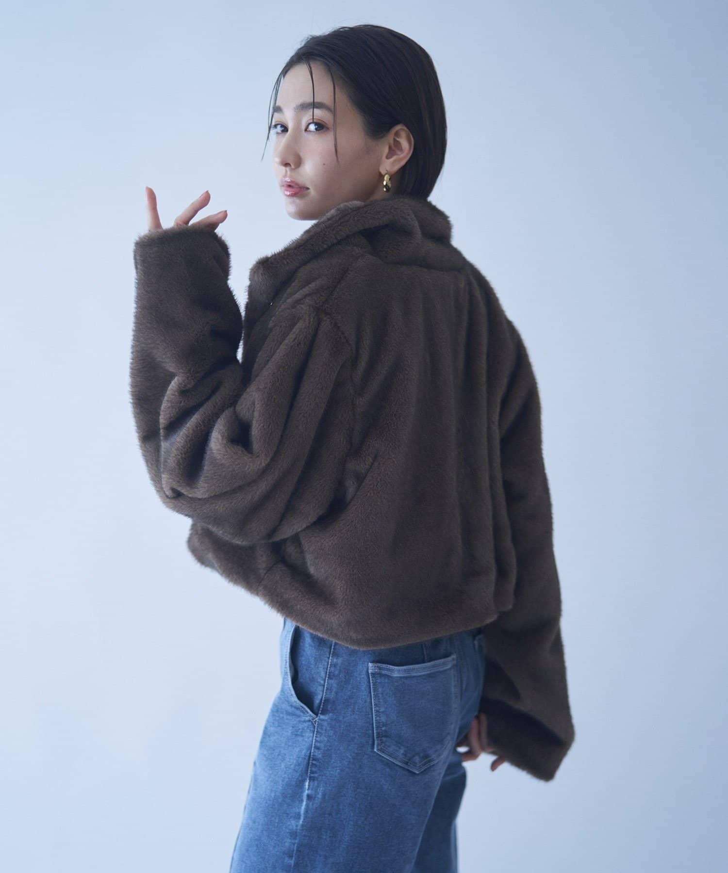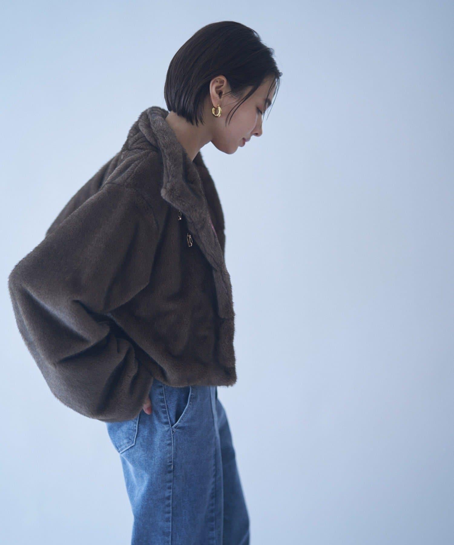 帶金屬扣混合毛短款夾克