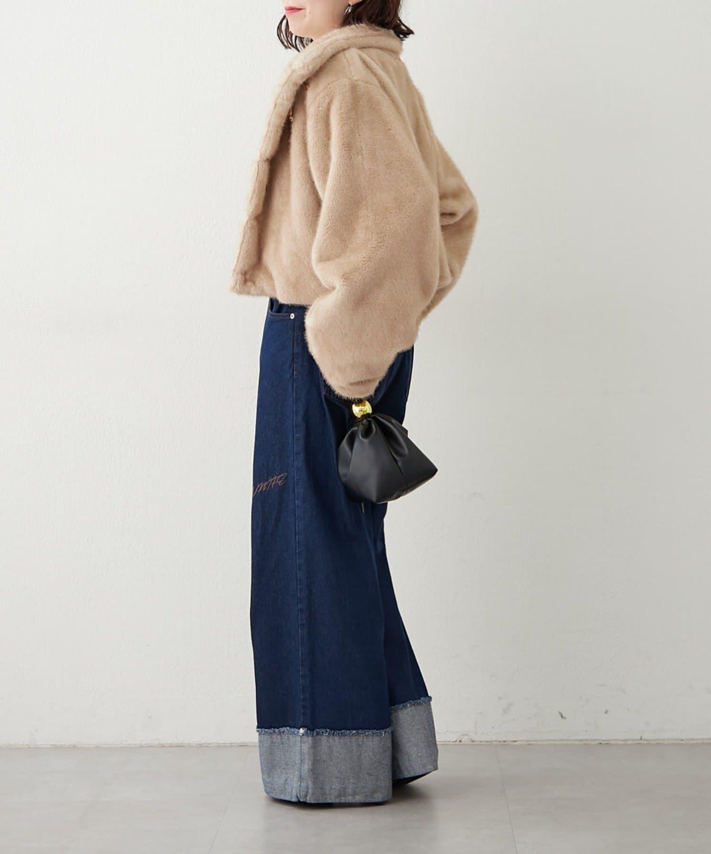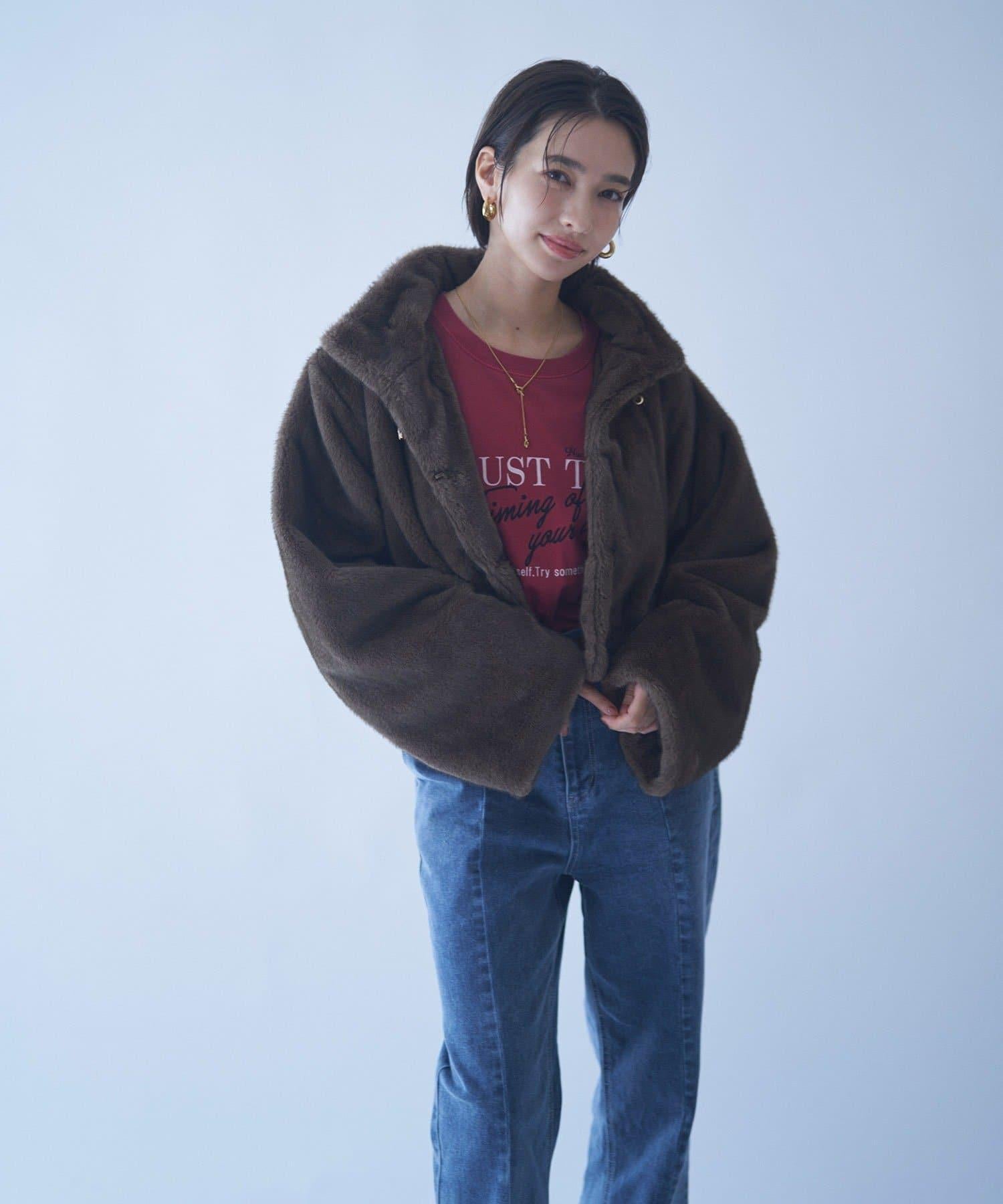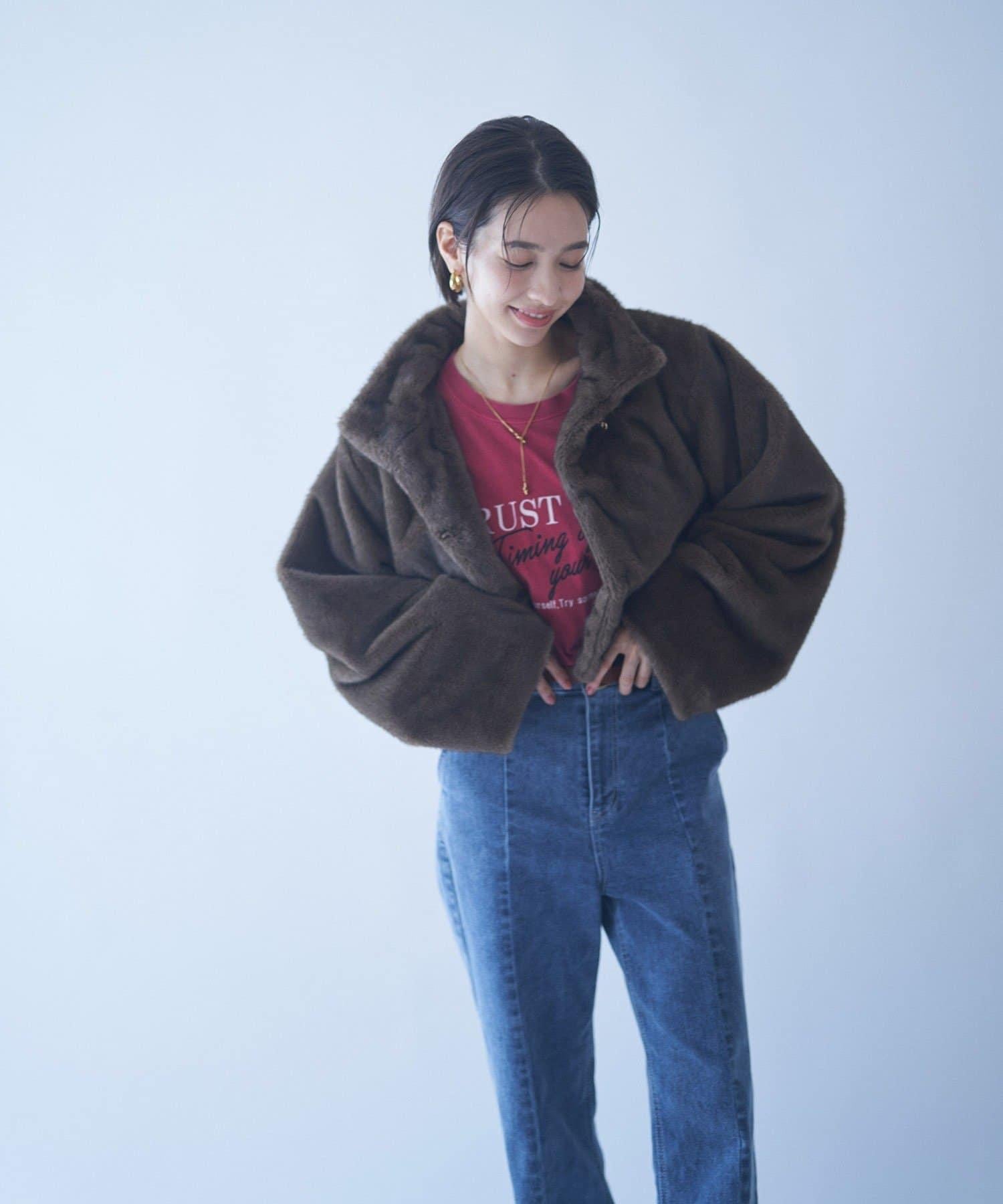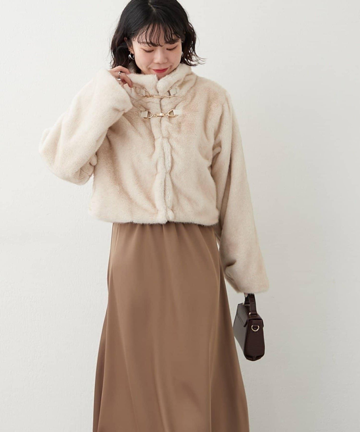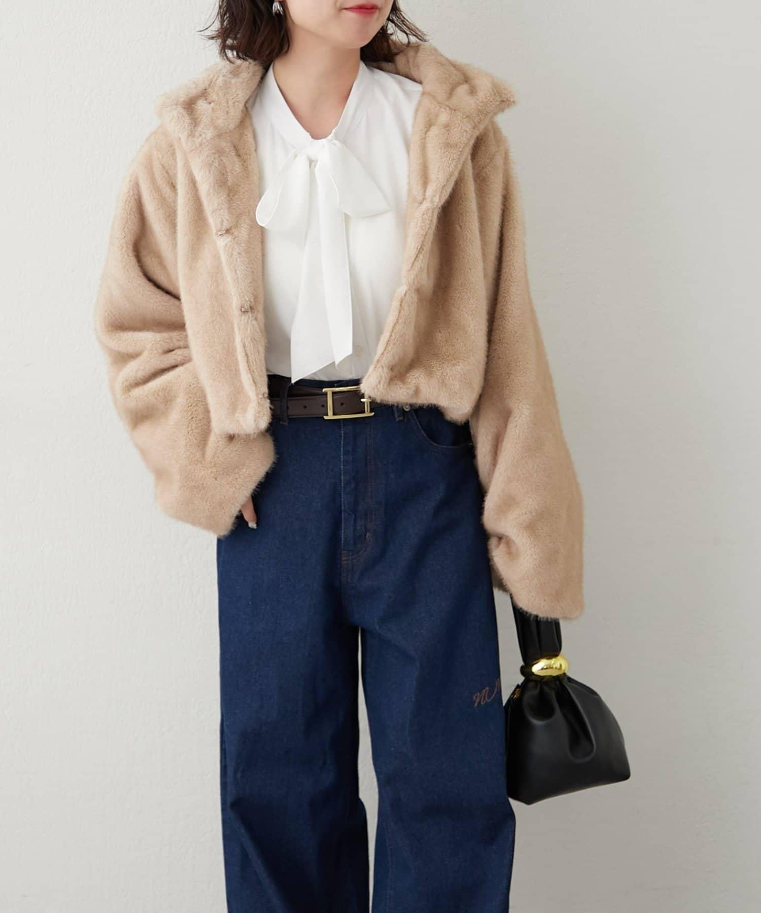 帶金屬扣混合毛短款夾克