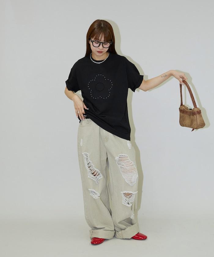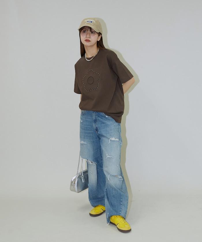 也建議搭配帶狀 T 恤般的休閒氛圍,搭配破損牛仔褲◎。