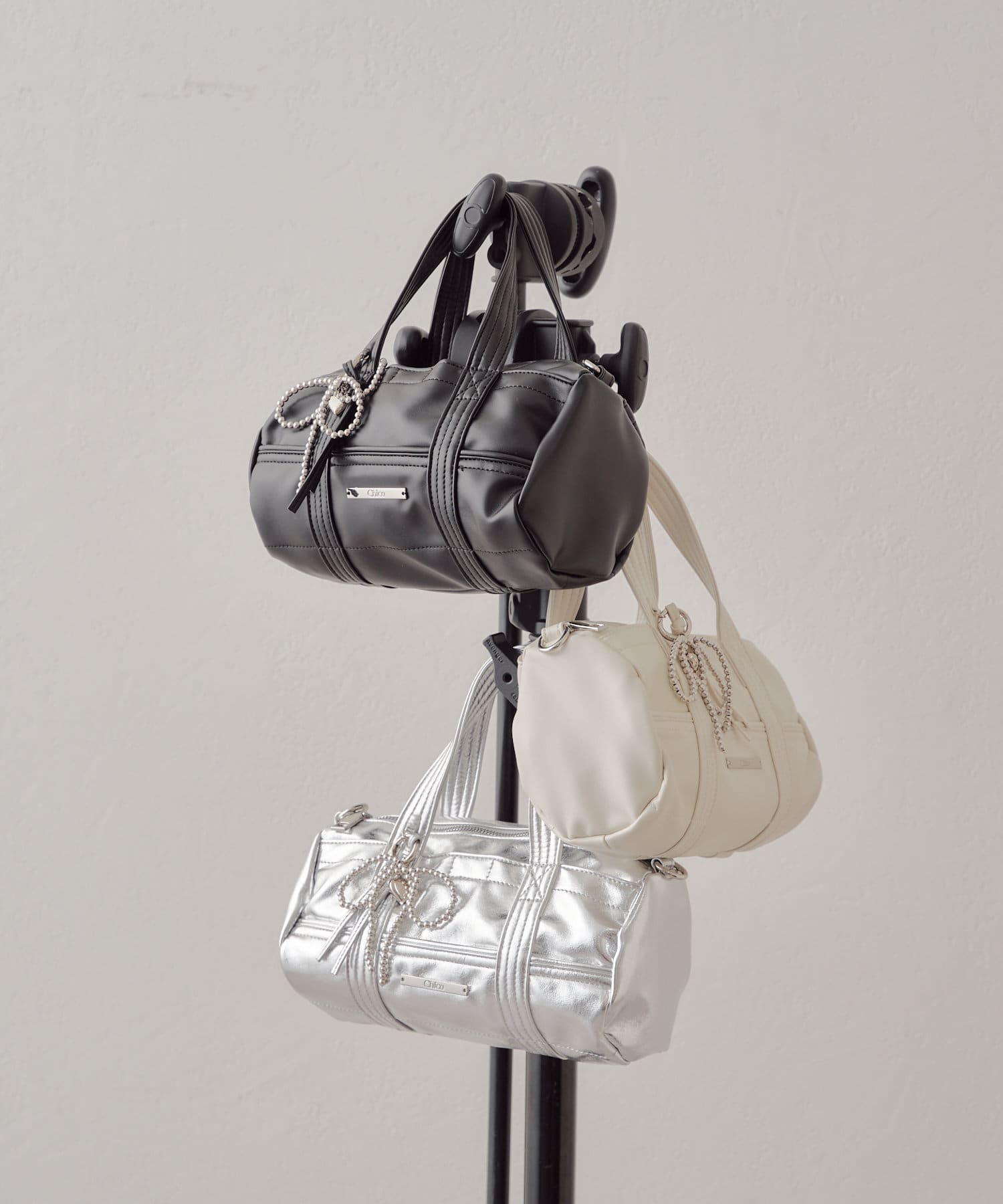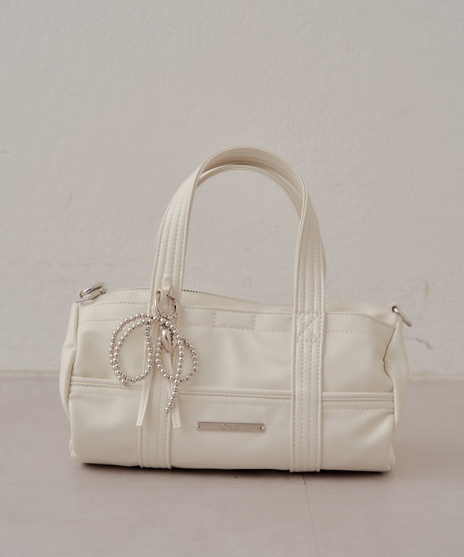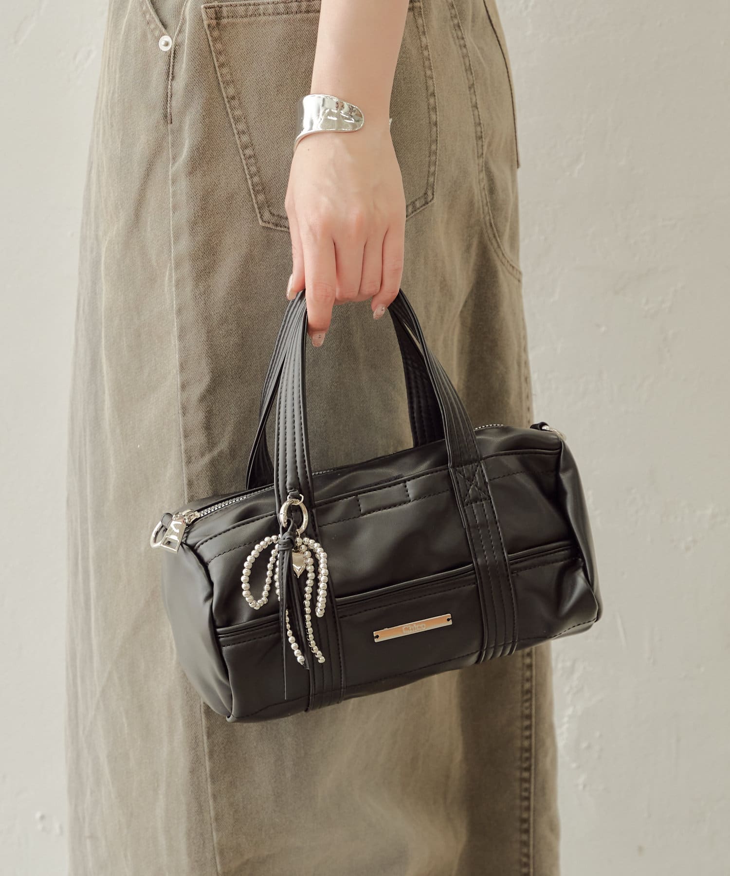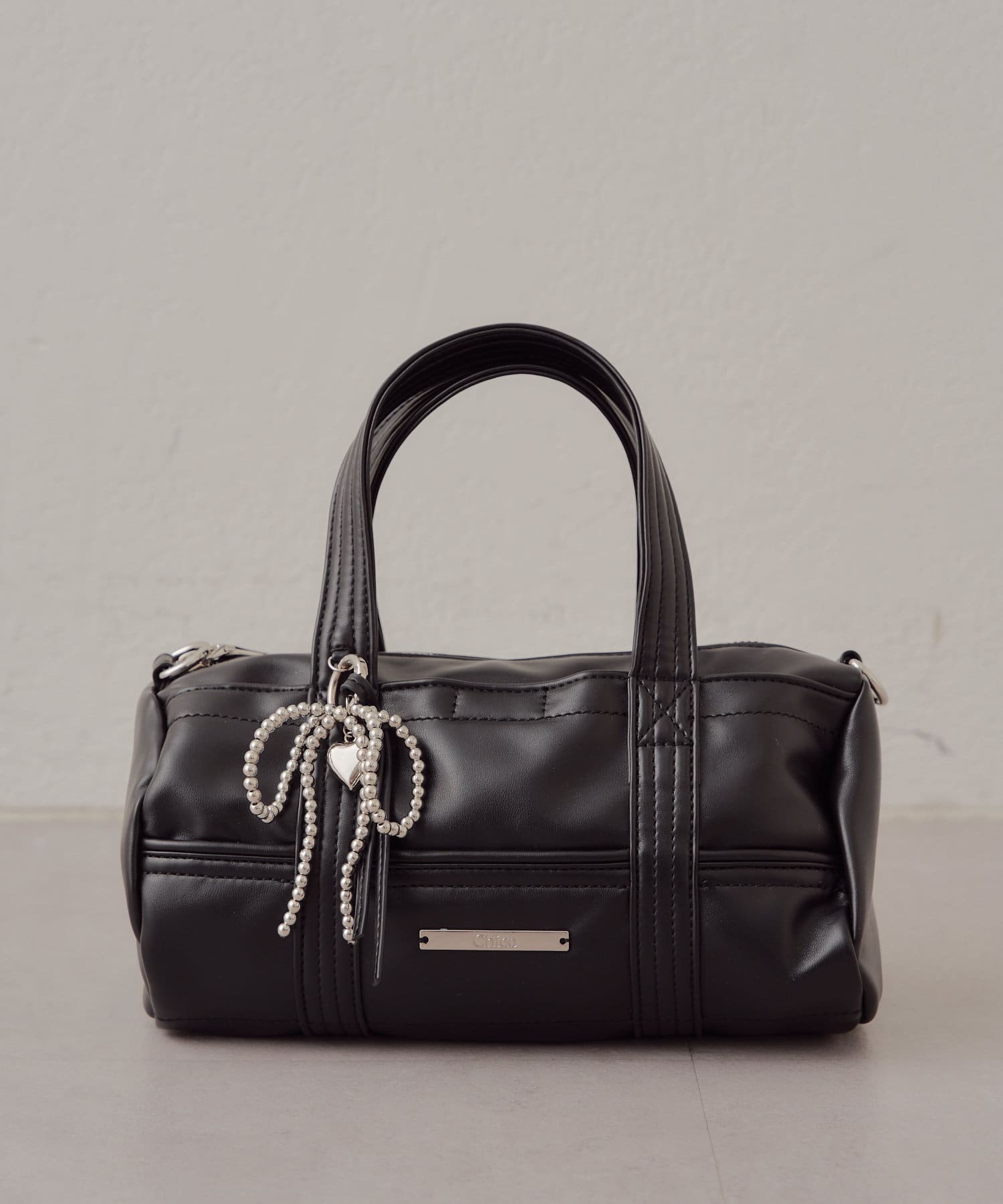 迷你波士頓包,配以醒目的絲帶吊飾