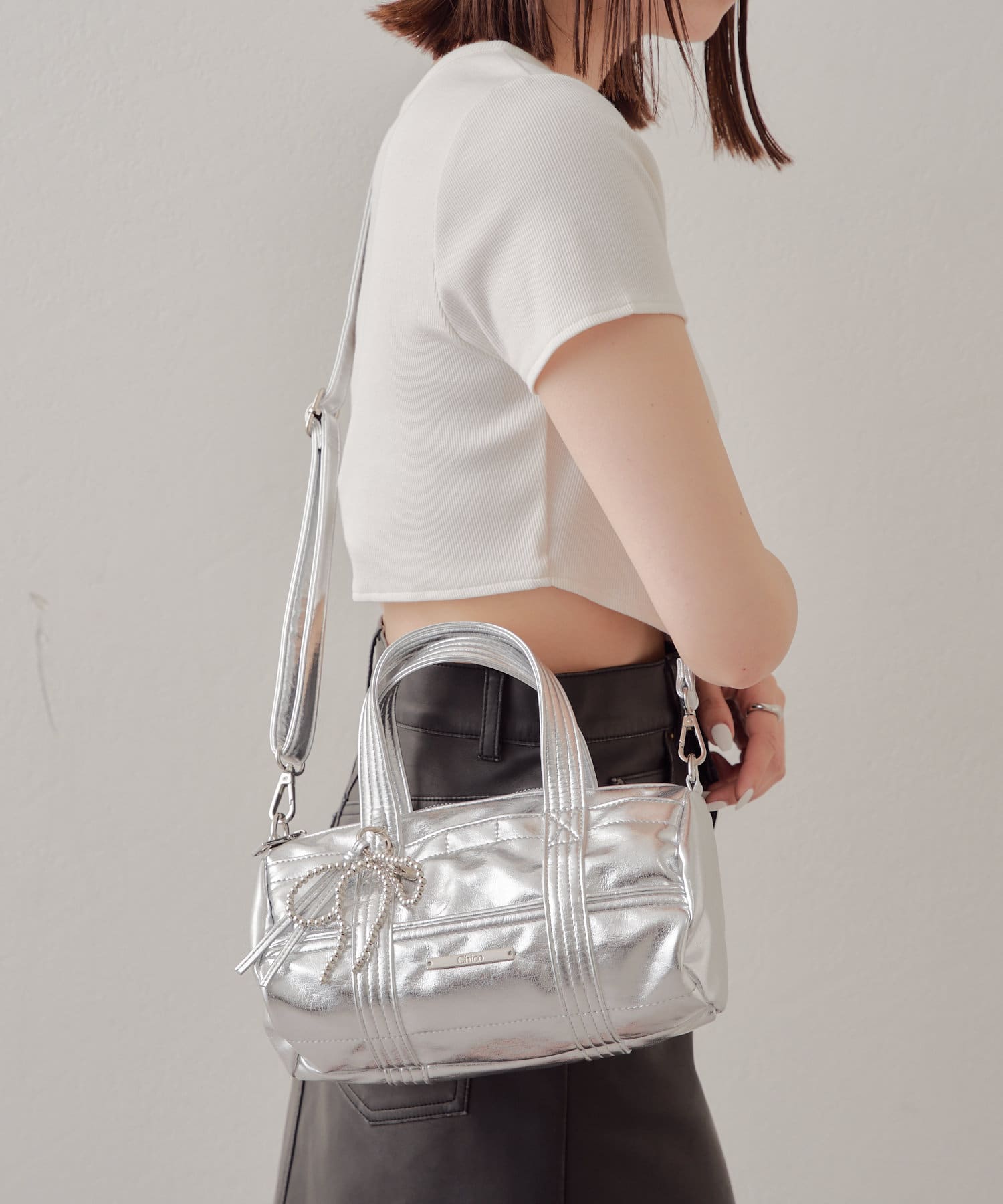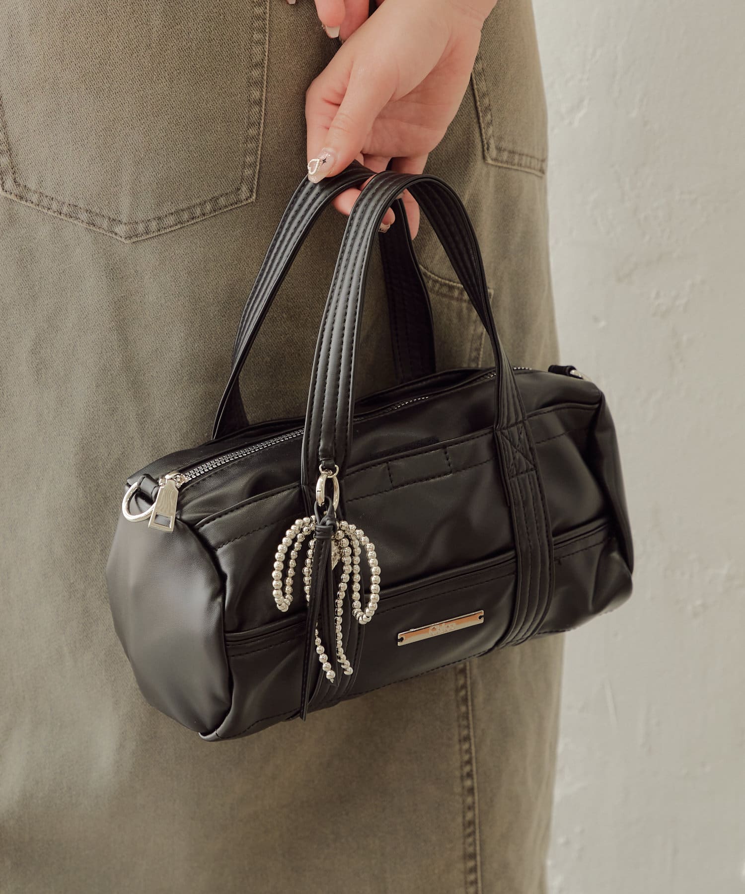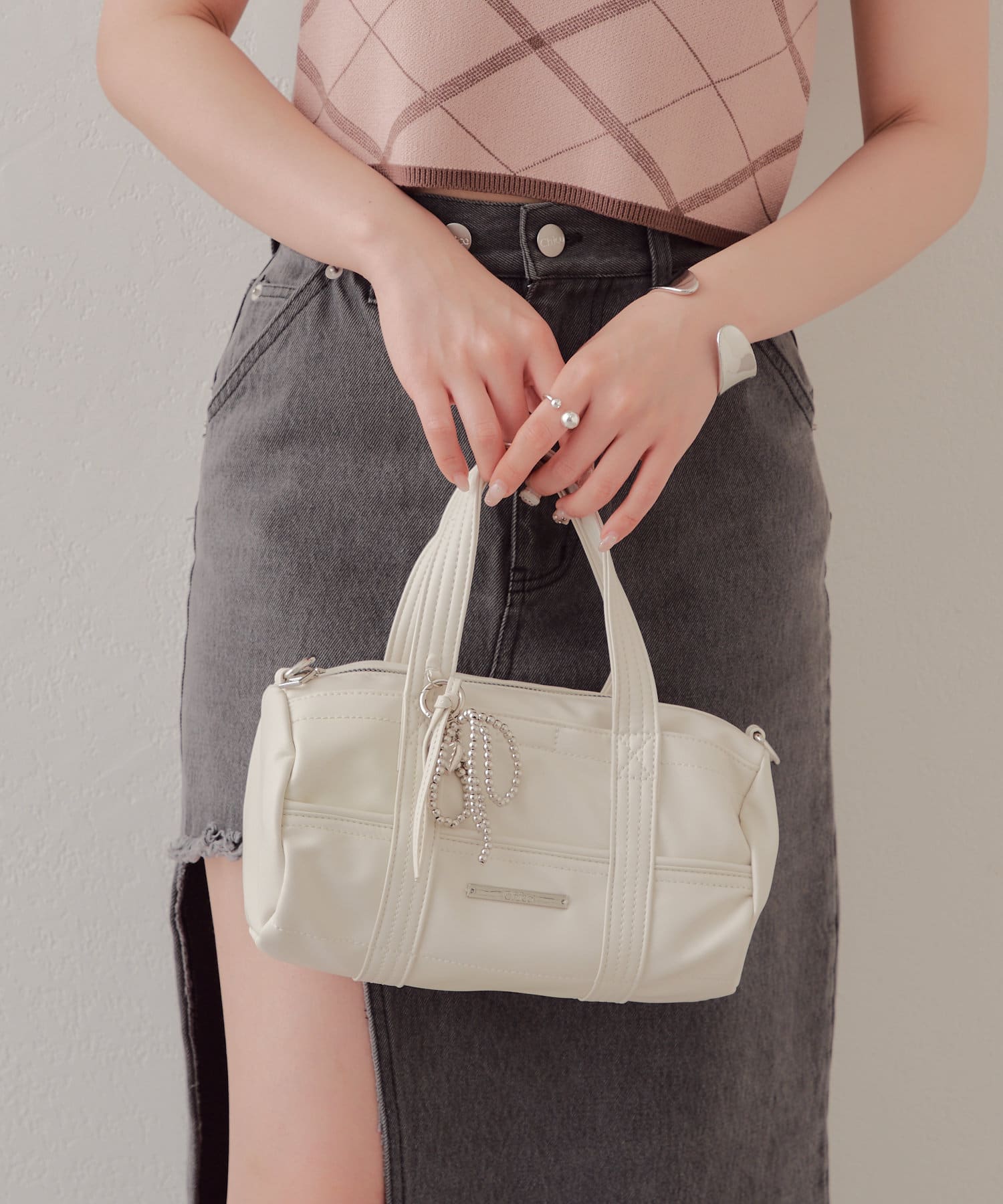 迷你波士頓包,配以醒目的絲帶吊飾