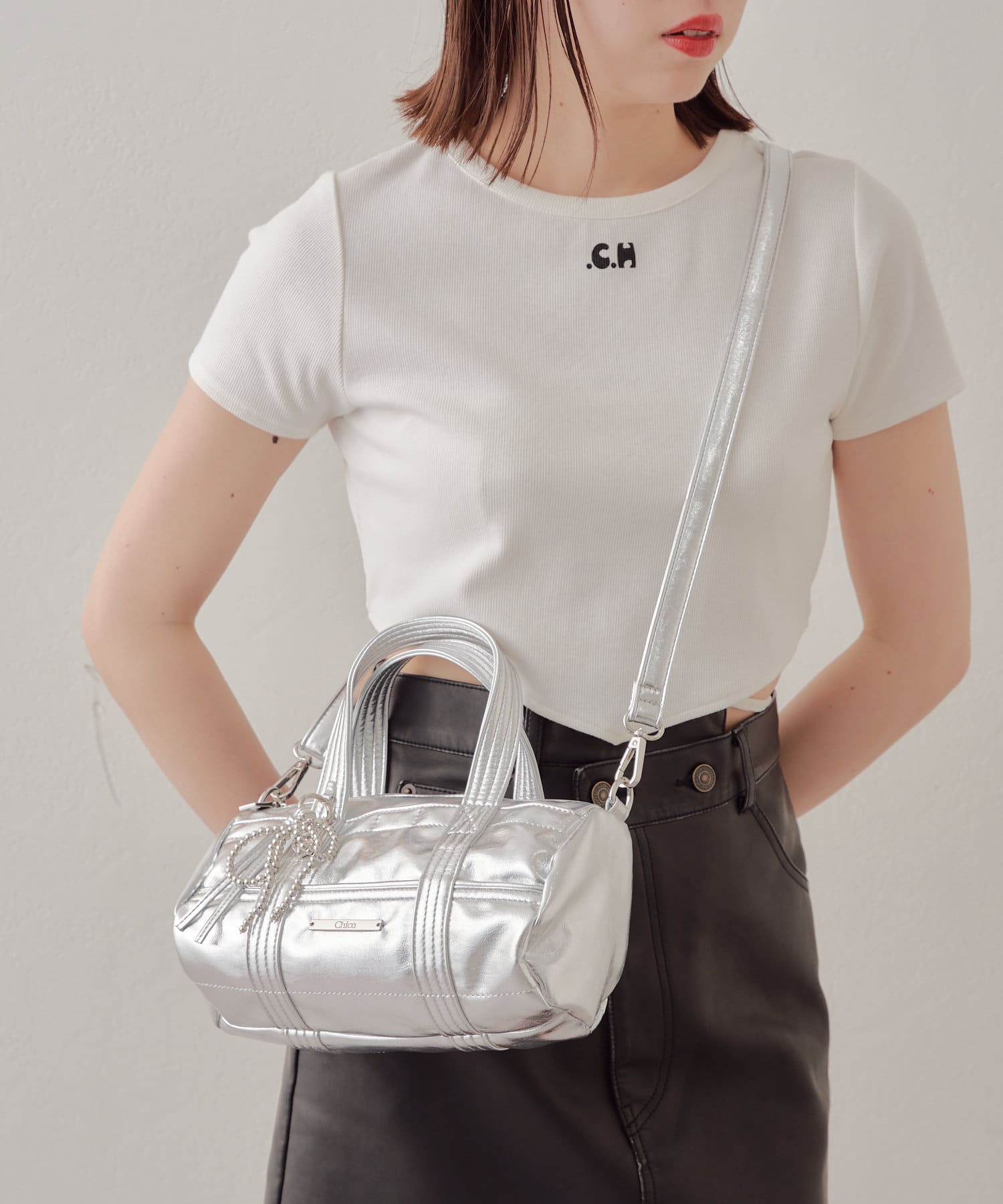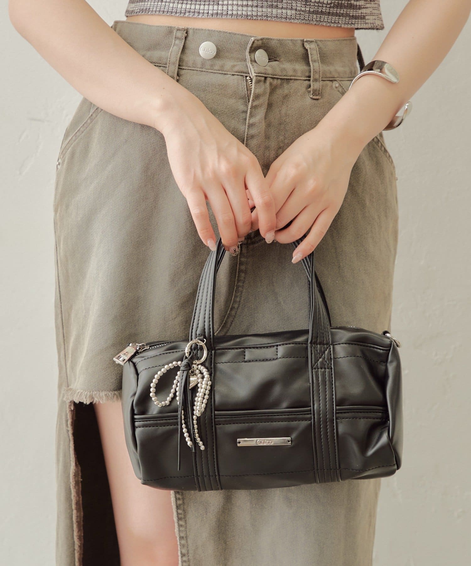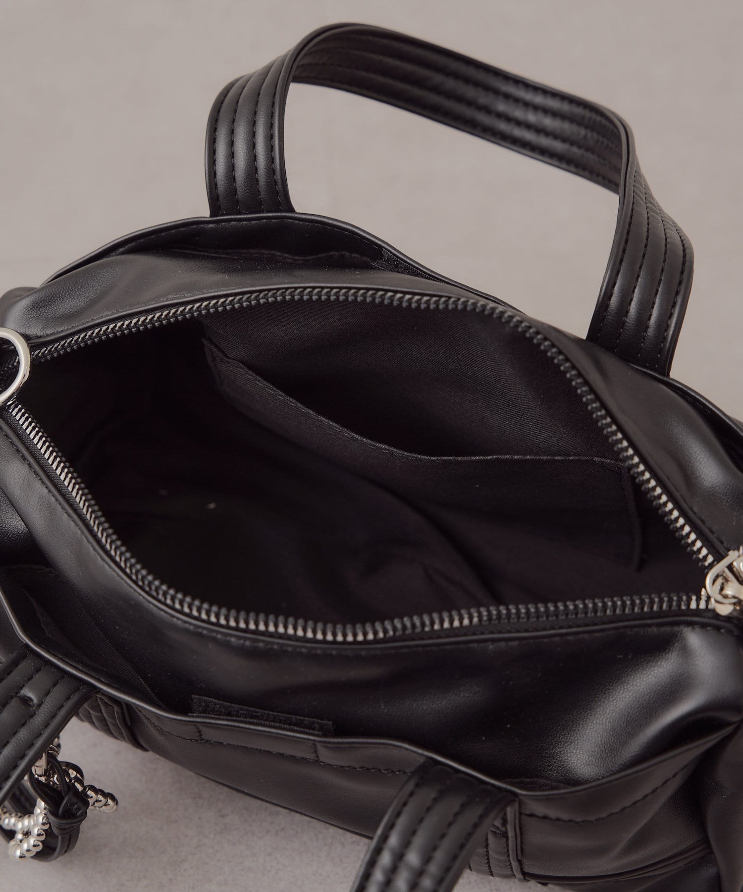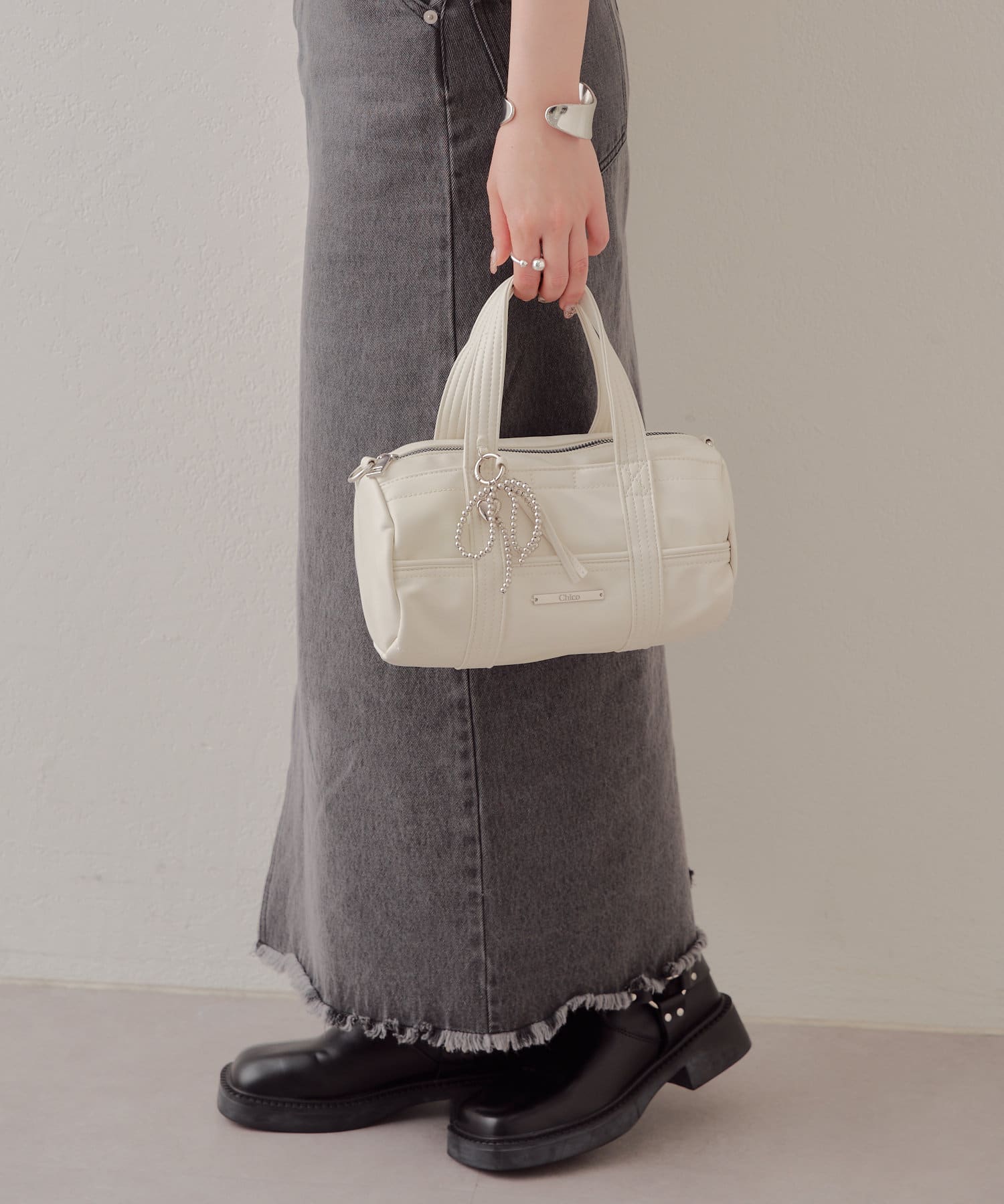 迷你波士頓包,配以醒目的絲帶吊飾