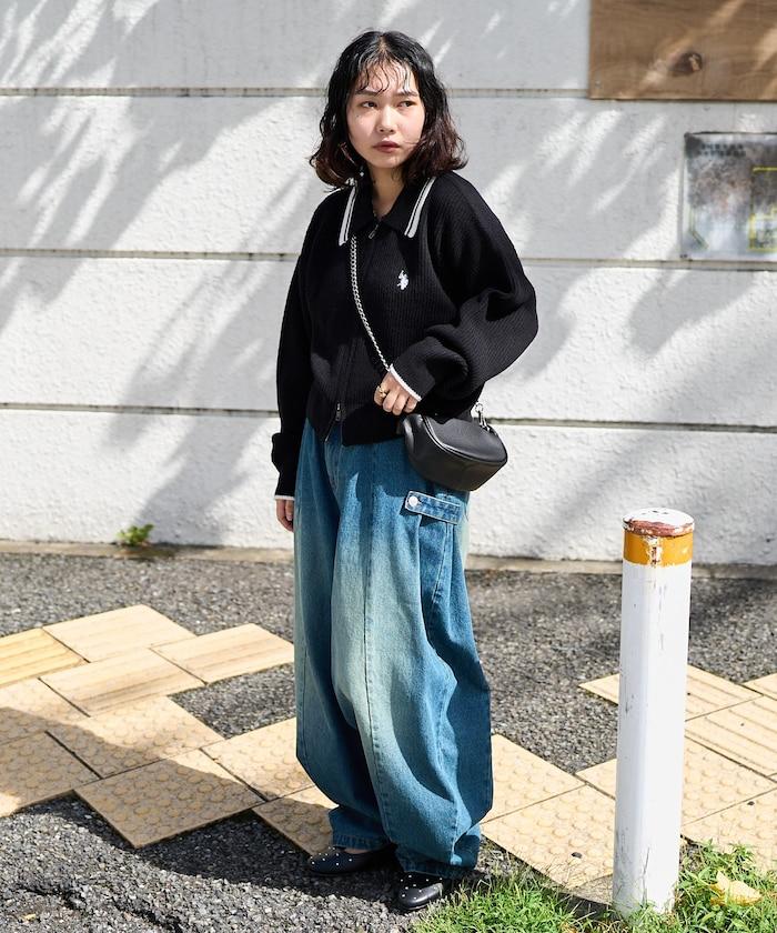 寬鬆的衣身與剪裁的長度相結合,起到了很好的提升風格的效果。