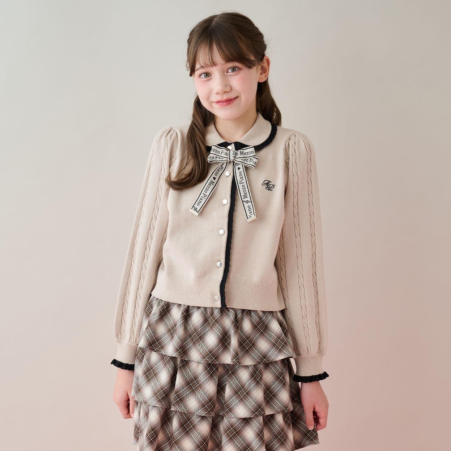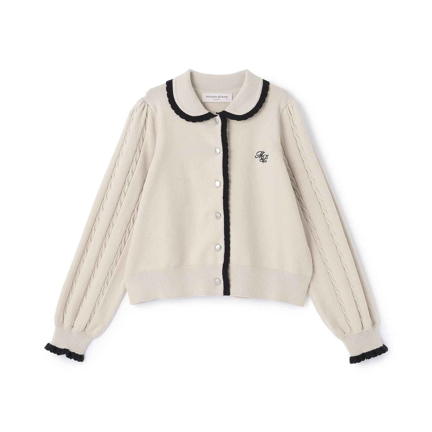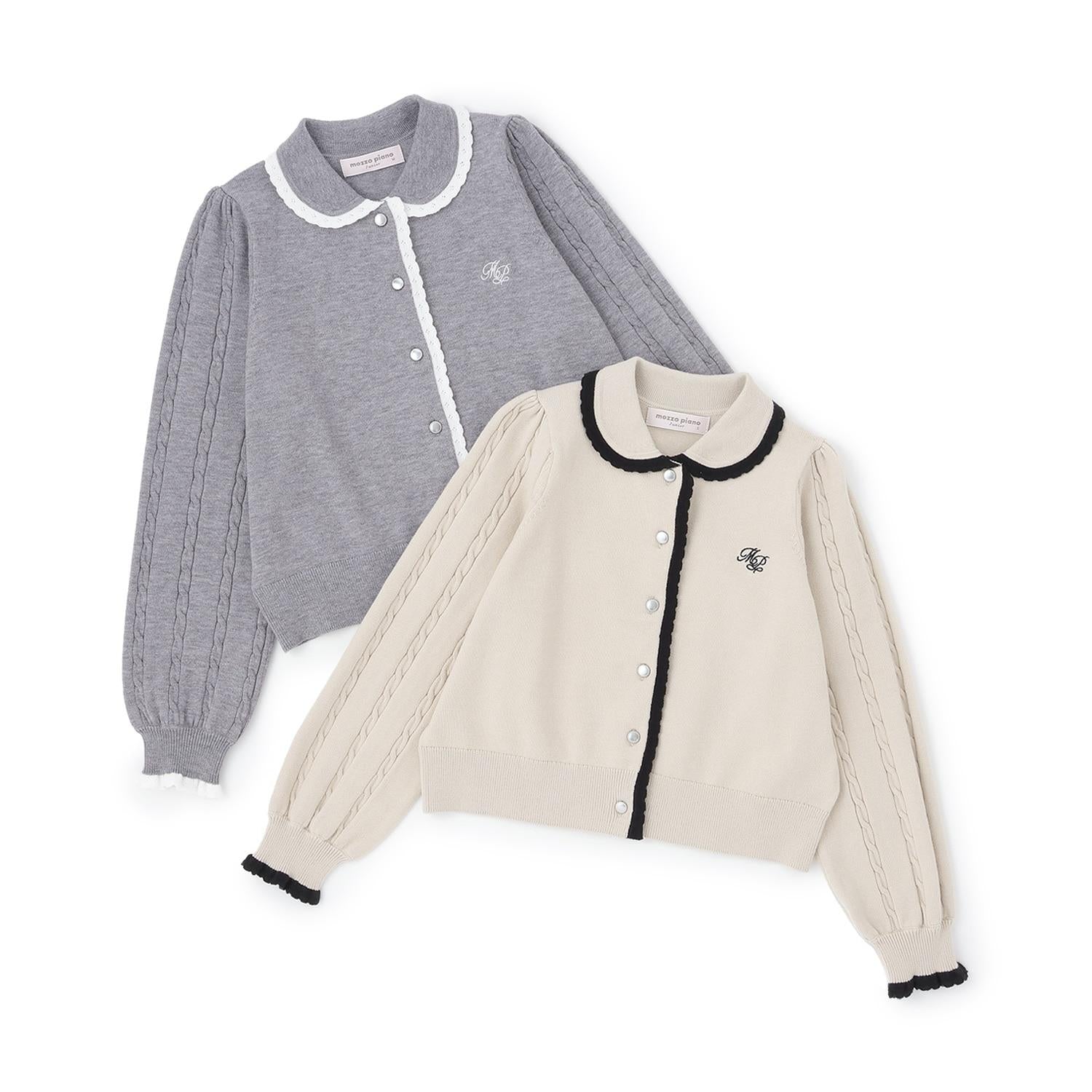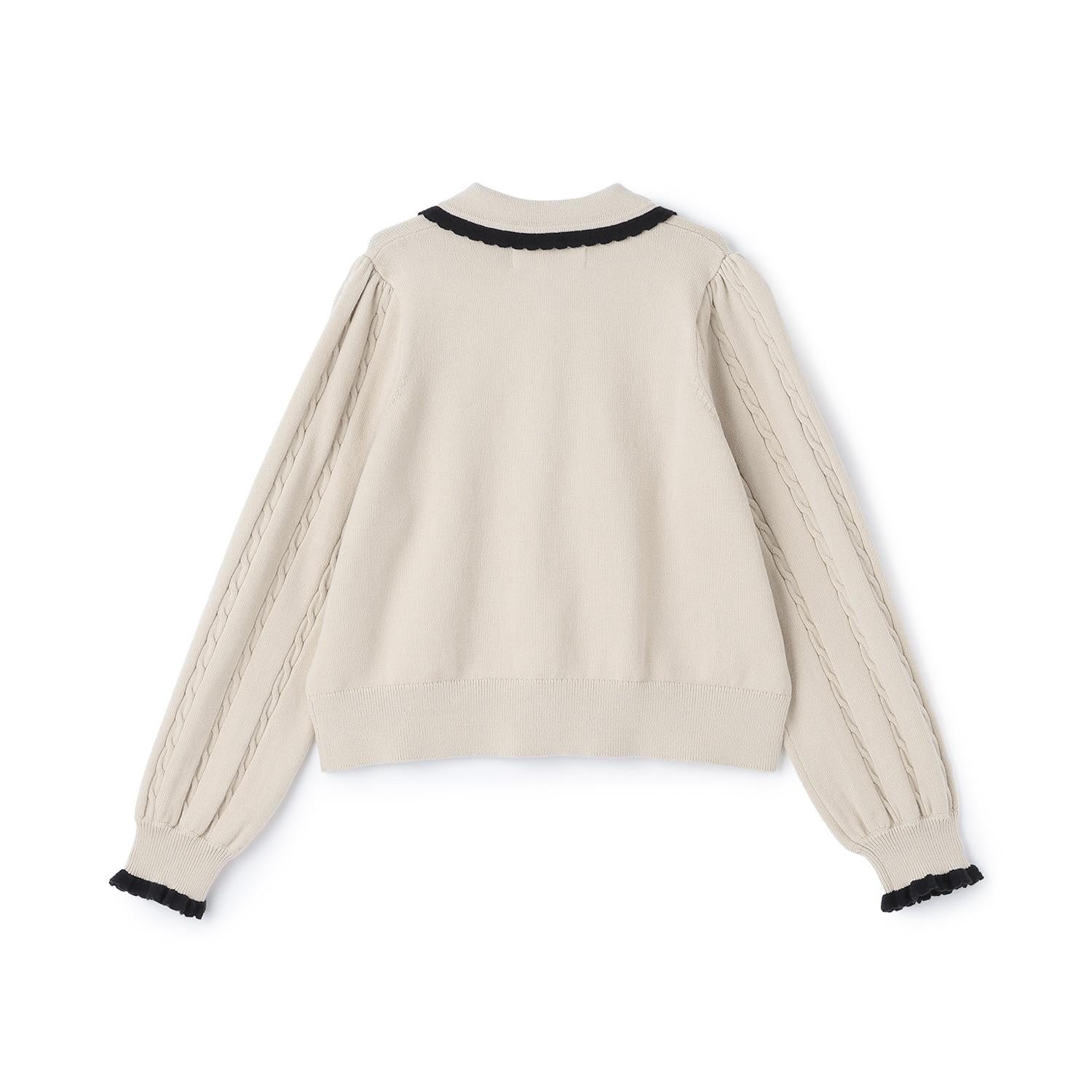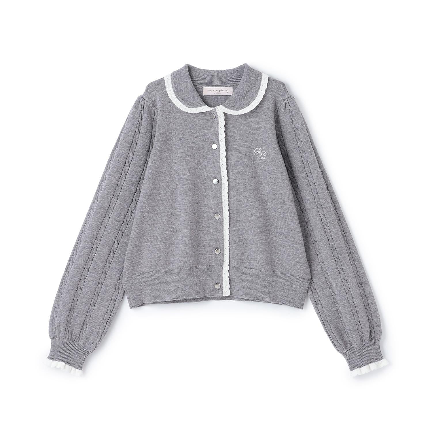這款針織開衫領子可愛,邊緣採用蕾絲編織,色彩搭配豐富。