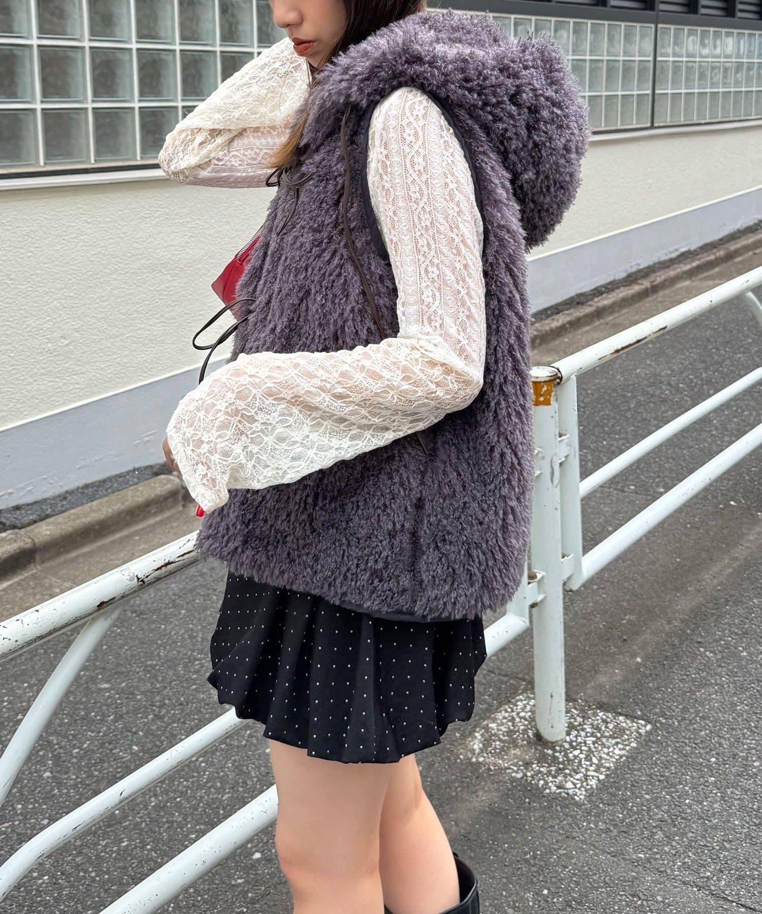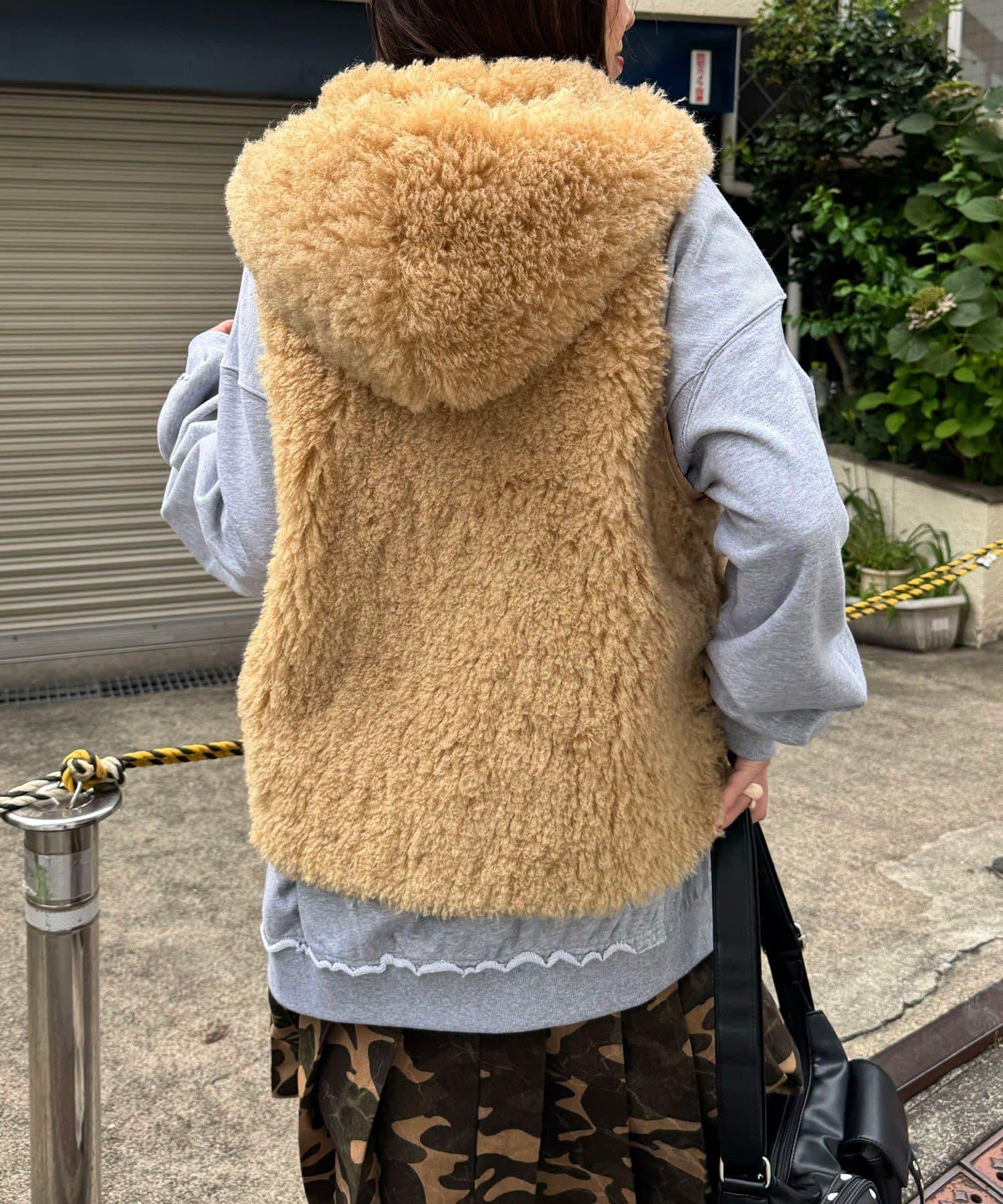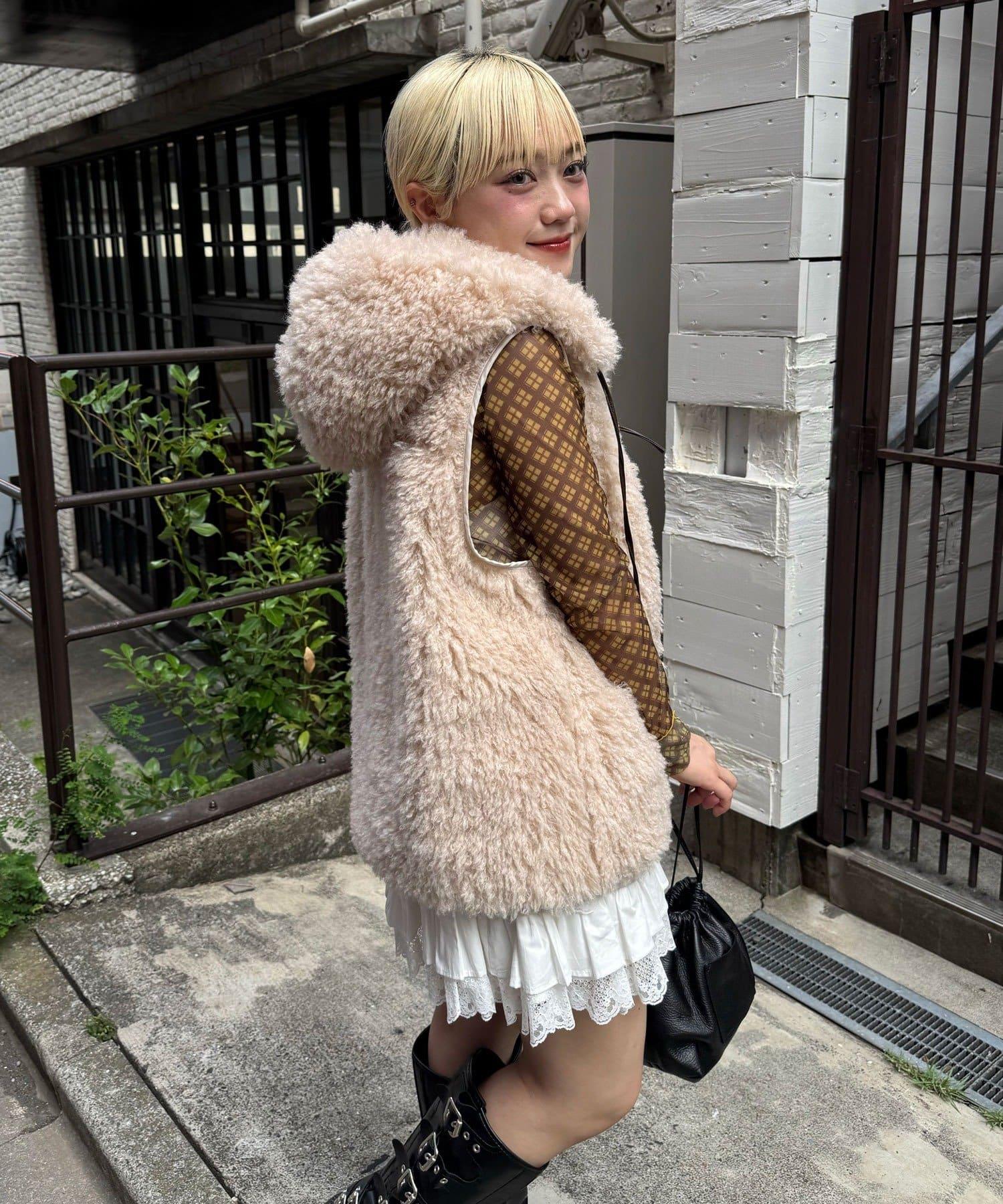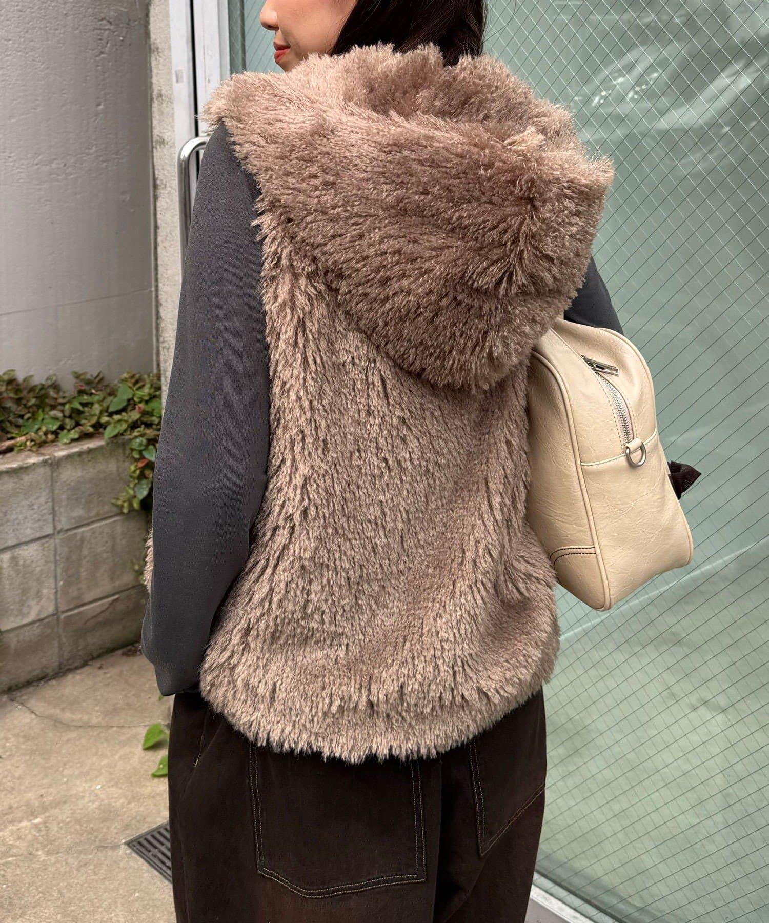 輕盈舒適的皮草馬甲,連兜帽都是蓬鬆的皮草製成。