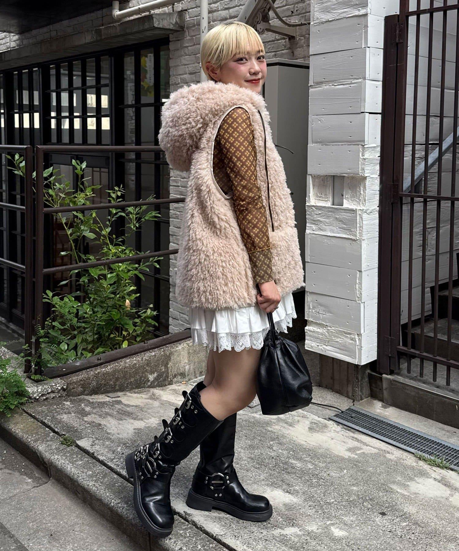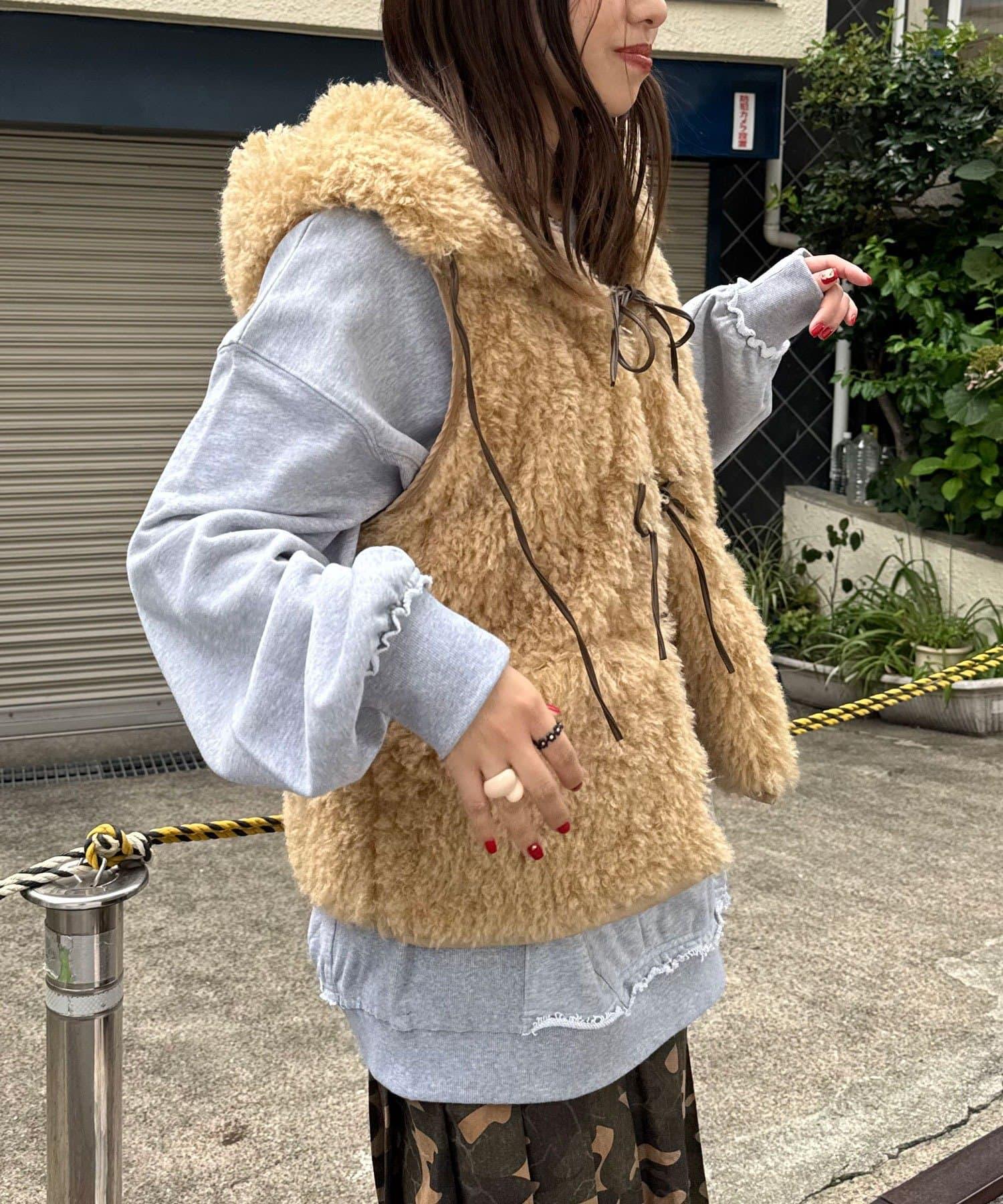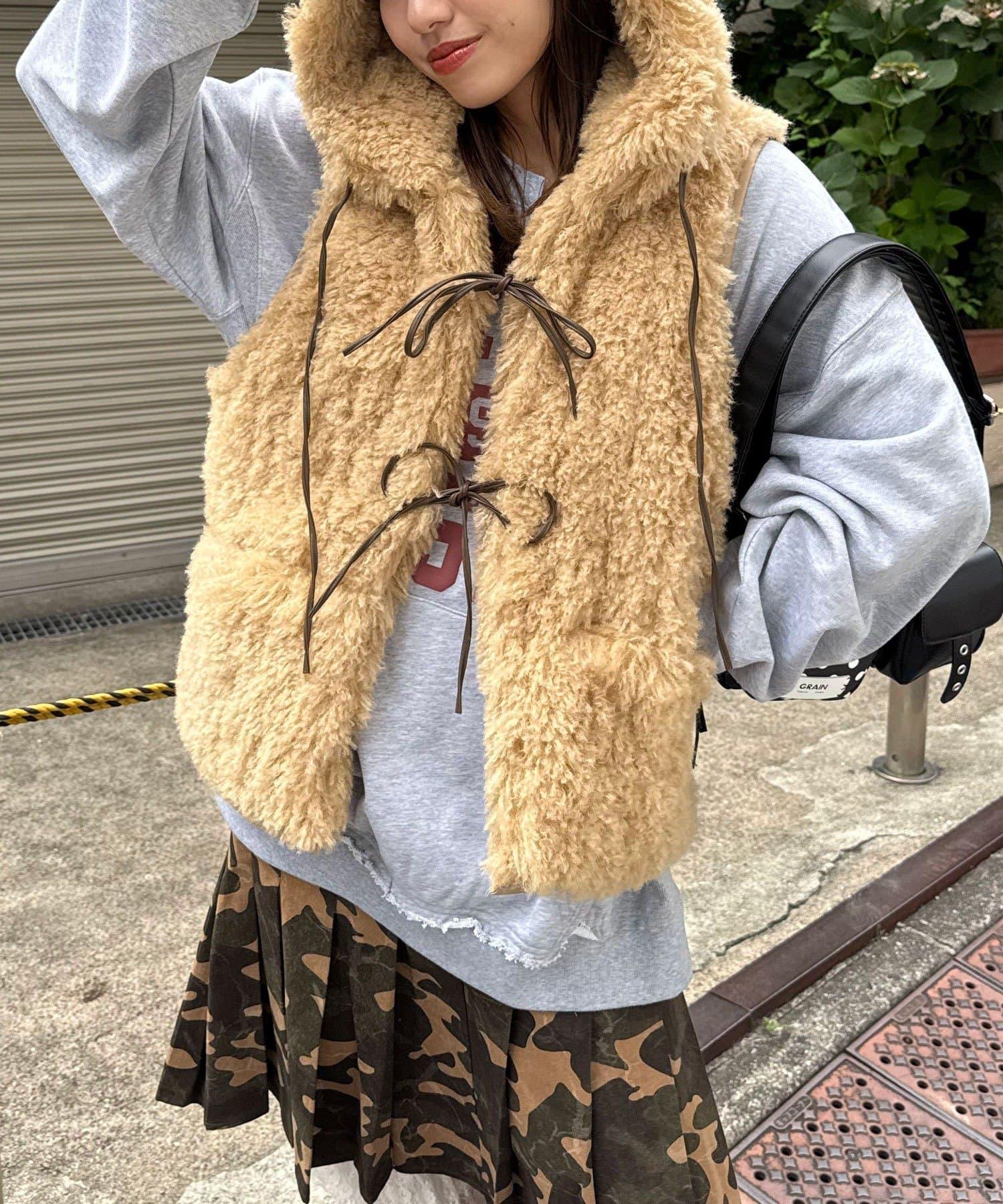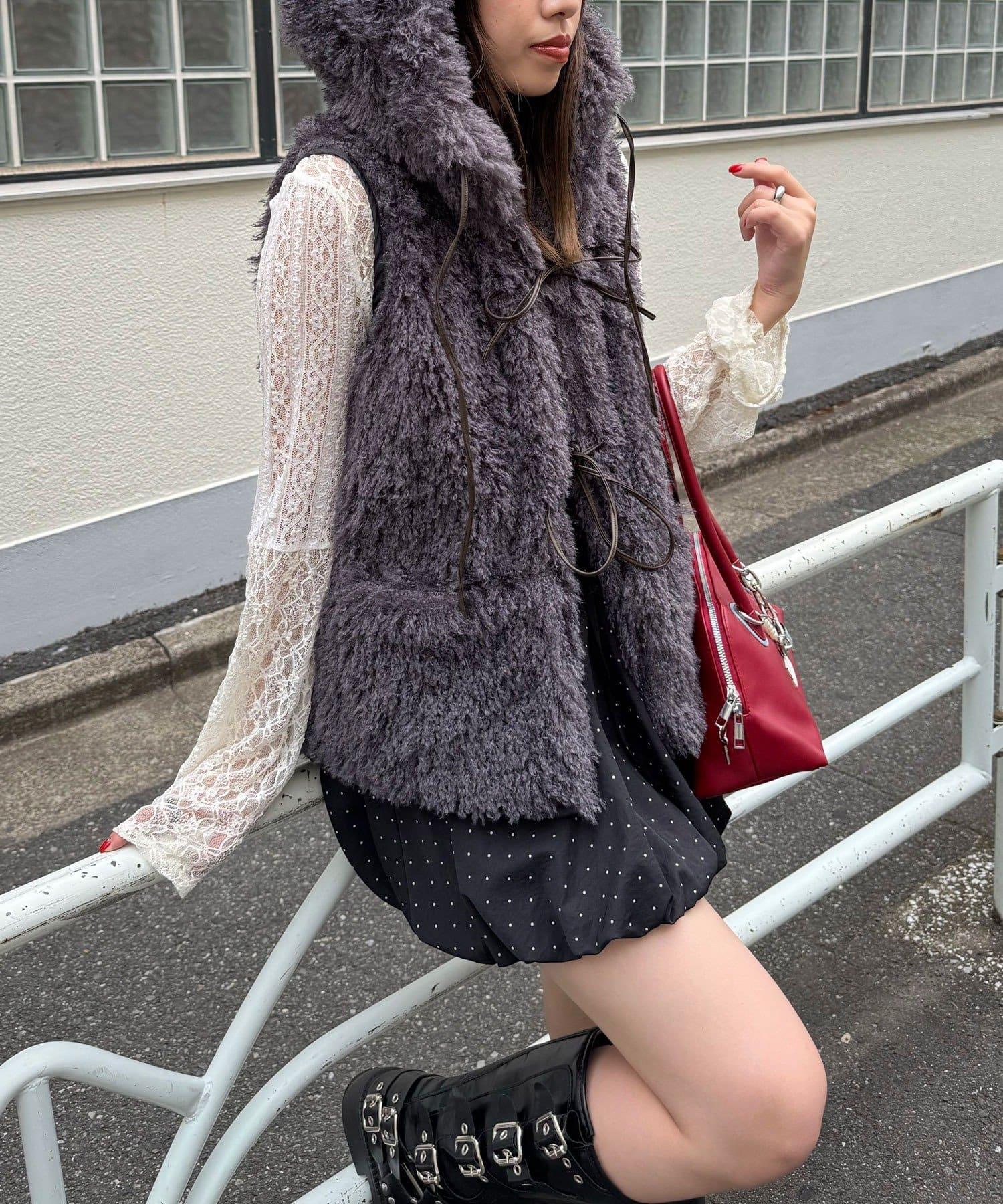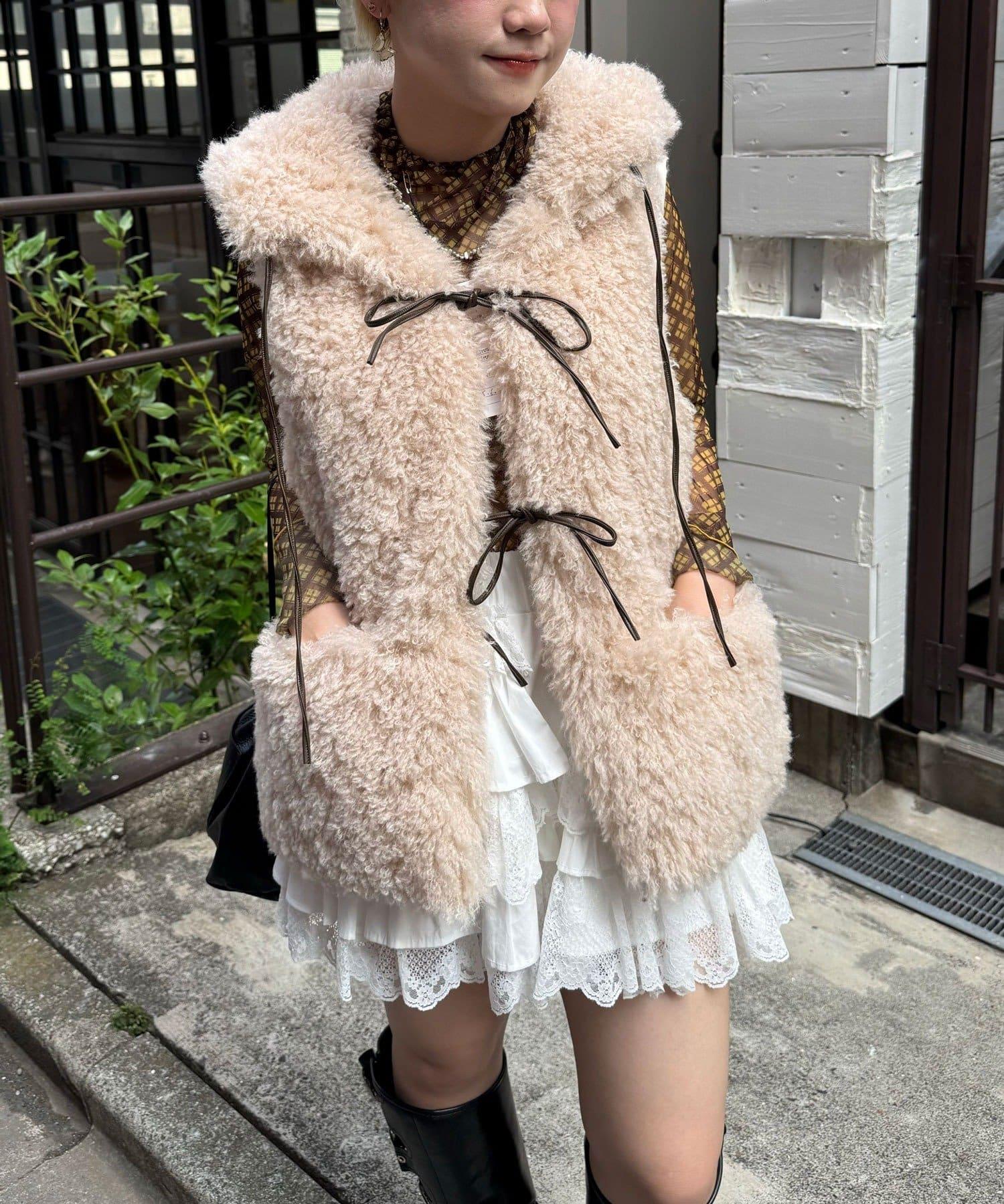 輕盈舒適的皮草馬甲,連兜帽都是蓬鬆的皮草製成。