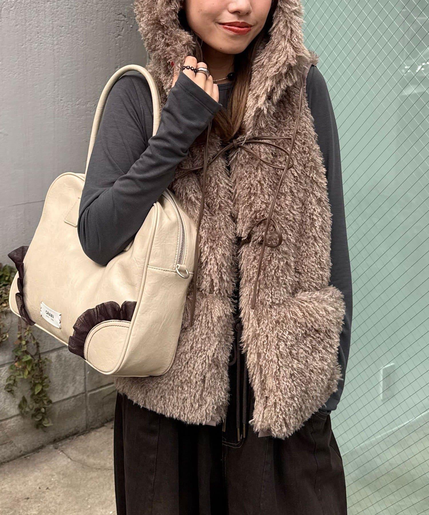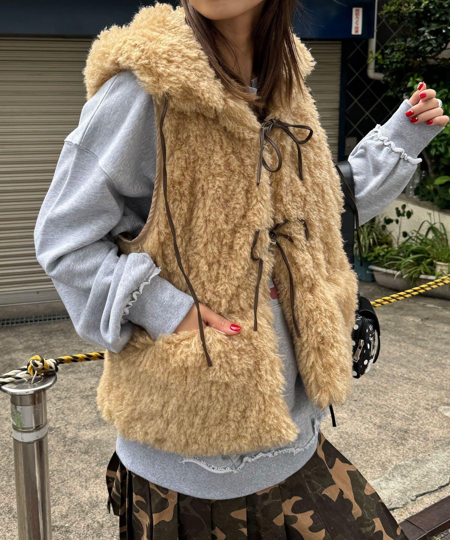 帶食物口袋的蝴蝶結毛絨馬甲