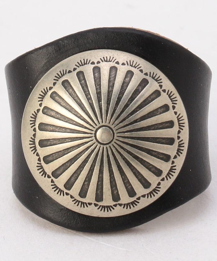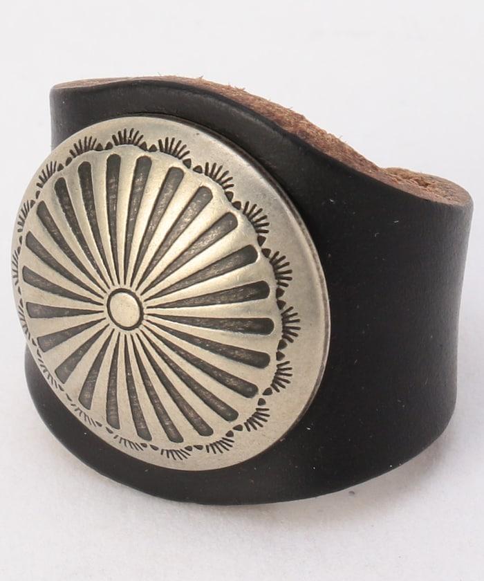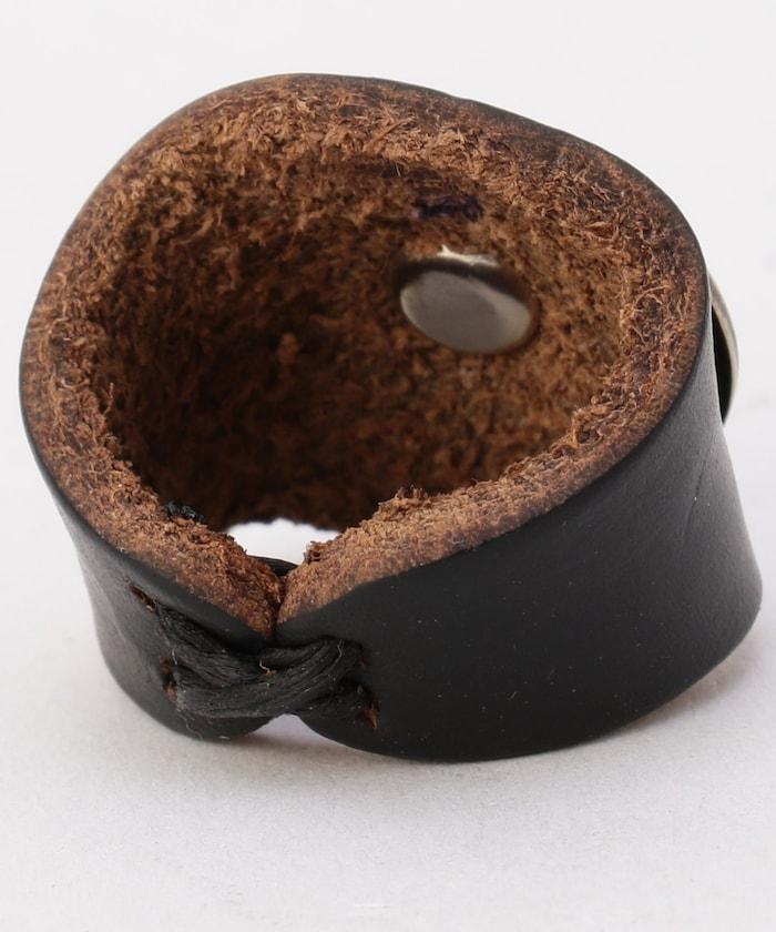 製鞋時留下的皮革下腳料上附有鎳銀裝飾的皮環。