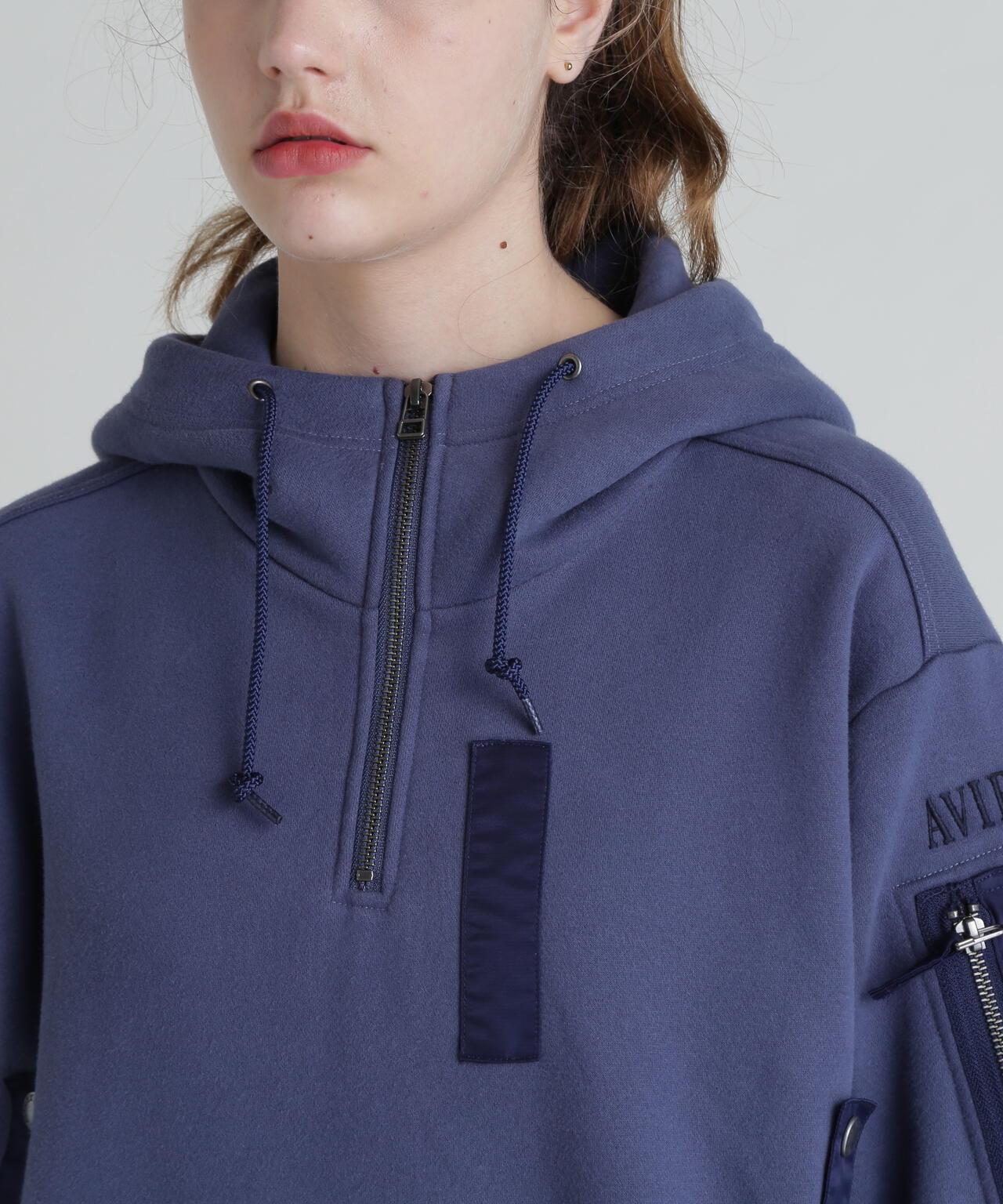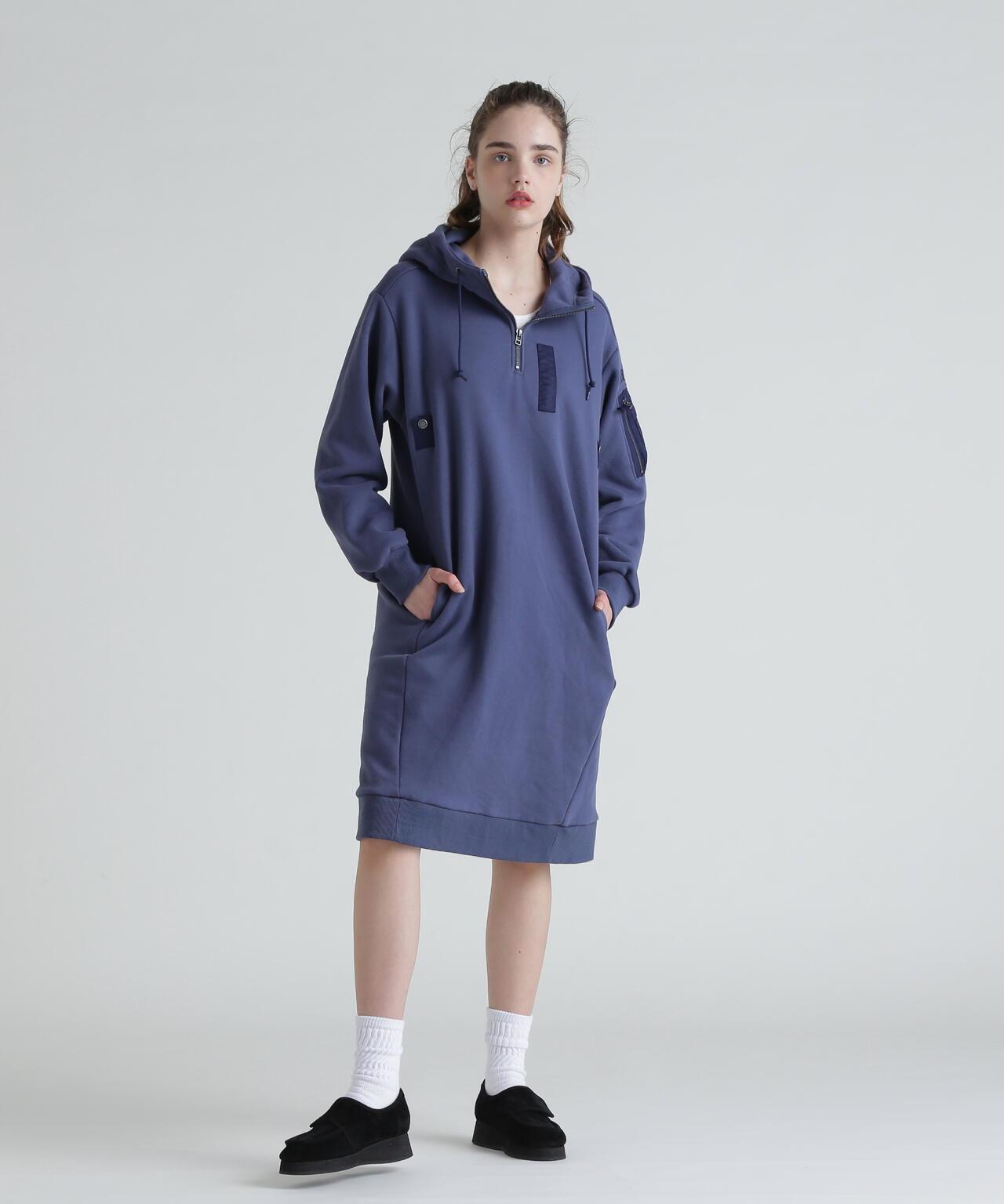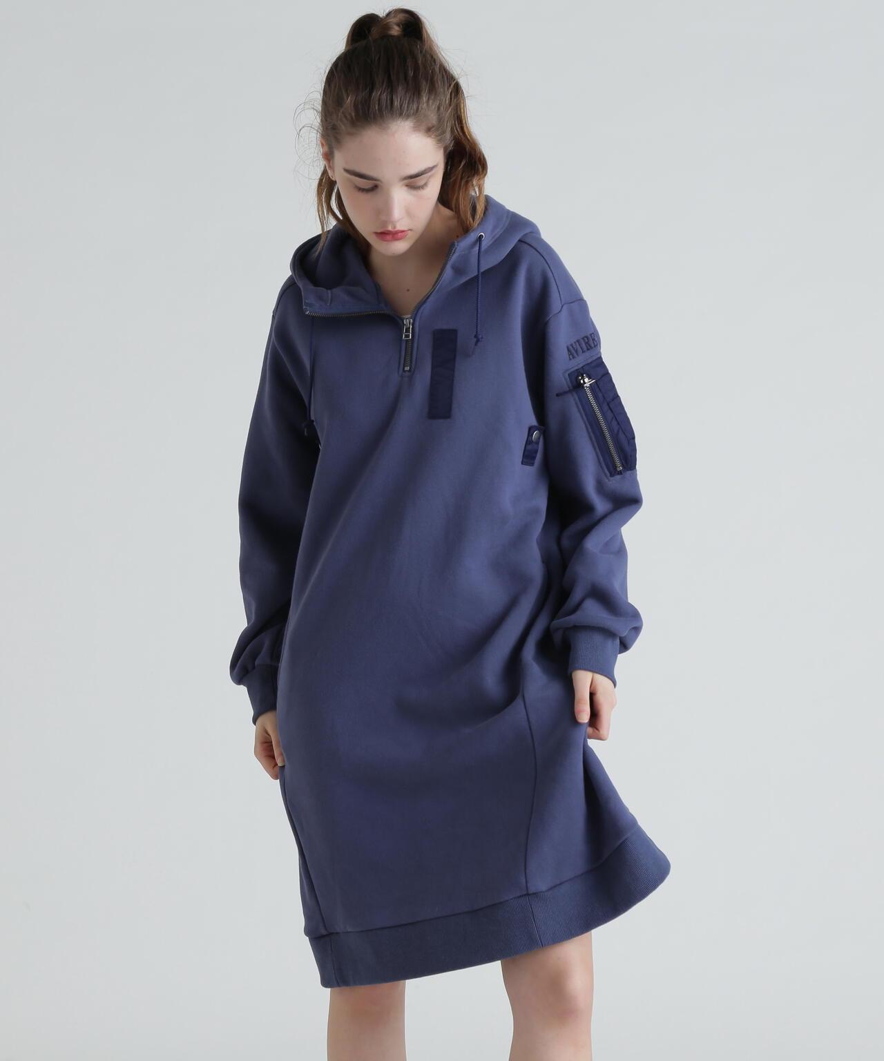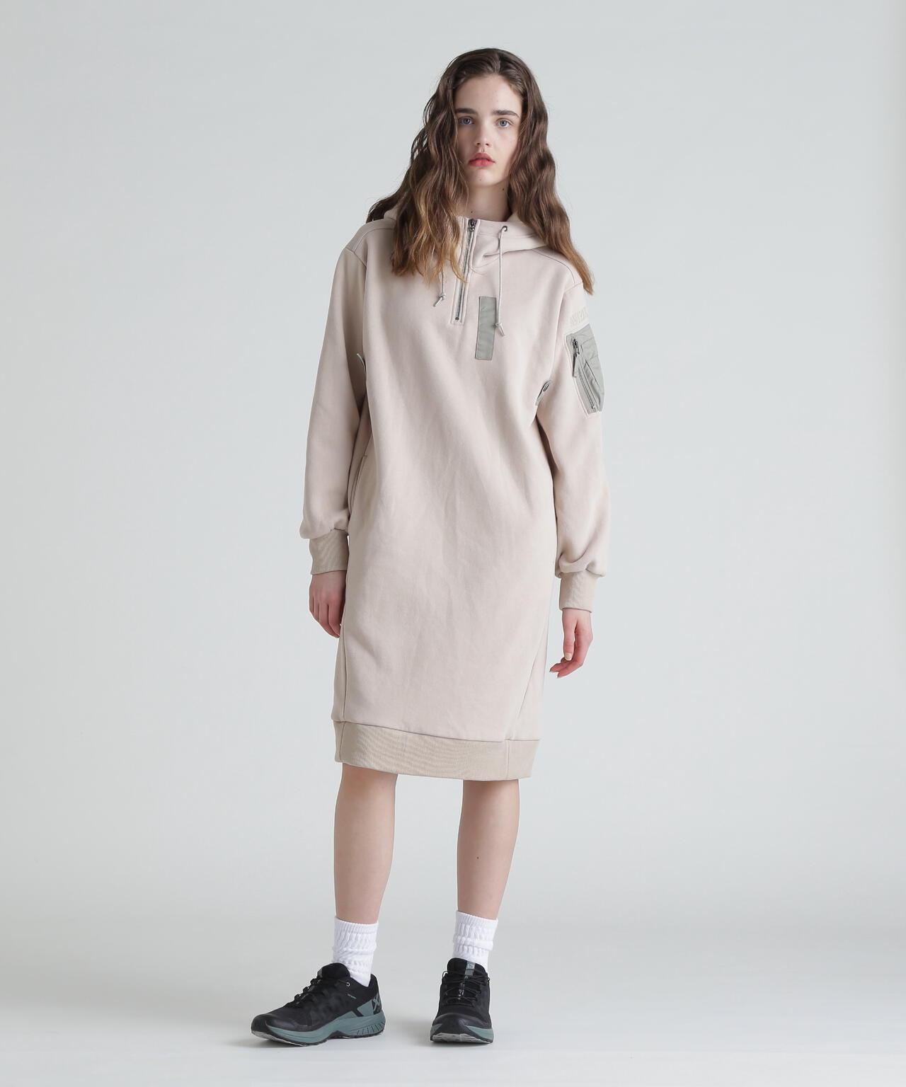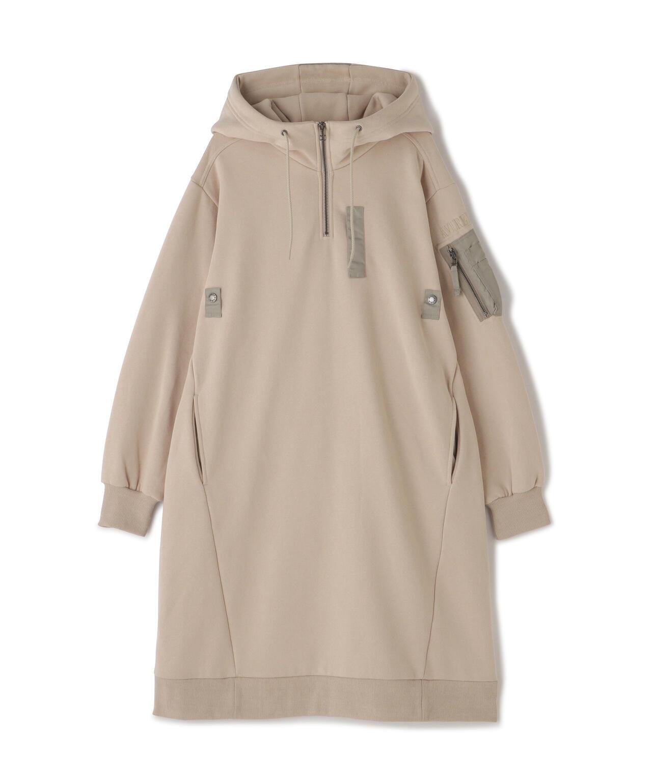 AVIREX Official Shop] 2024 WINTER ITEMHOODIE NYLON MILITARY ONEPIECE,帶 MA-1 袖袋和側面標籤細節,軍裝禮服,衣領可用拉鍊開合。衣領可用拉鍊開合。頸部乾淨整潔,從裡面也可以穿高領衫 ◎即使疊穿褲子,也能輕鬆平衡的長度。與褲子疊穿時也能輕鬆平衡的長度。AVIREX WOMAN] 該系列將純正軍裝的功能性和設計感投射到女式休閒裝上。作為一個獨特而永恆的女裝品牌,它以智慧、自由和品味著稱。