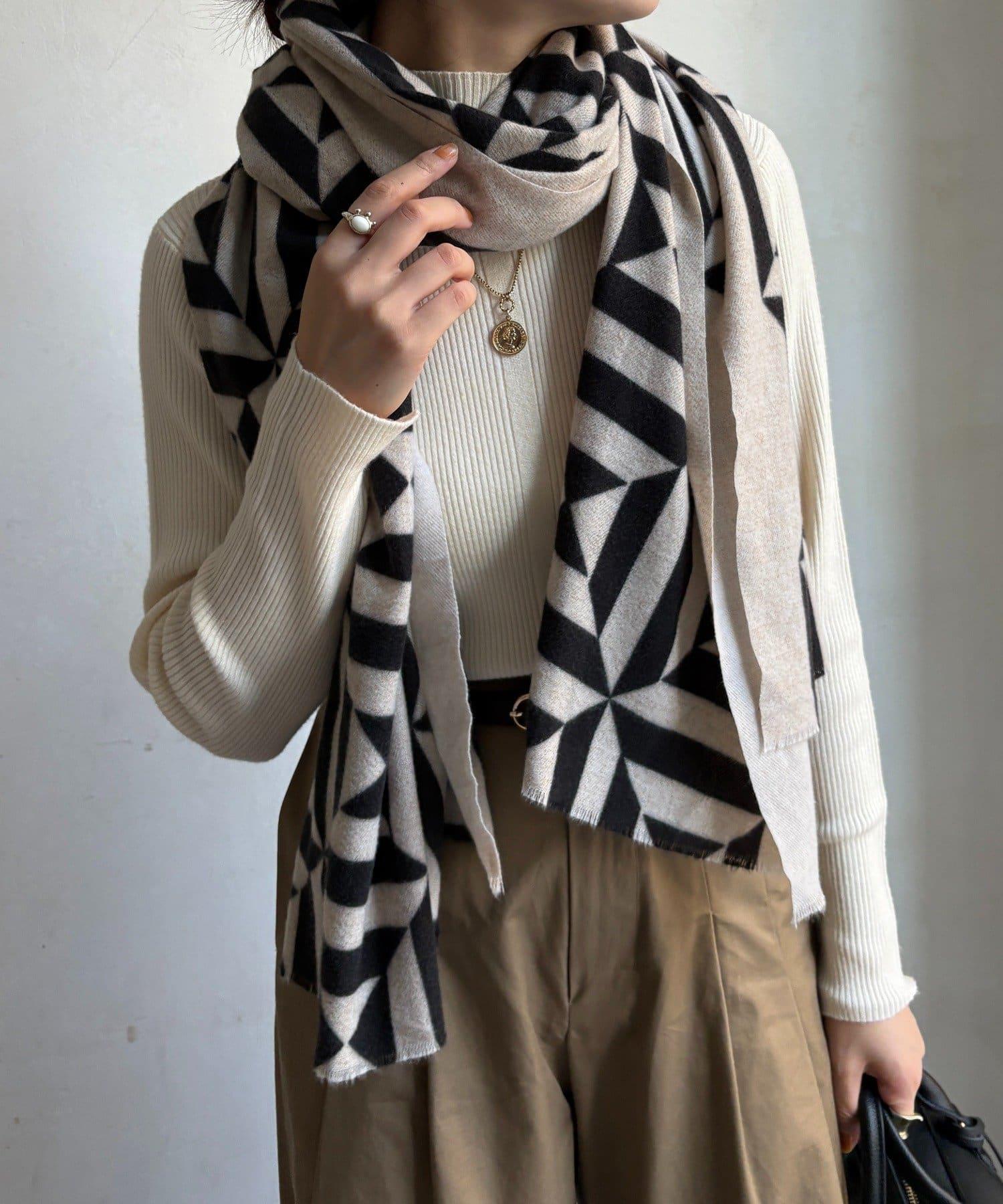 幾何印花圍巾為您的日常風格增添了微妙的亮點。