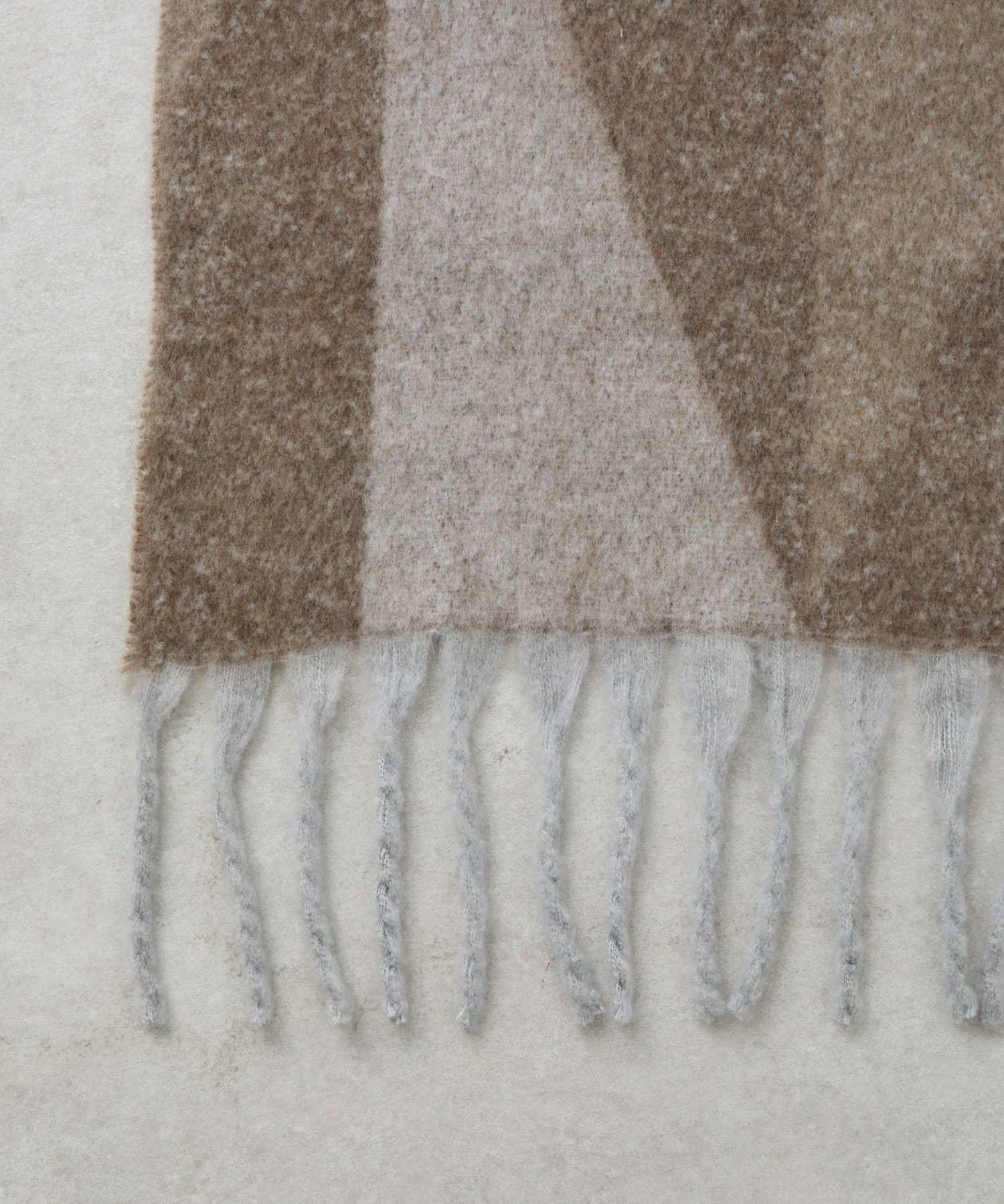 這條流蘇圍巾觸感柔軟,幾何圖案是它的亮點。