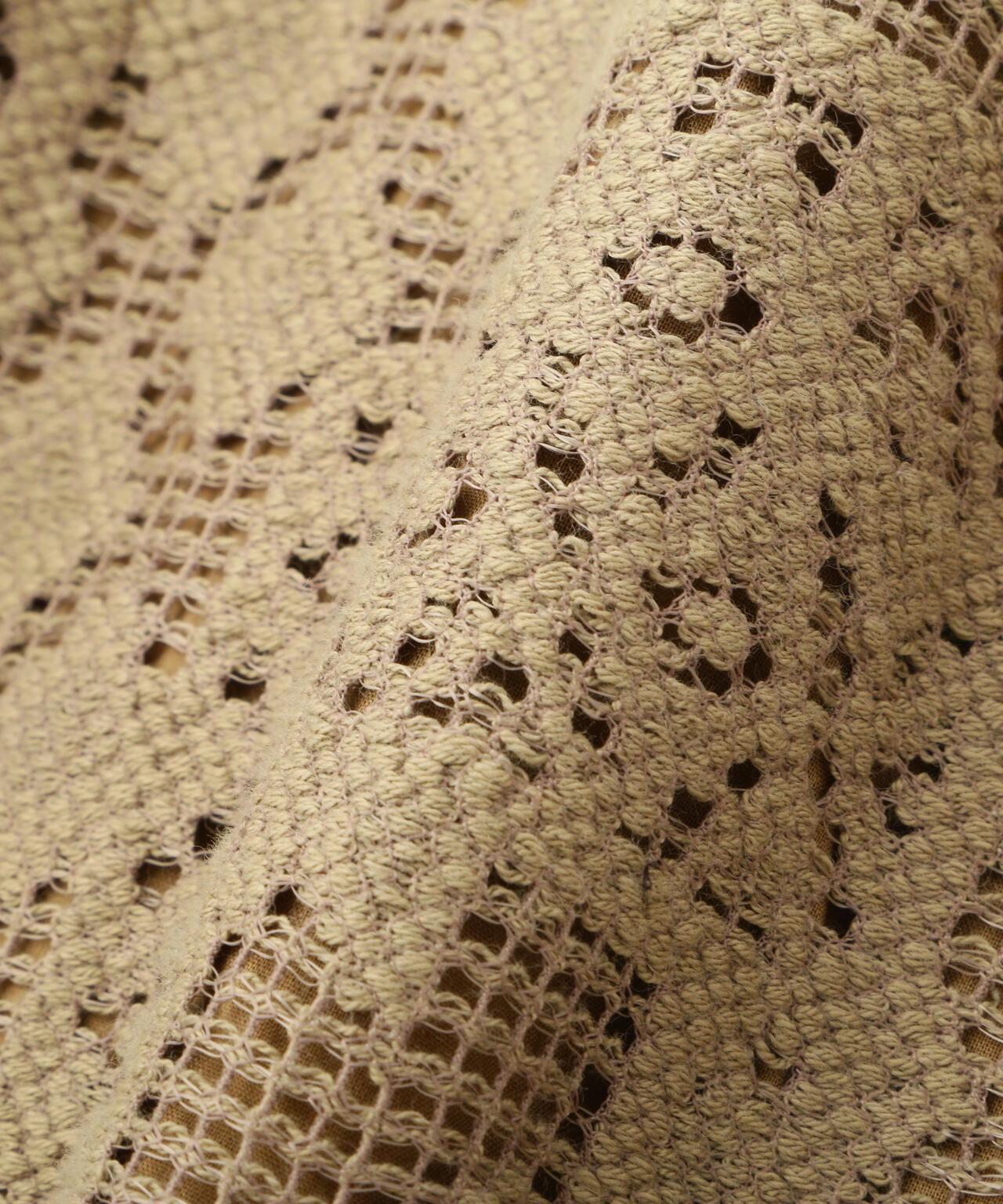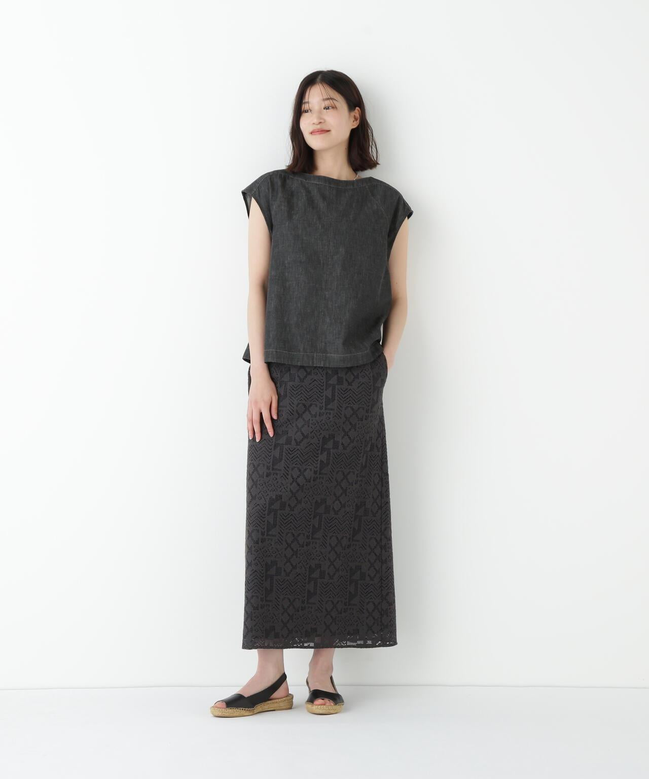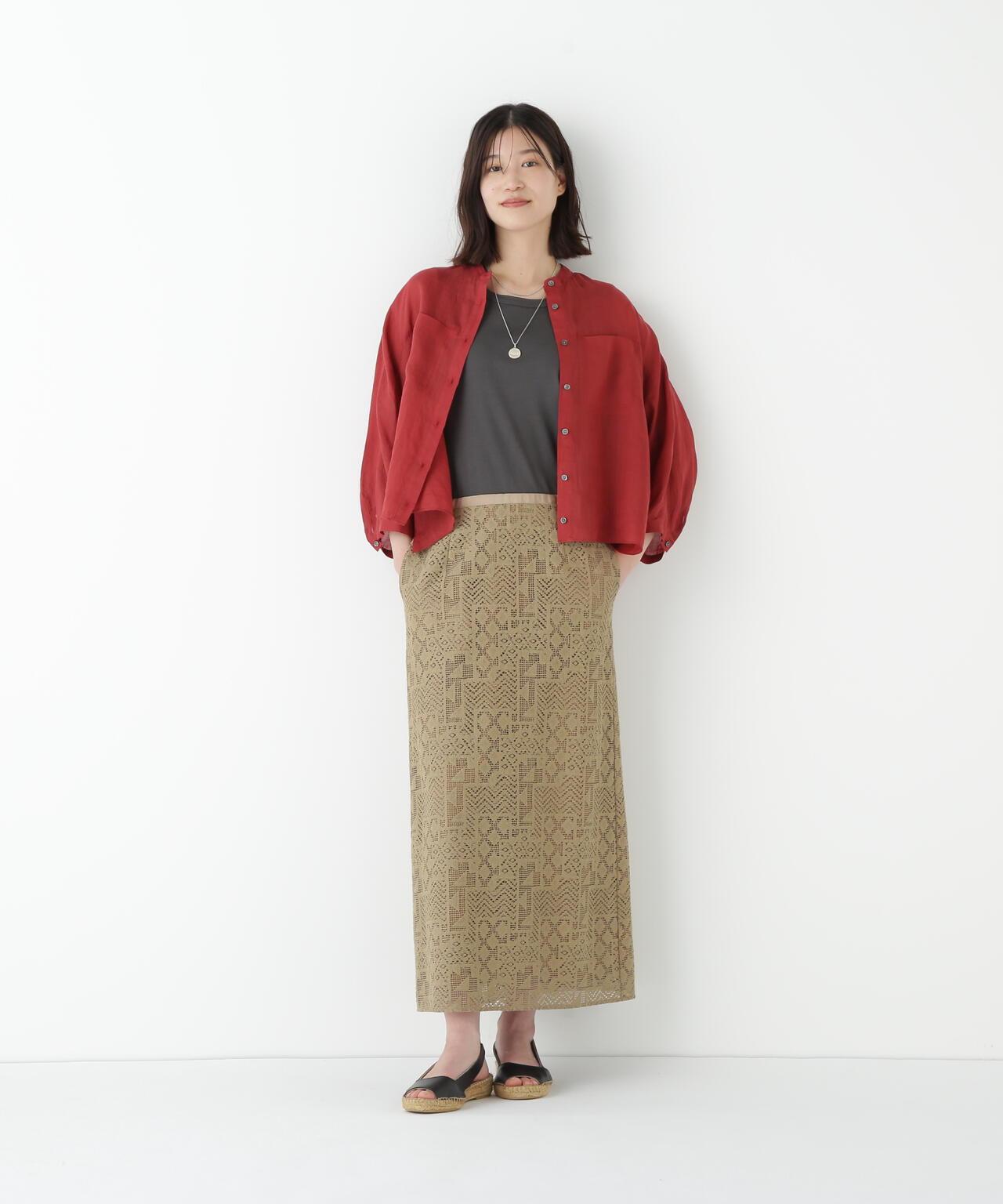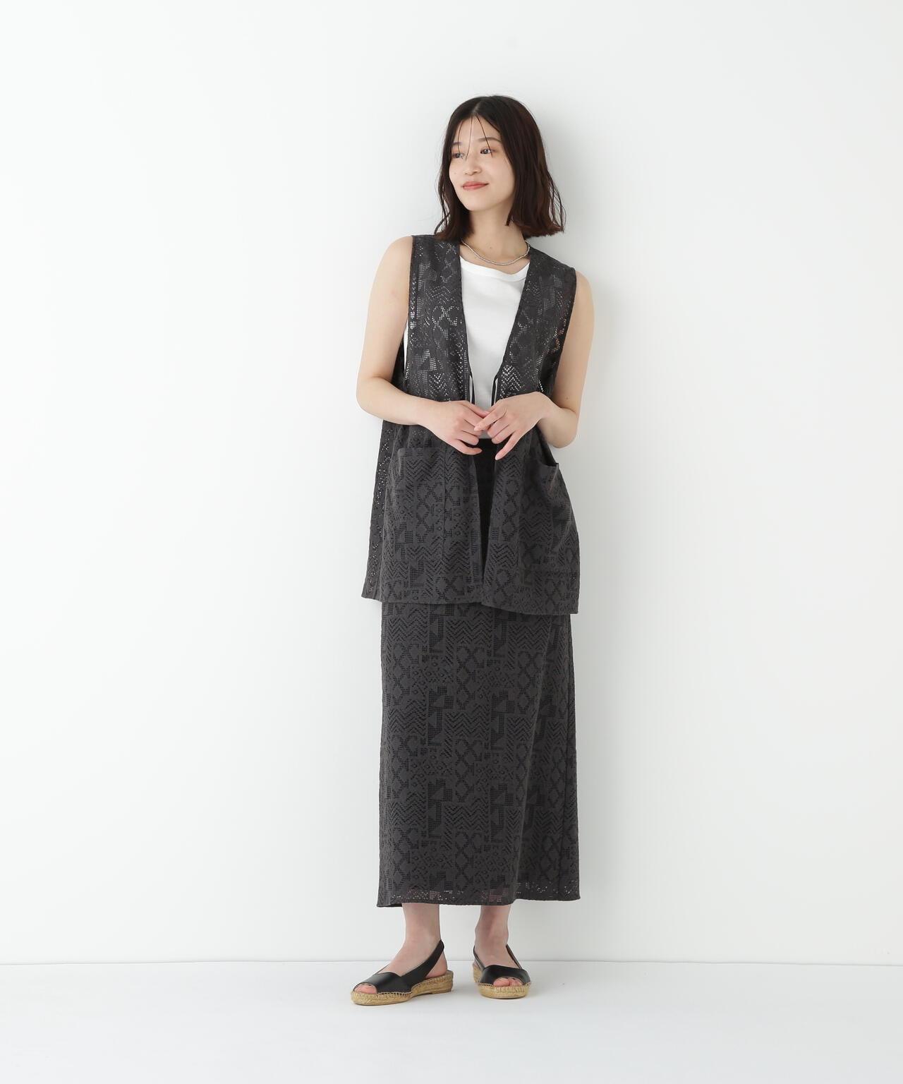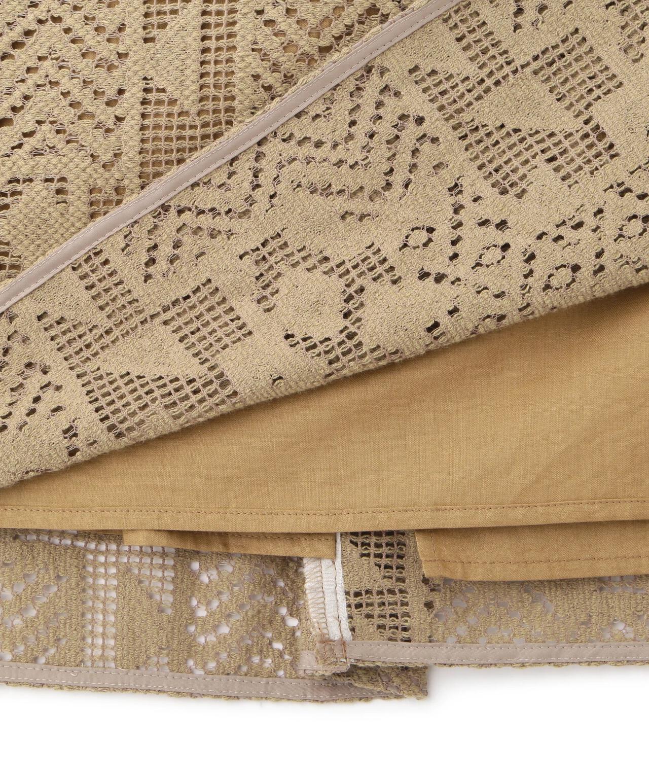 蕾絲裙提升簡約協調性 [設計特色] 直筒輪廓的簡約蕾絲裙。腰部的羅緞絲帶和前後的鬆緊帶使其易於穿著,不會有束縛感。裙子由幾何圖案的拉舍爾蕾絲與棉和聚酯纖維製成。這款蕾絲裙可搭配休閒單品,也可搭配簡單的上衣。搭配涼鞋,給人感覺更輕盈。此外,還建議搭配同種面料的外套。