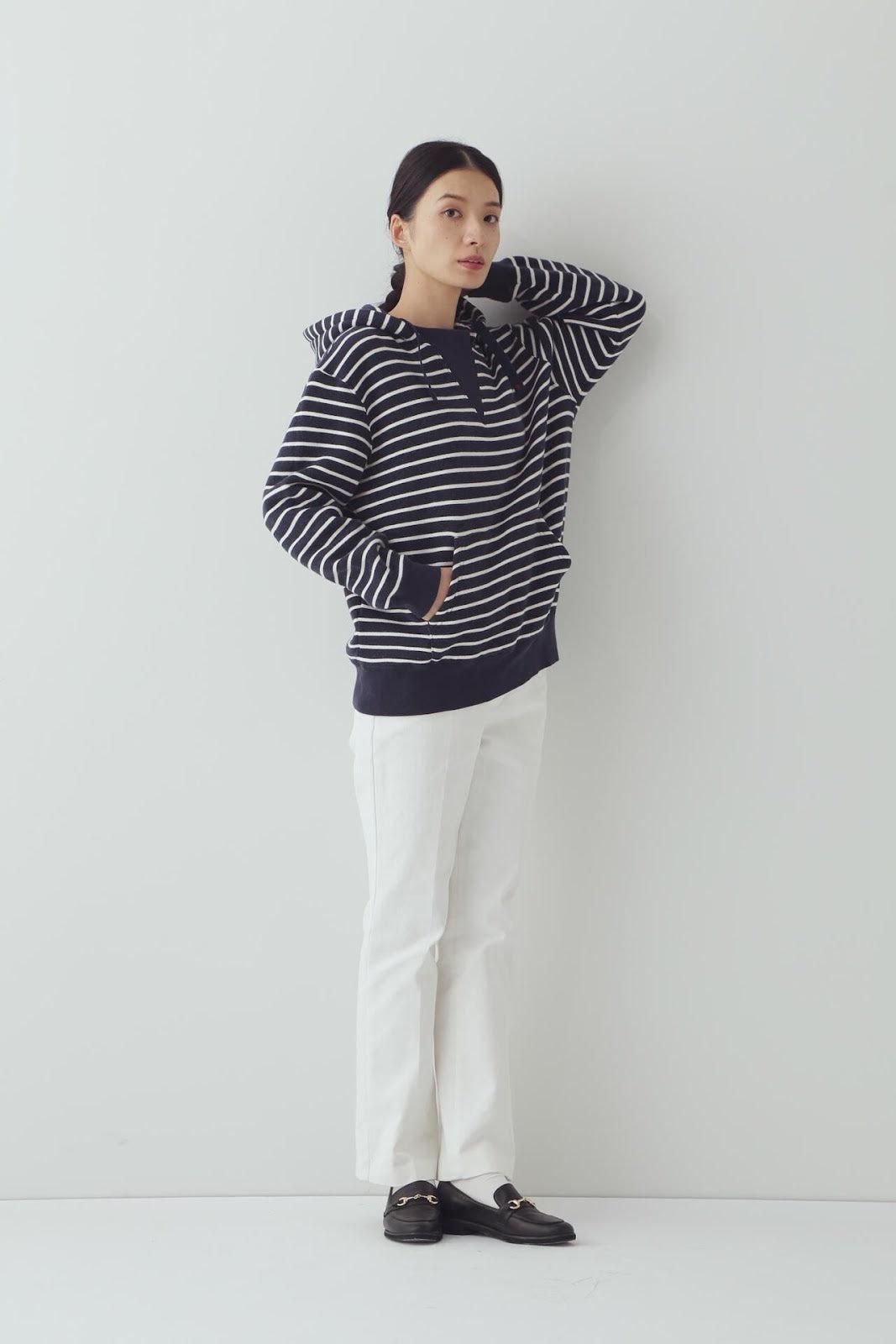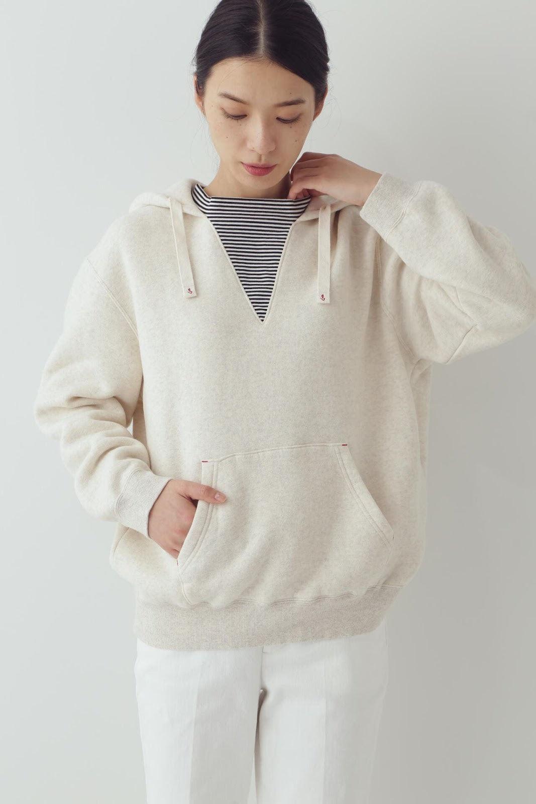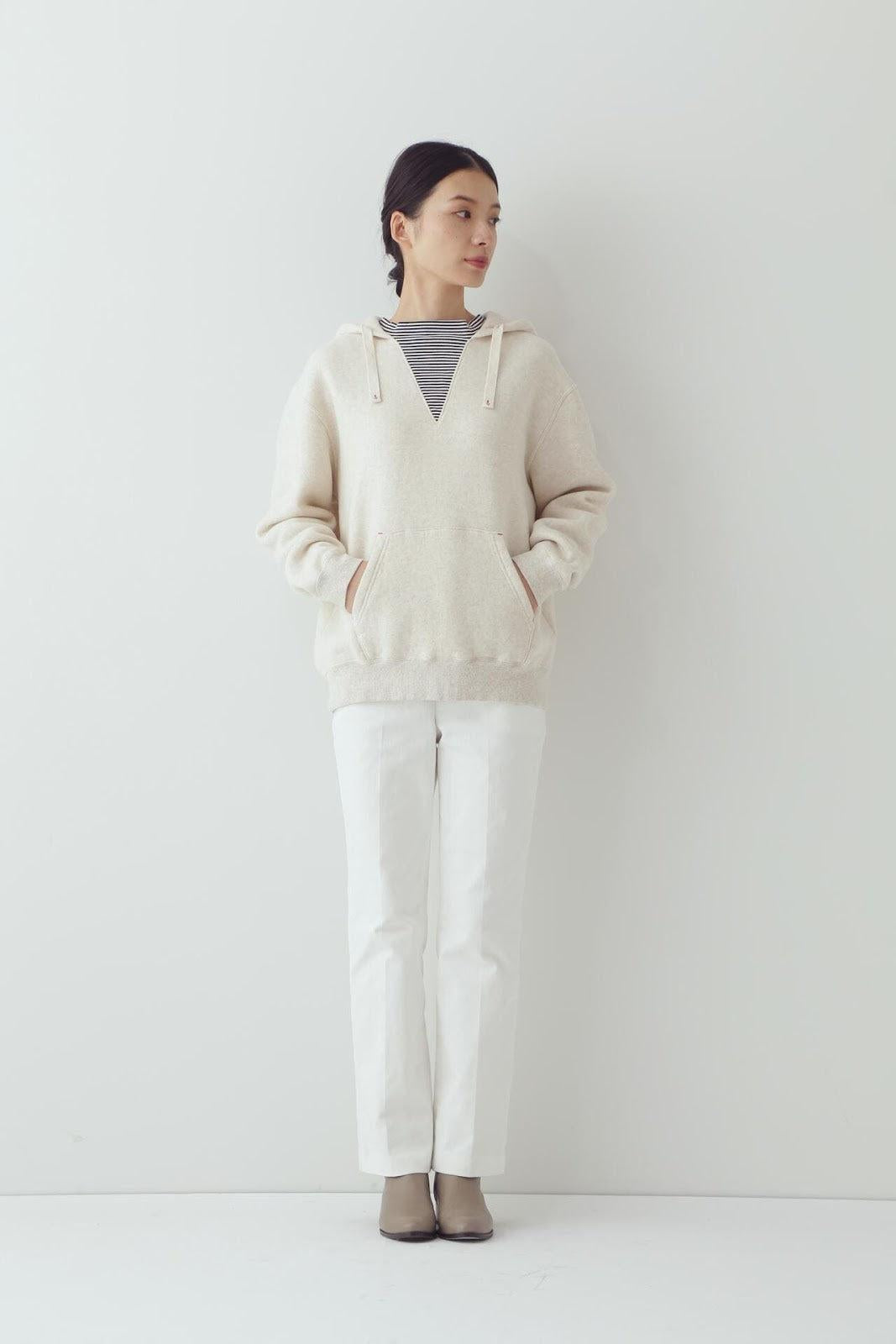 這款商品是與法國海洋品牌 "NATIC "合作推出的,該品牌在人類女性中也很受歡迎。設計要點] 連帽衫型套頭衫的前方出現磨邊,彷彿是 "NATIC "的寶石。在穿過連帽衫的帶子末端,獨創的 NATIC 刺繡也是一個亮點。面料採用柔軟的纖維素棉紗針織而成,表現出質感良好的膨鬆雙面針織面料。去年大受歡迎的運動衫今年推出了連帽衫。這款單品很容易與任何下裝搭配。natic] na = 海軍,t = 技術,i = 創新。