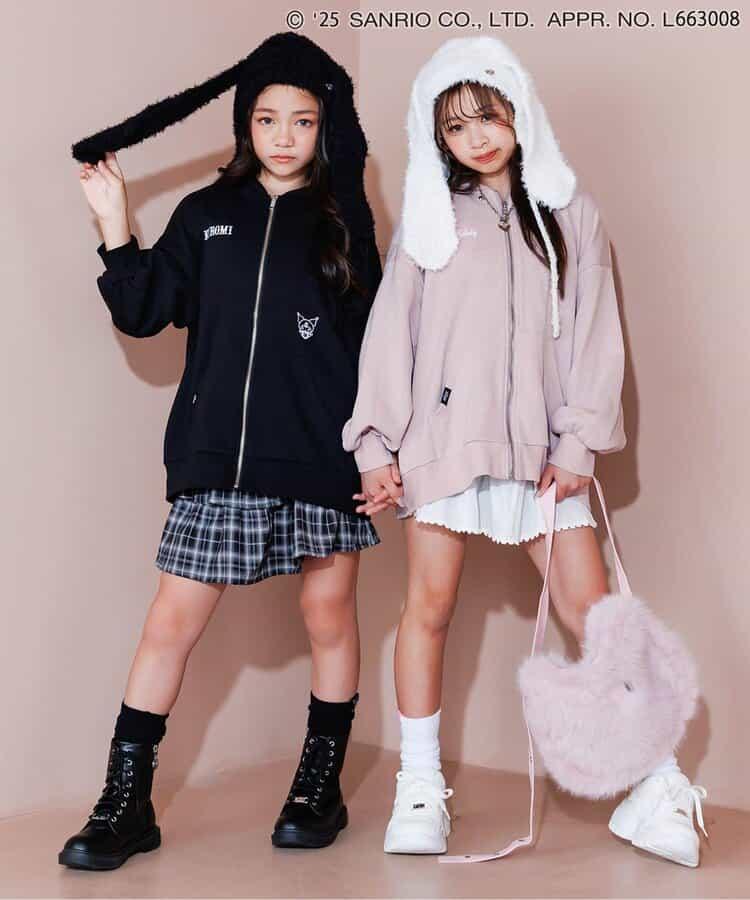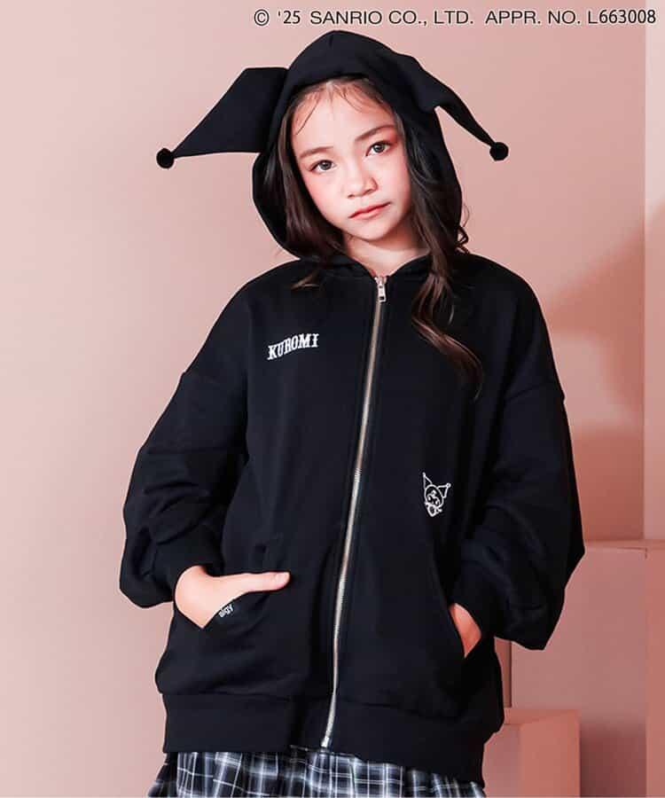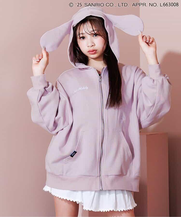 兜帽上可愛的耳朵印有 My Melody 和 Kuromi 的圖案。