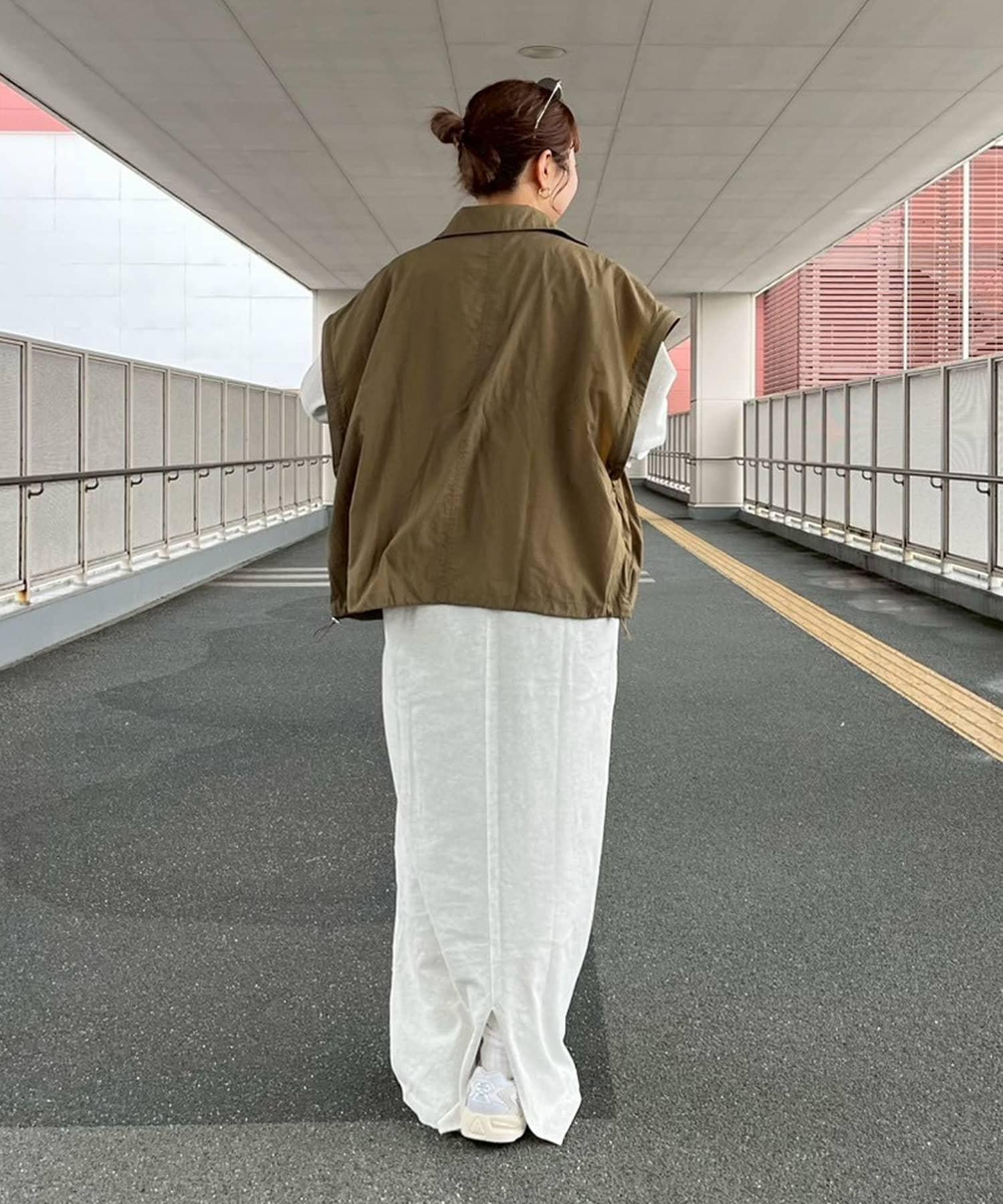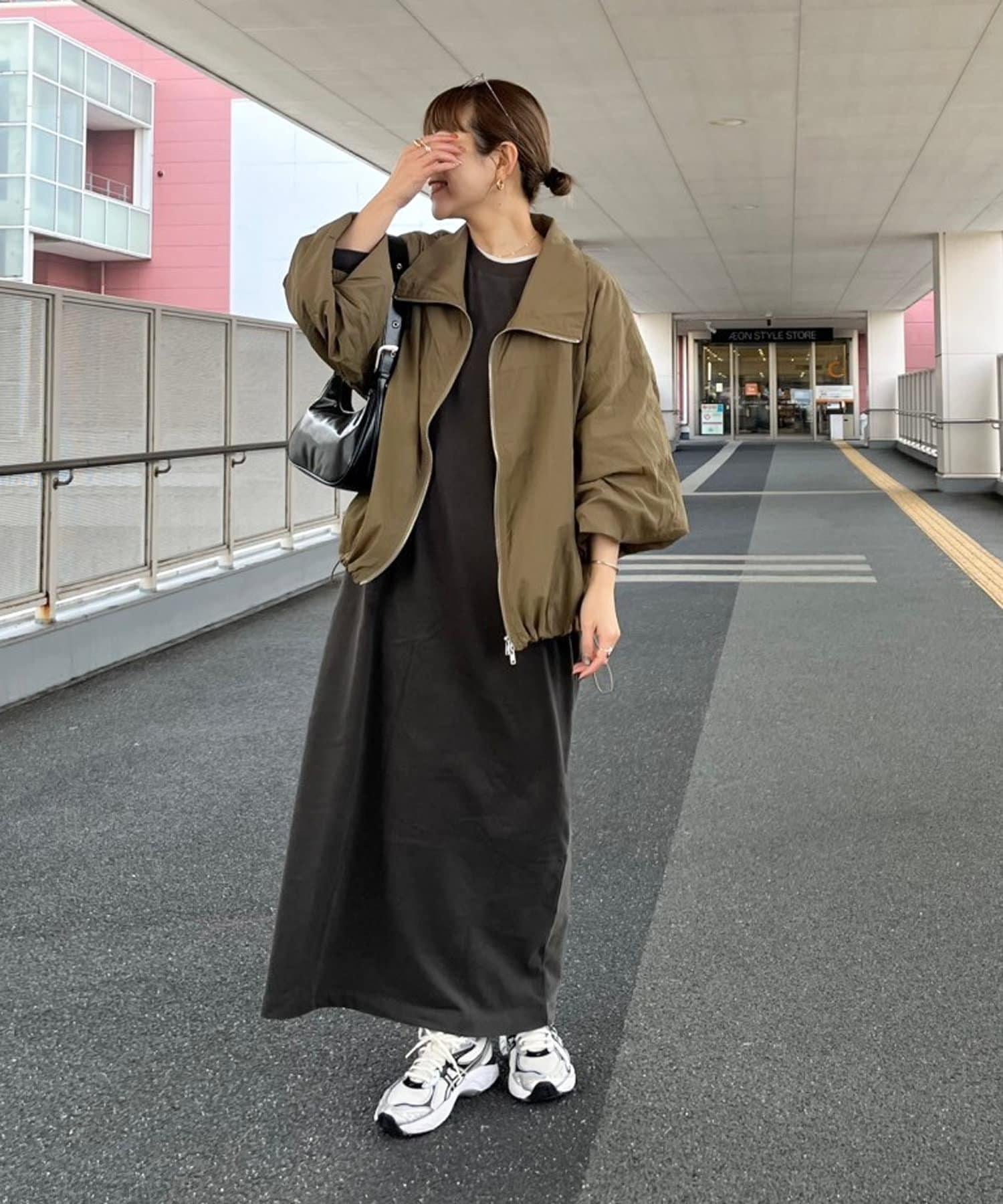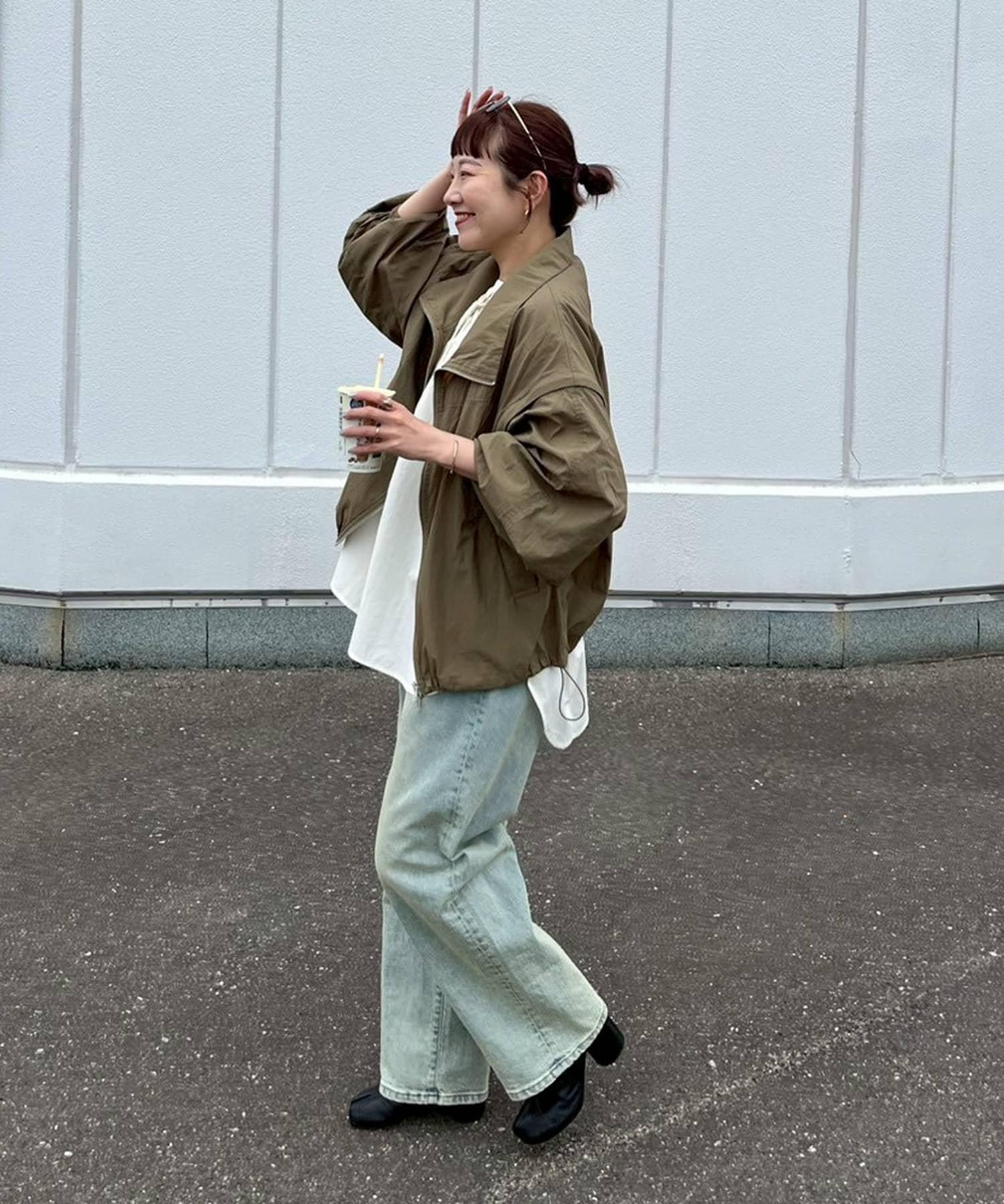 雙拉鍊設計可以輕鬆營造寬鬆感,也是可以選擇任意下裝搭配的要點。