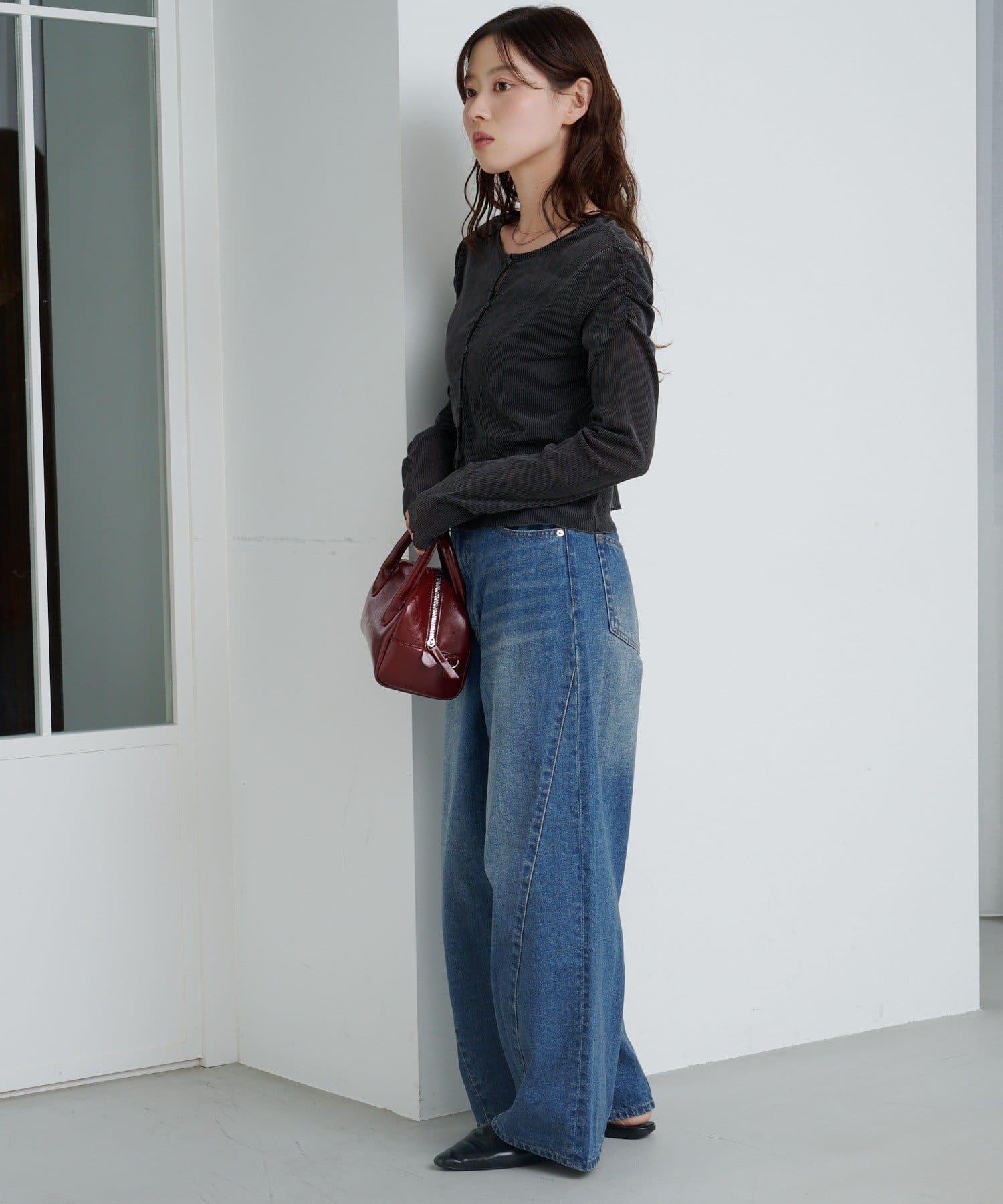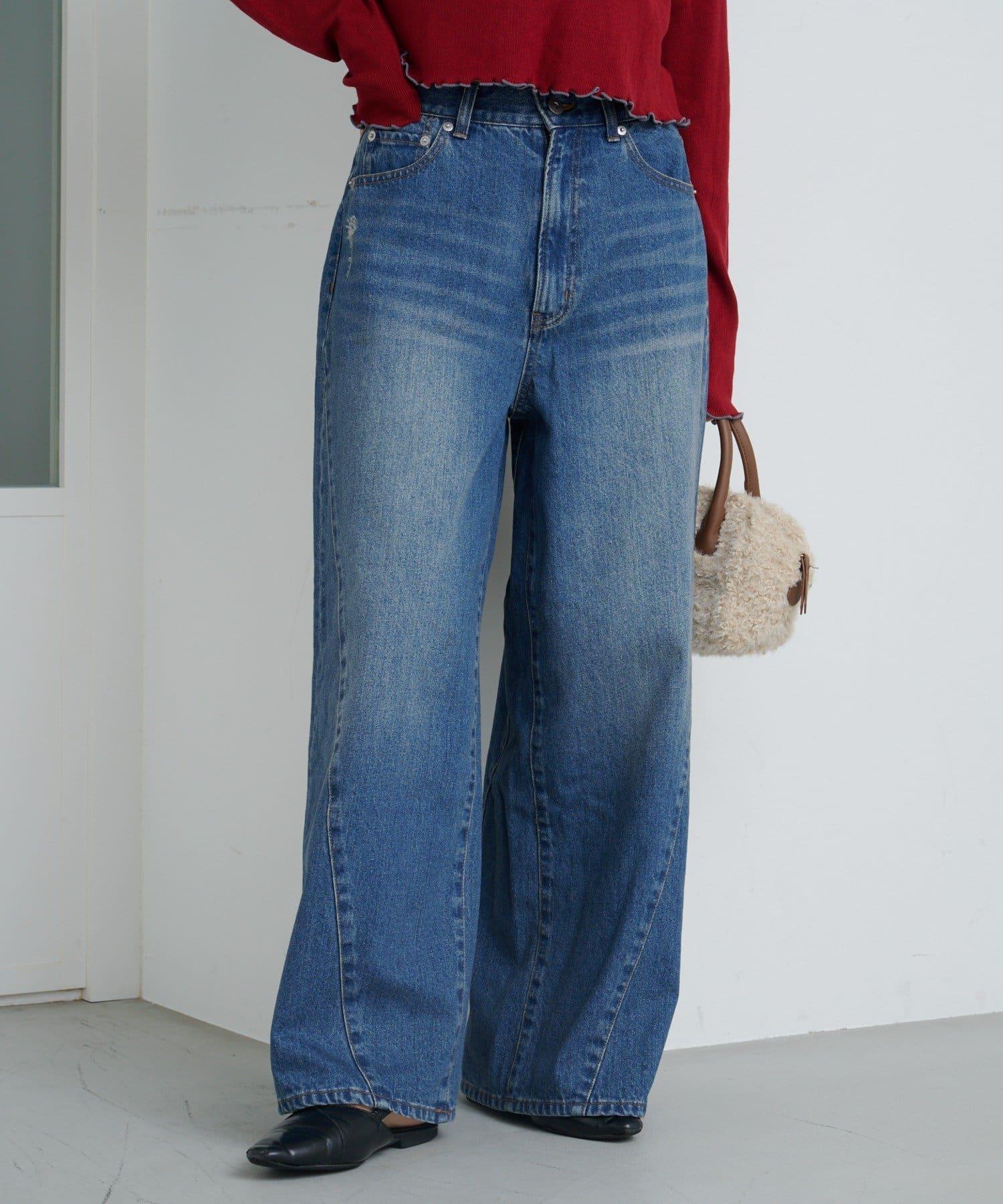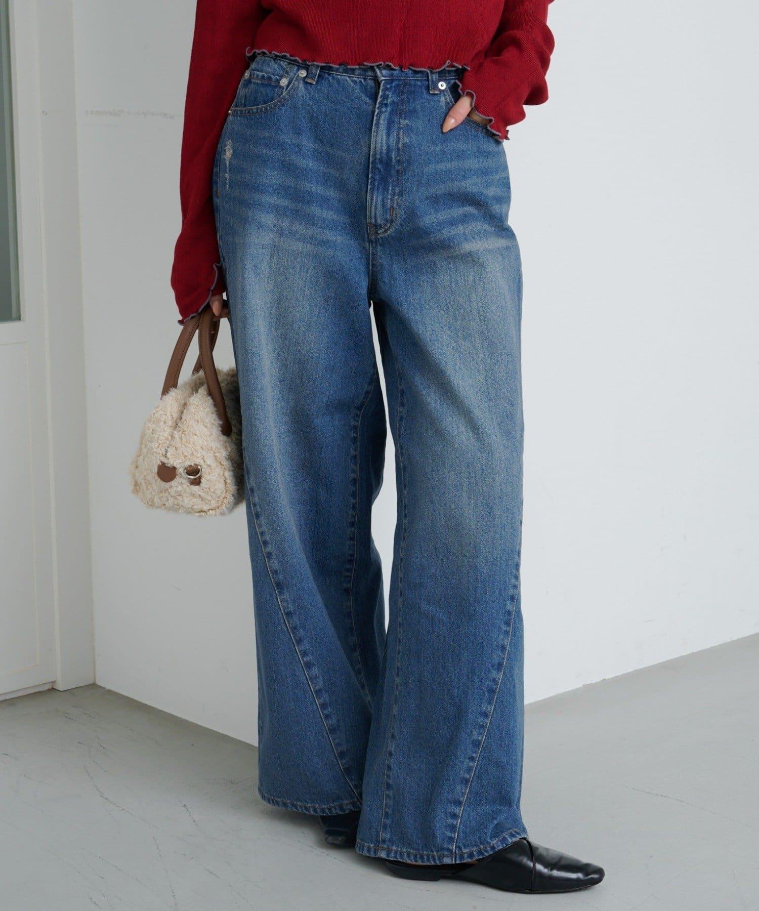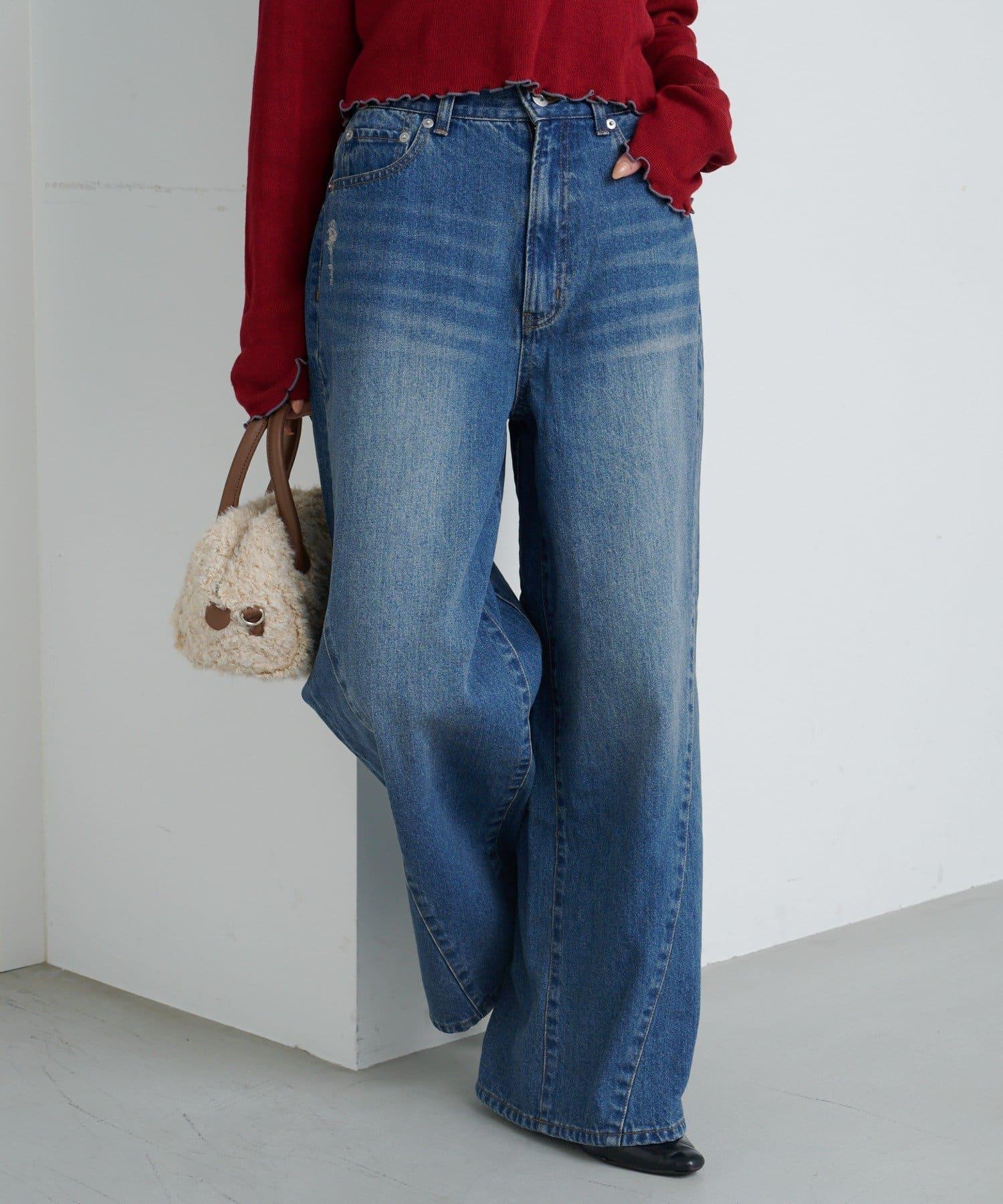 牛仔長褲採用時尚的寬大版型和立體弧形縫線,盡顯非凡氣質。