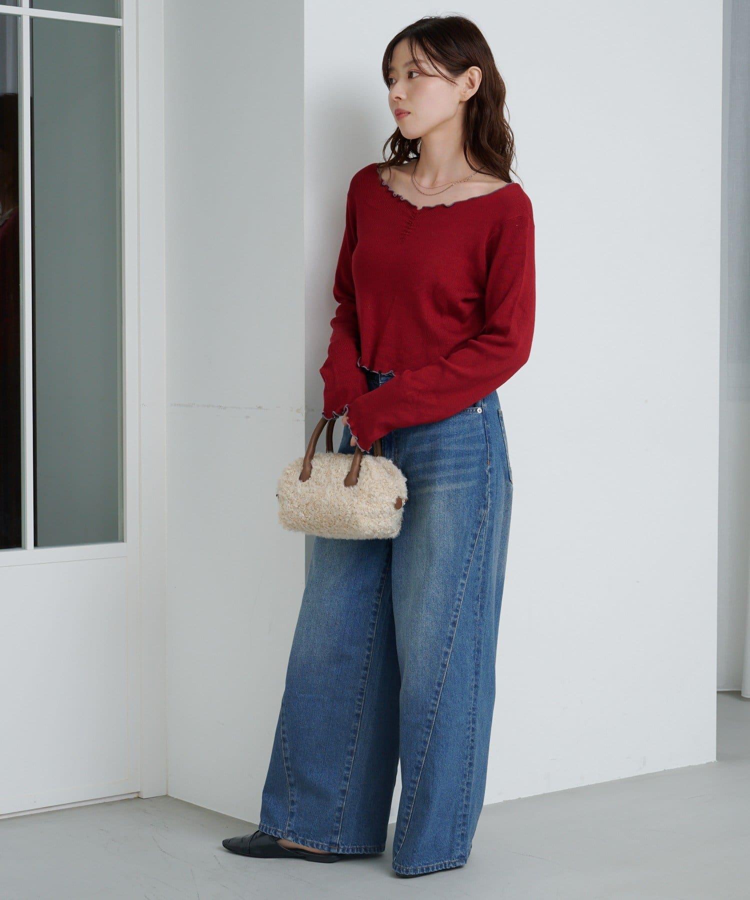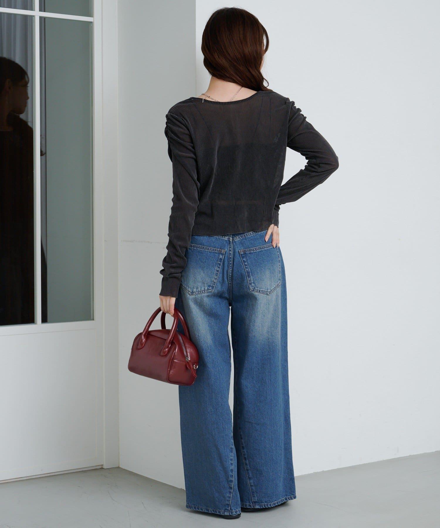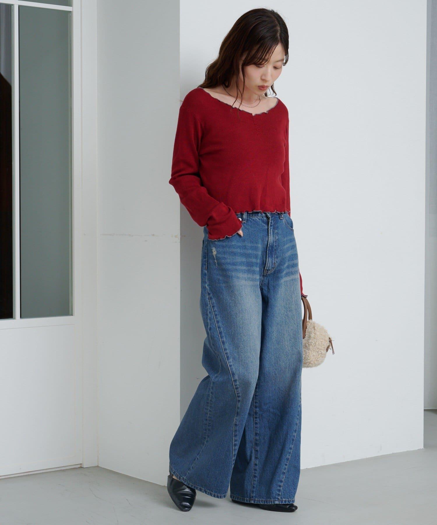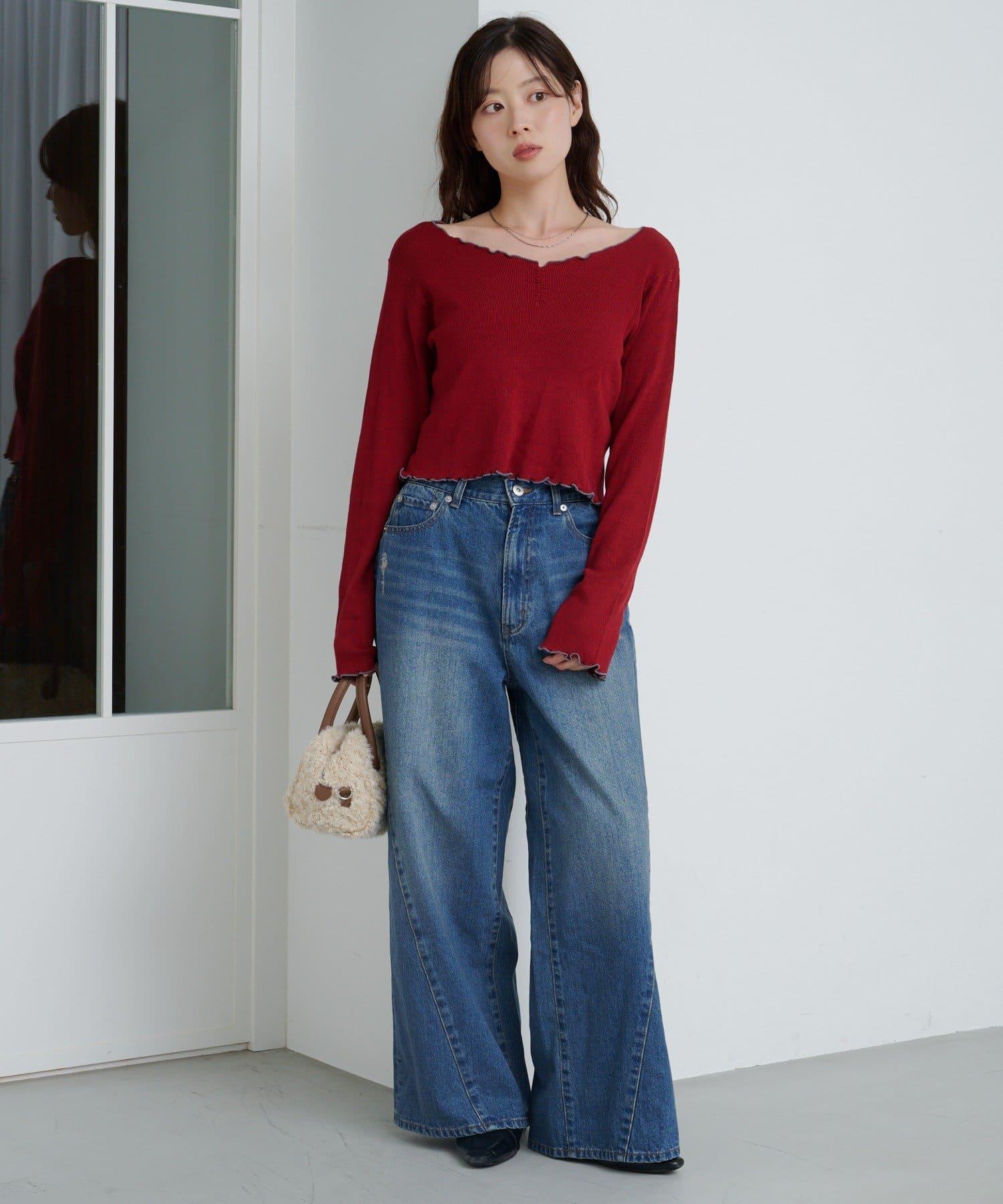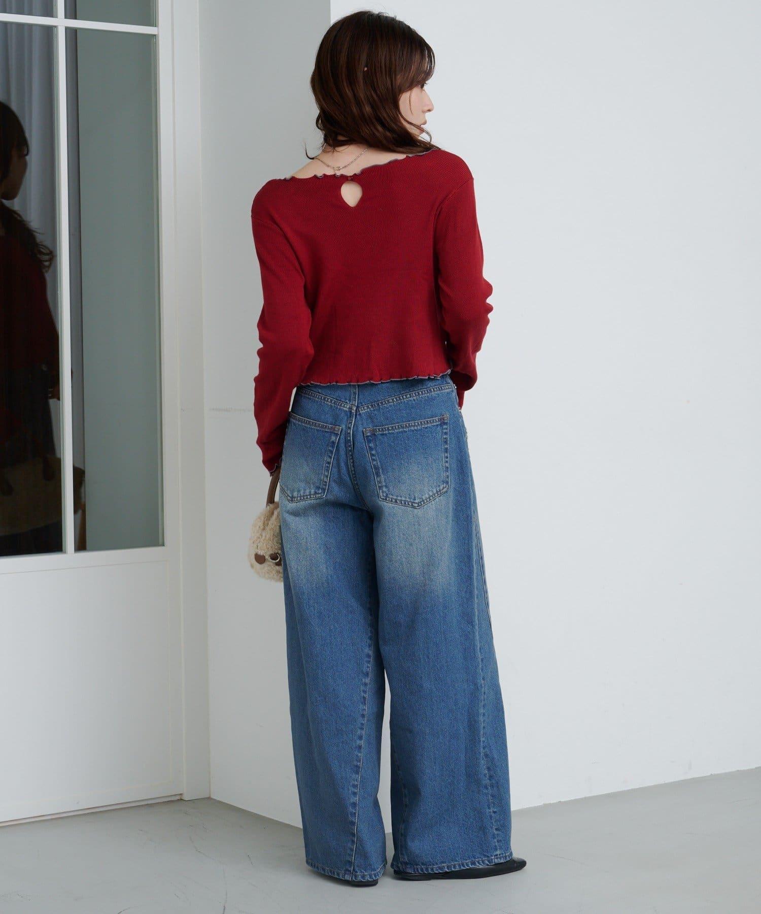 牛仔長褲採用時尚的寬大版型和立體弧形縫線,盡顯非凡氣質。