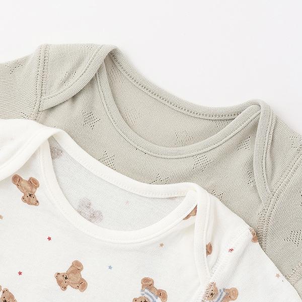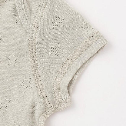 兩件套上有各種形狀的針刺圖案和全身印花。