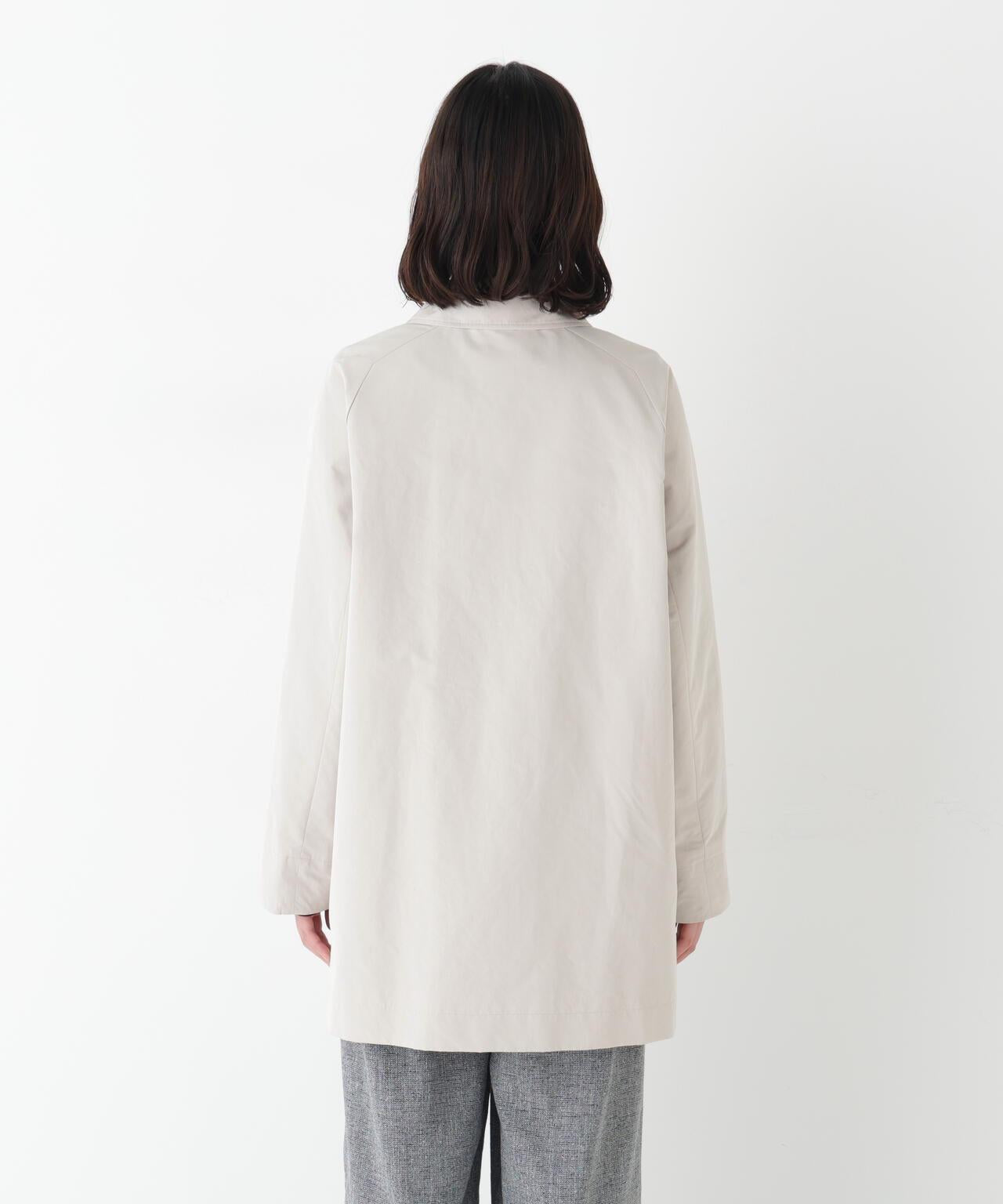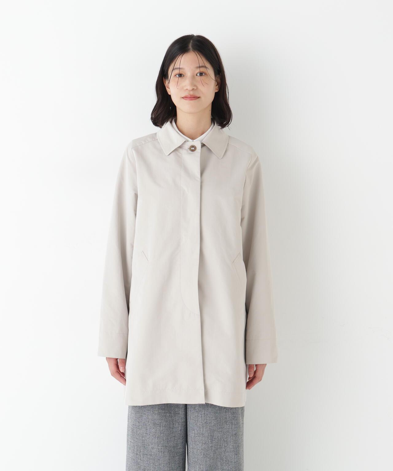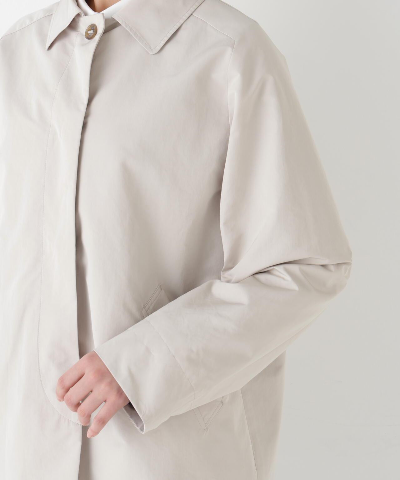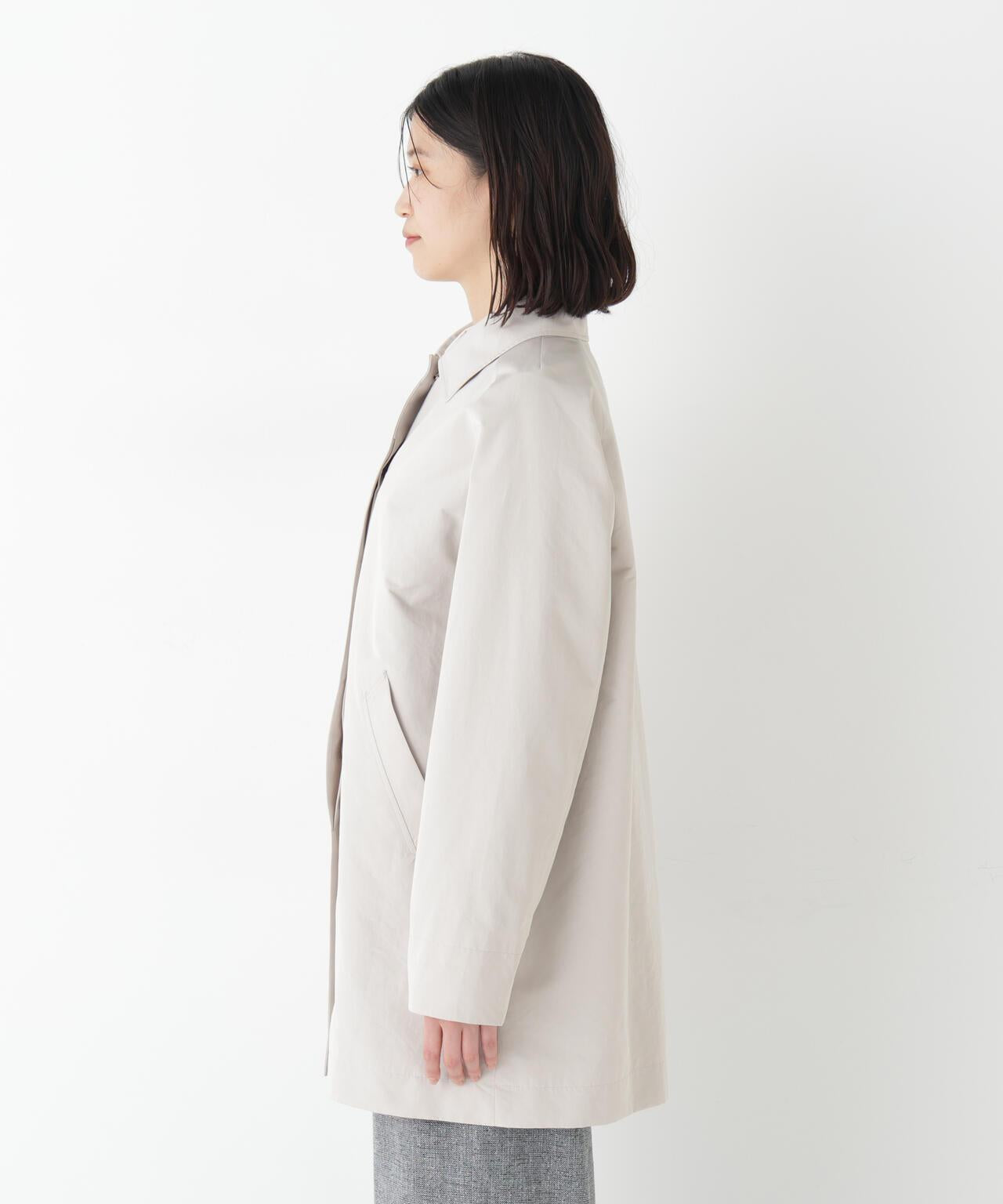 多功能不鏽鋼領大衣,適合日常穿著 [設計要點] 這是一款簡潔的不鏽鋼領大衣,採用輕質材料製成,並配有襯裡。傘扣和背面的條紋圖案是設計要點。袖口沒有打開,但可以向後翻轉,翻轉幅度較深。這種具有弱防水功能的塔夫綢面料由回收的聚酯纖維和有機棉編織而成。它具有優雅而微妙的光澤。推薦座標] 這款春季百搭大衣的長度不會太長,因此可以搭配任何下身輪廓。