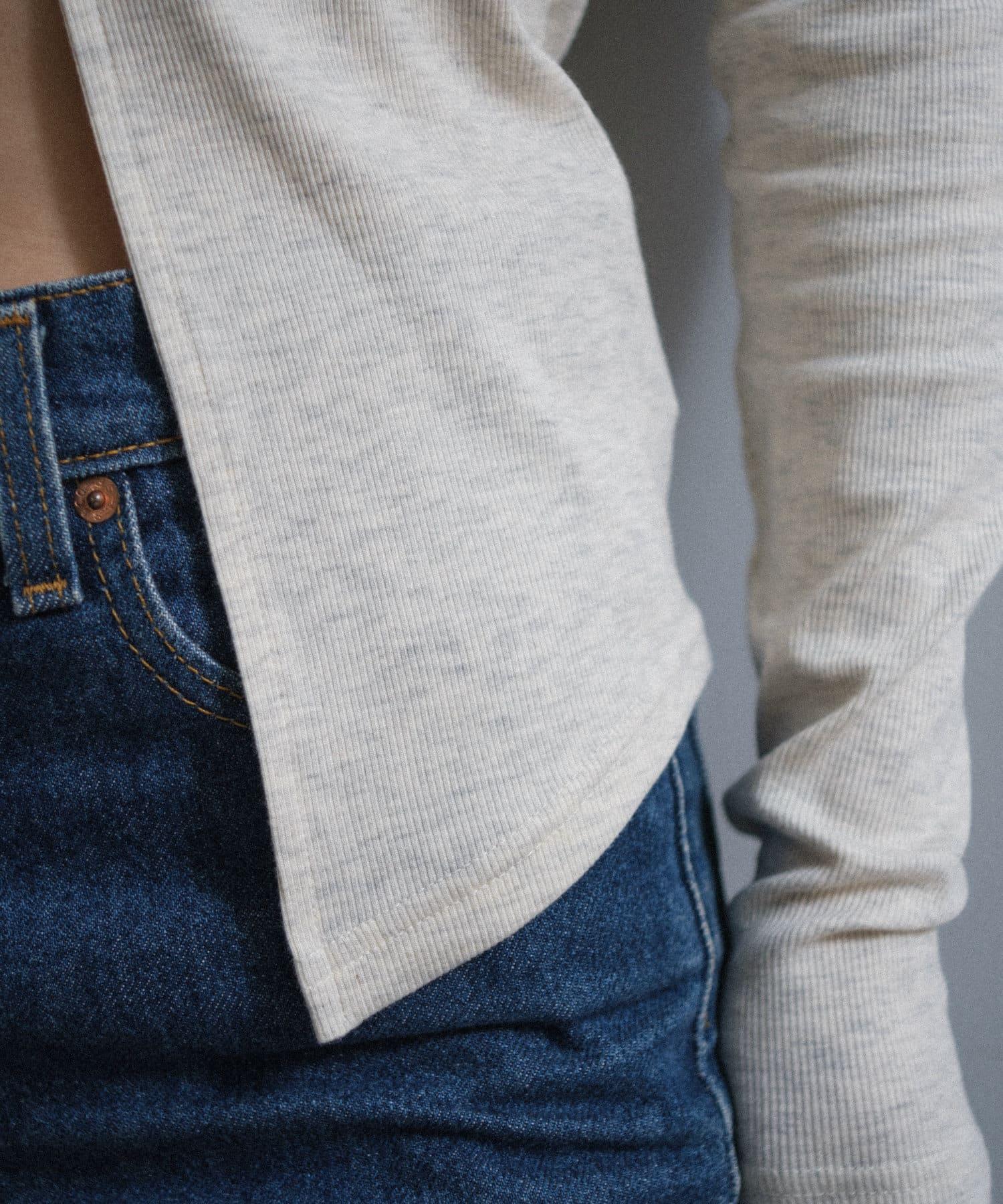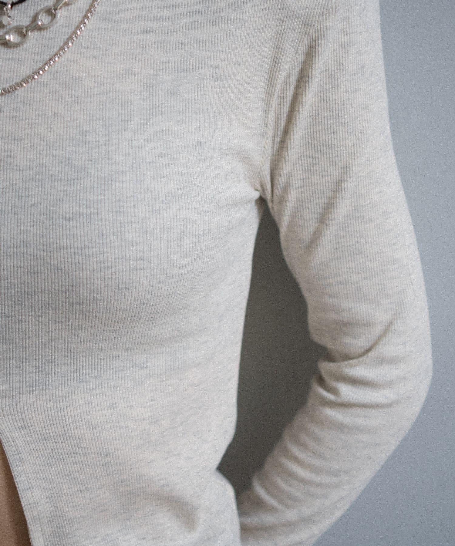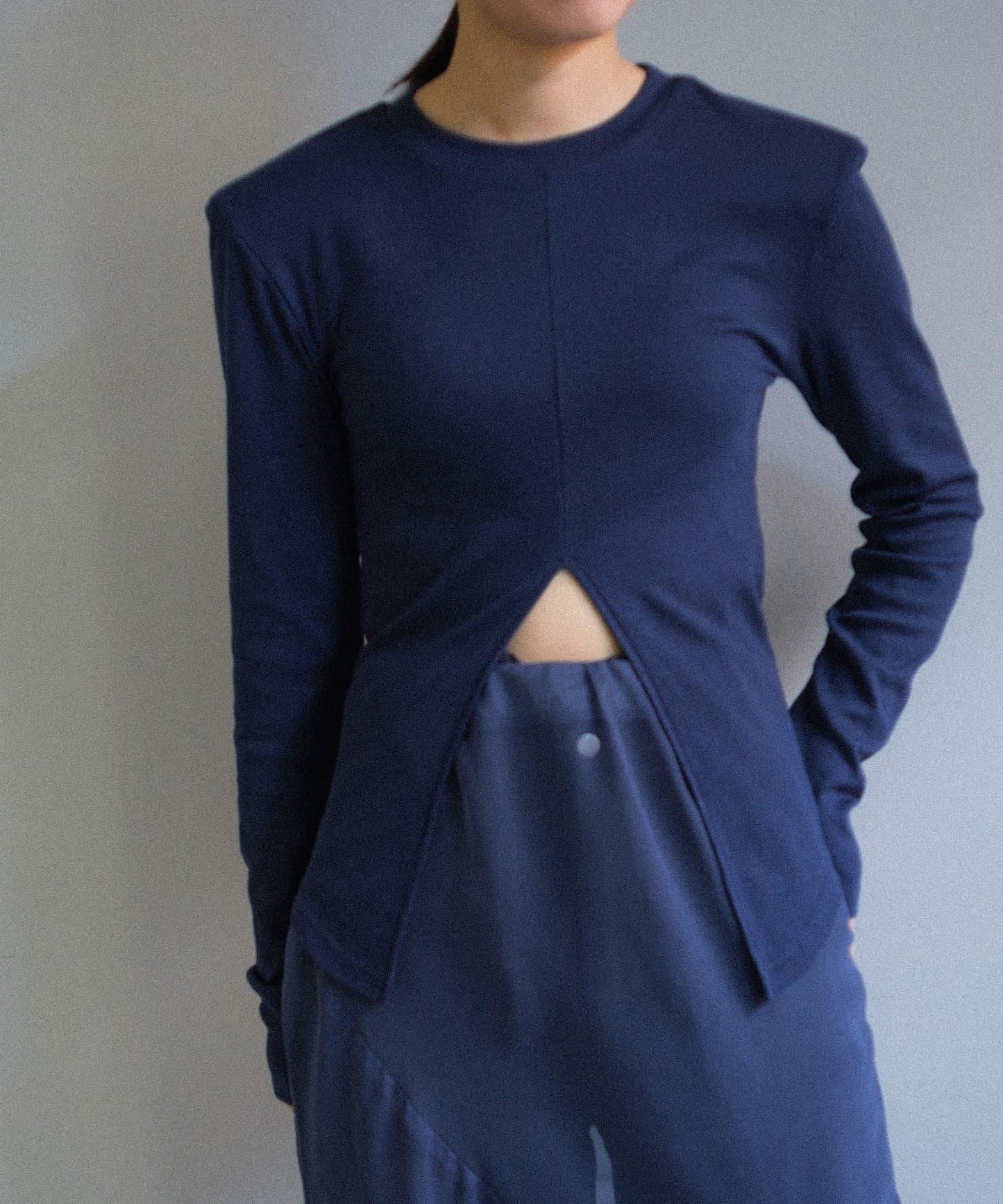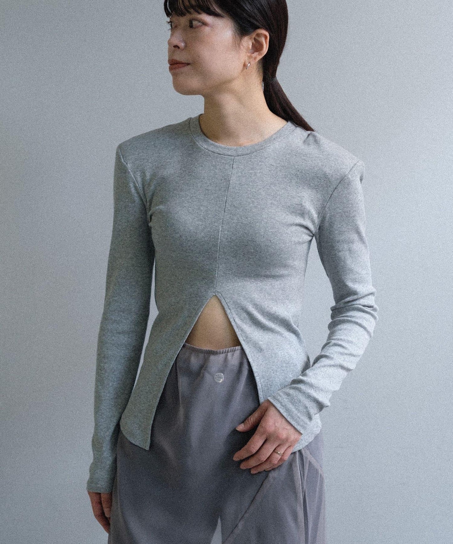 基本款羅紋上衣,內置墊肩。充滿情調的強力墊肩設計為本季呆板的款式注入了新的活力。