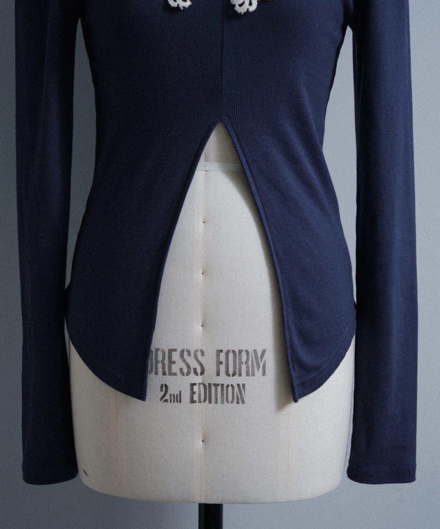 值得注意的一個設計要點是,前中線下襬有一條 27 厘米的深開衩。