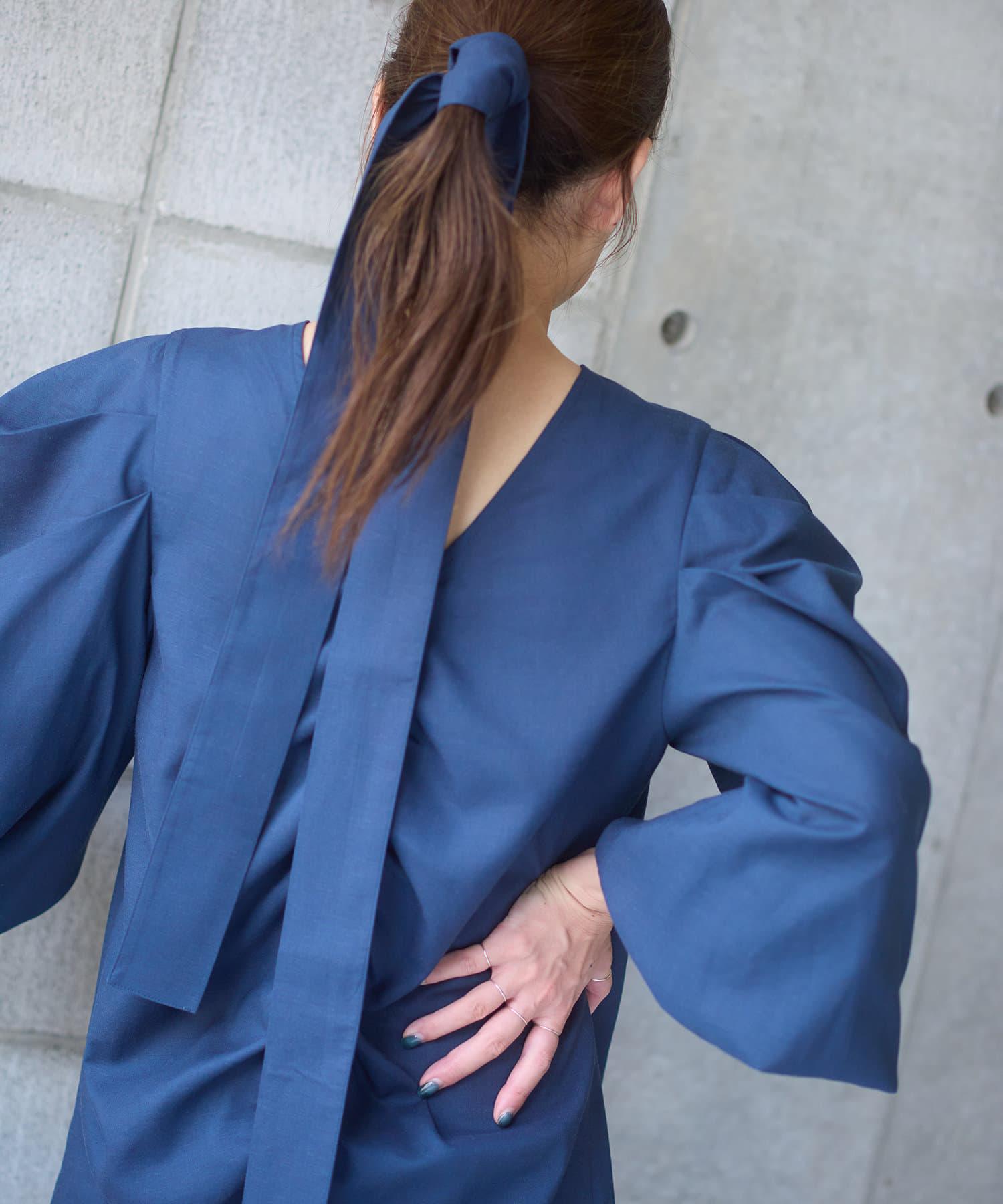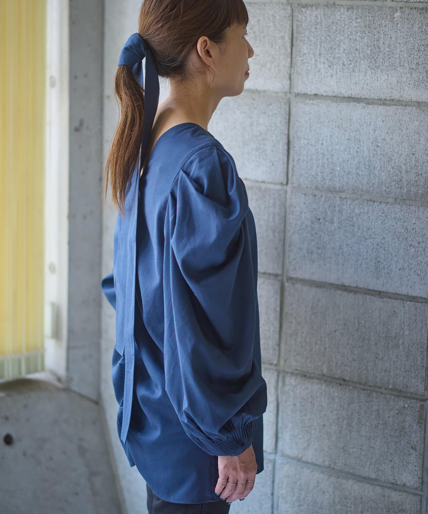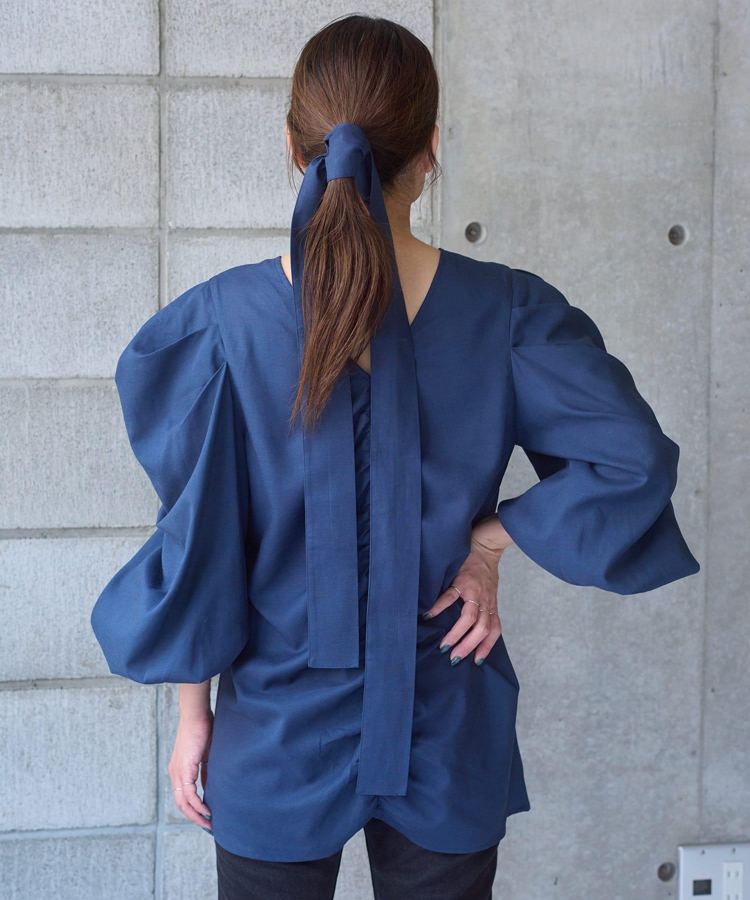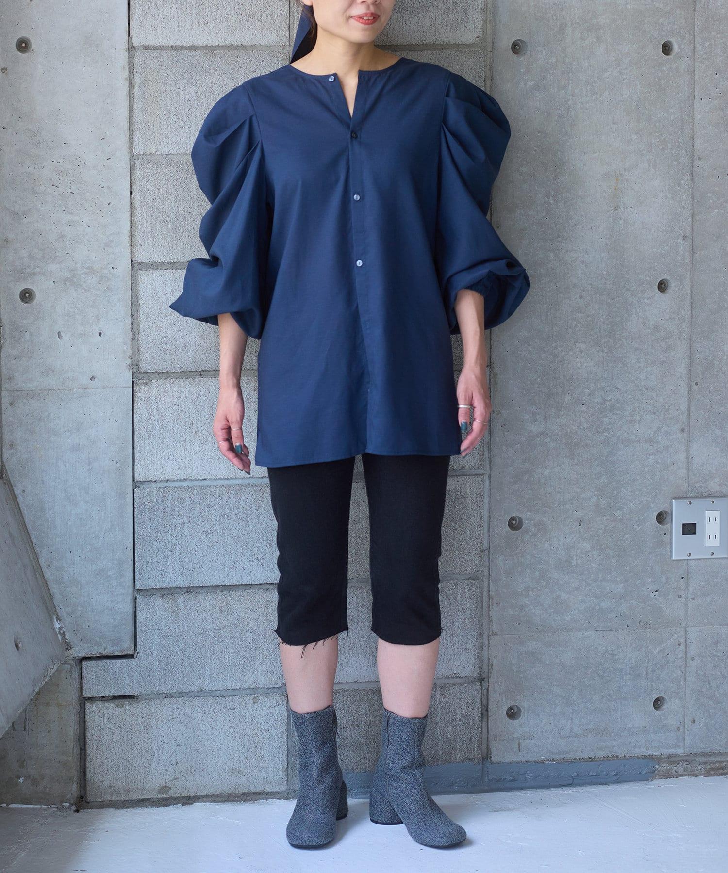 蝴蝶廓形上衣,袖子豐滿,肩部設計大膽有力,讓人心情愉悅。這款上衣兩面都可穿:圓領一面有紐扣開口,V 領一面中間有褶皺。