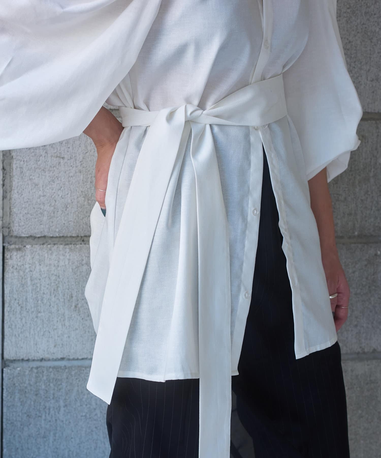 上衣附帶一條 SET 蝴蝶結繫帶,可纏在腰間或脖子上,讓人賞心悅目。