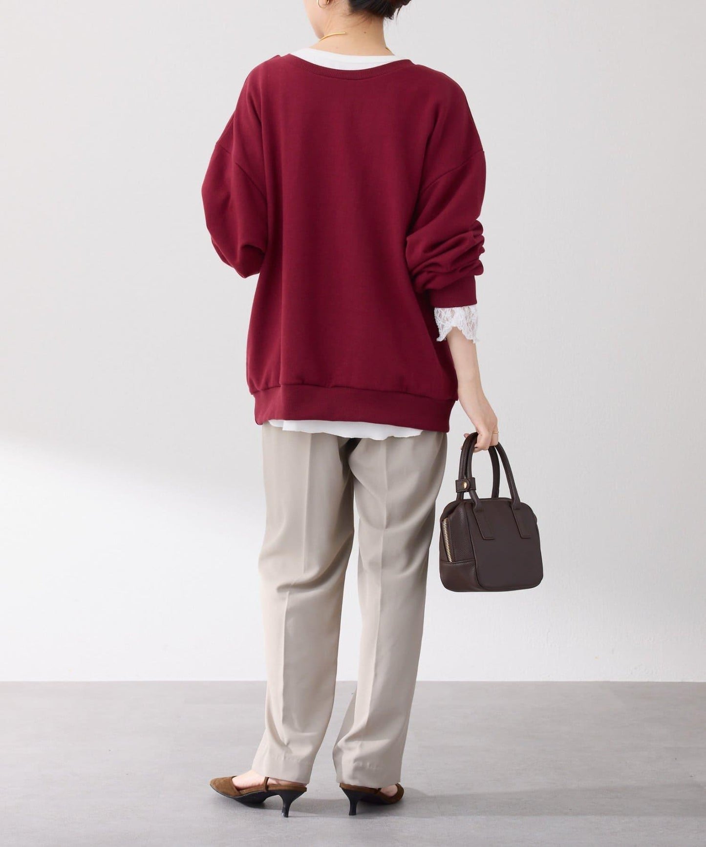 面料略帶光澤感,只需將其與偏向厚重的秋冬裝搭配,就能打造出女性化的造型。