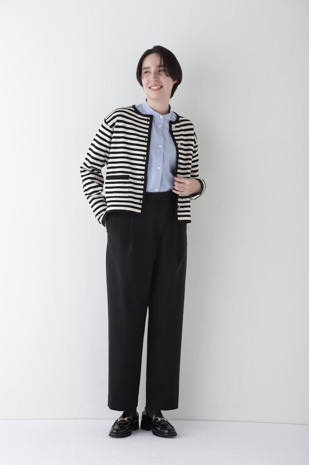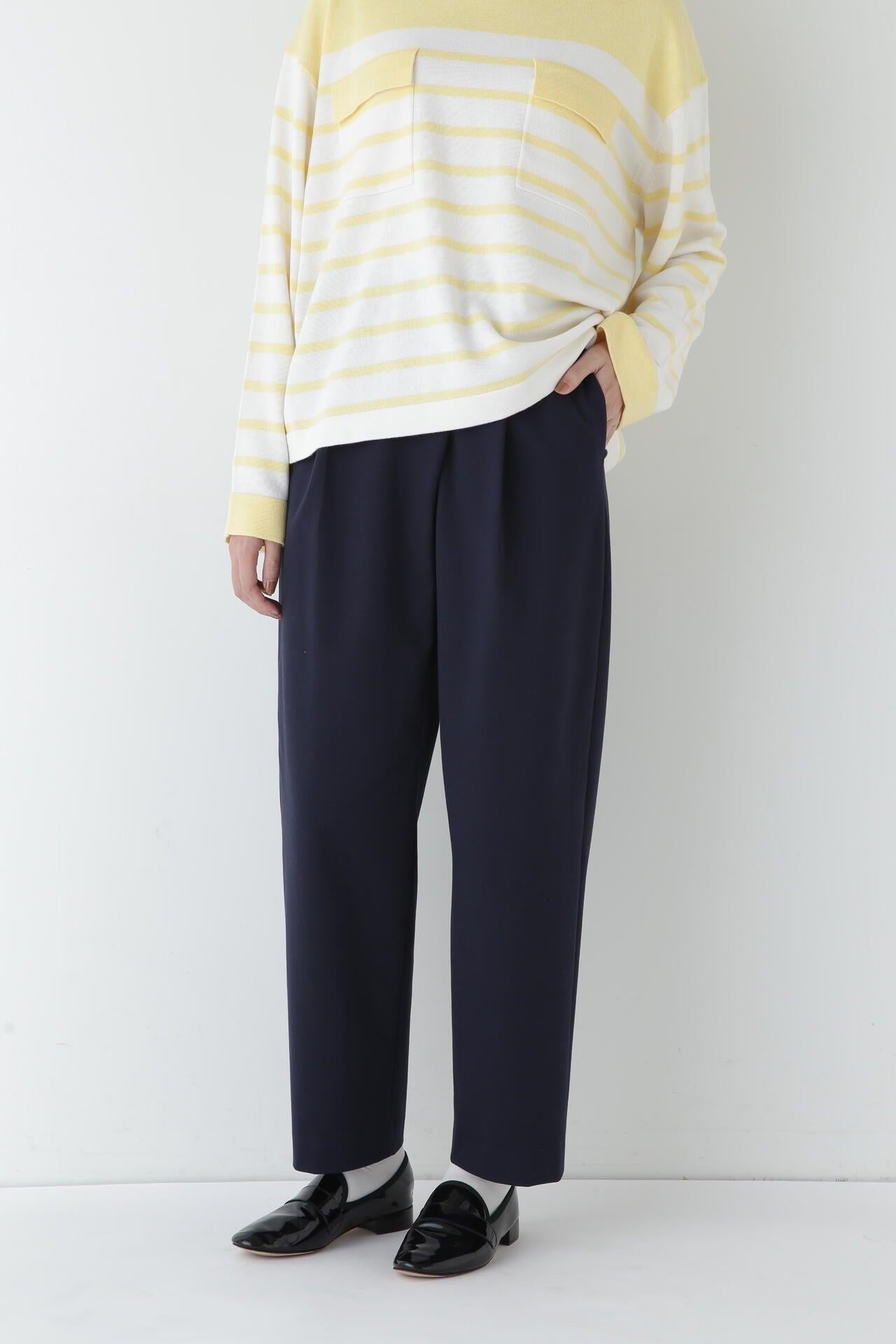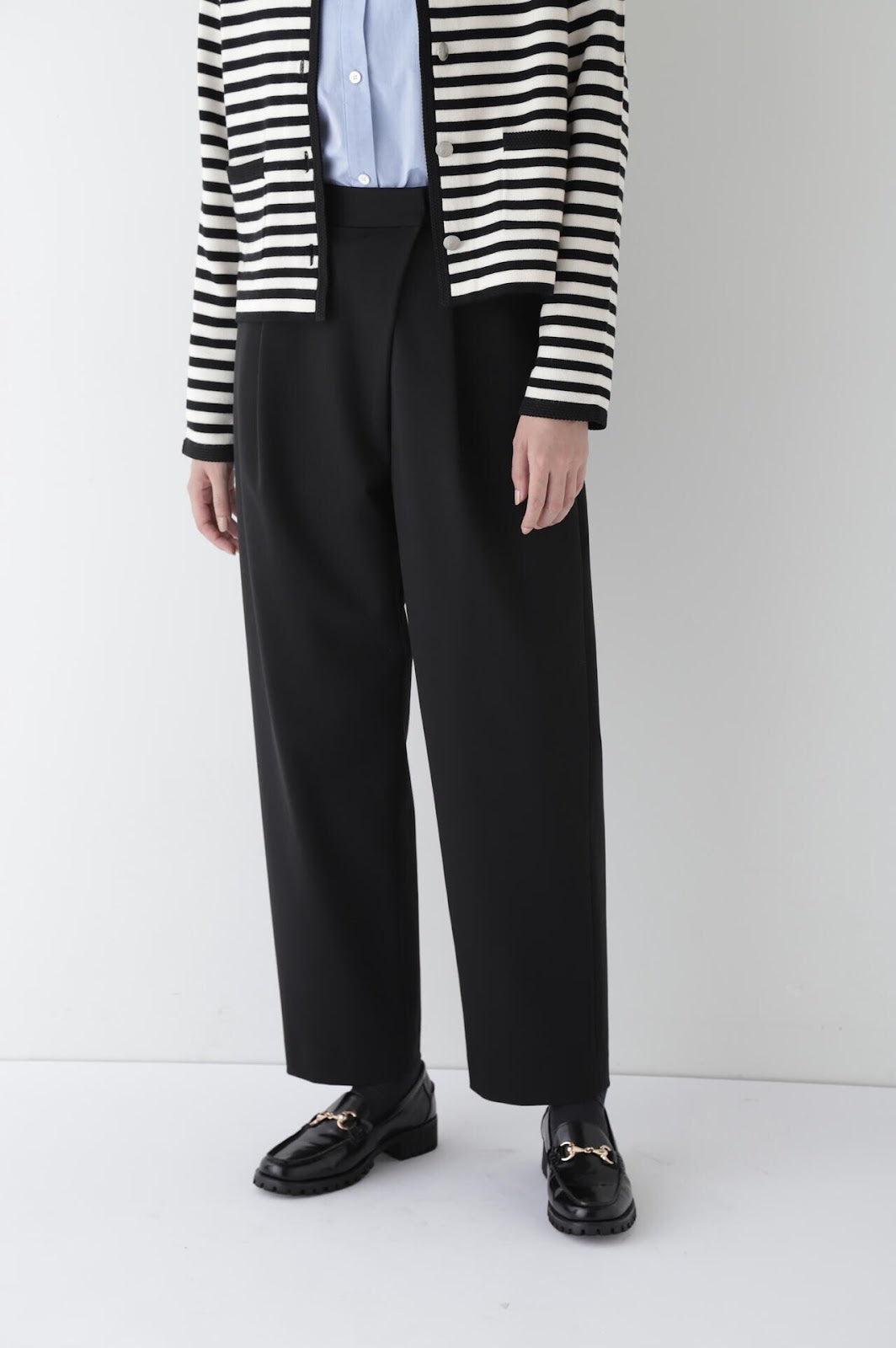 百搭錐形長褲,易穿又不失優雅 [設計特色] 這款帶裹身細節的錐形長褲採用備受喜愛的彈力蓬布面料製成。面料採用彈力蓬布製成,具有裹身式細節。彈力蓬布外觀漂亮,手感舒適,採用細支棉製成。面料質地結實,彈力適中,富有彈性。建議搭配:搭配同種面料的外套或襯衫,適合通勤或偶爾穿著。這款美觀簡便的長褲還可與 T 恤和針織衫等休閒單品搭配,適用於各種場合。