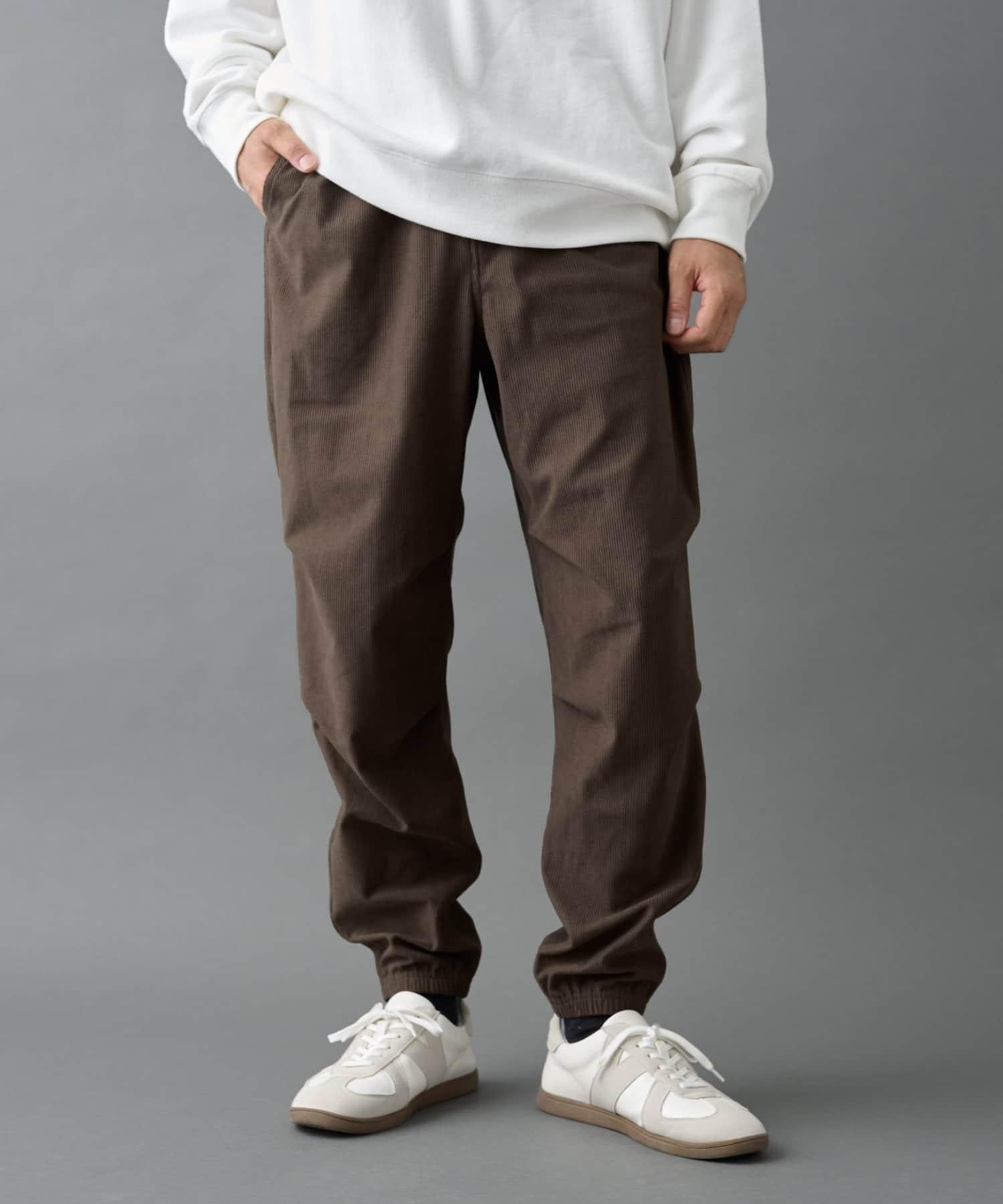 燈芯絨慢跑褲是秋冬季的流行面料。