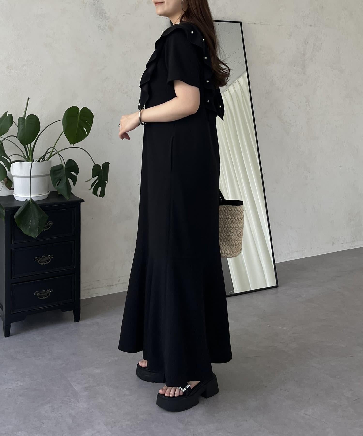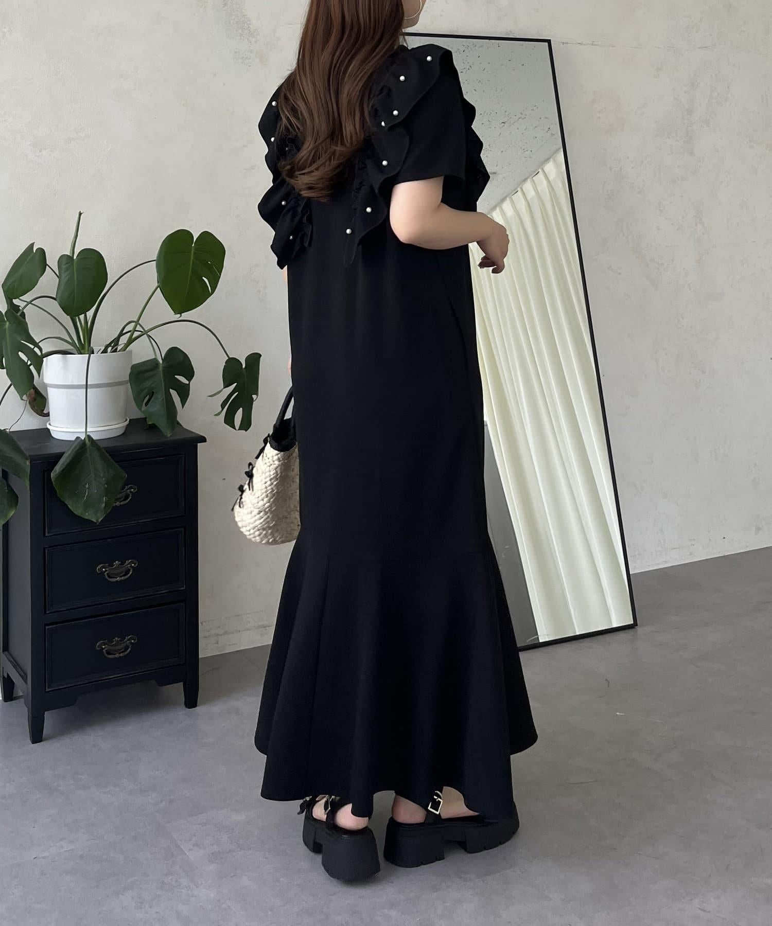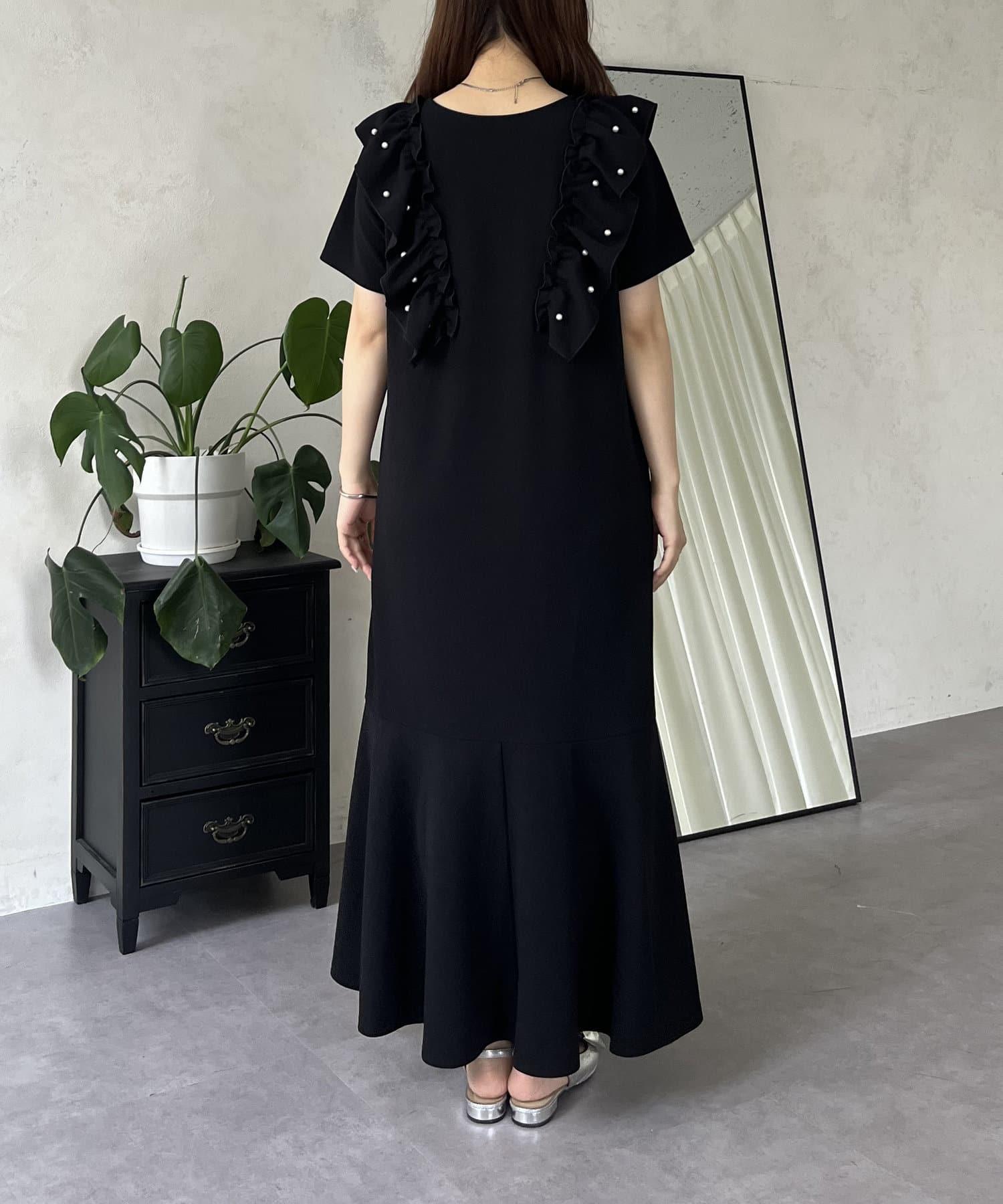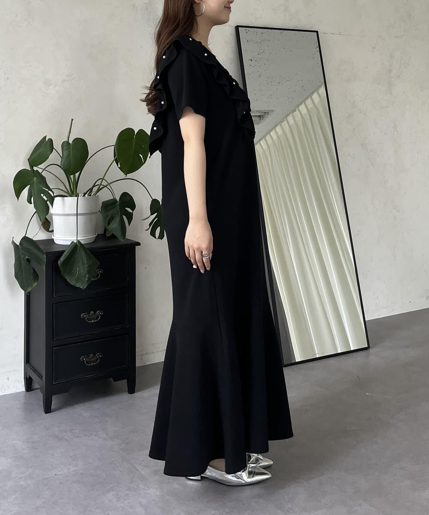 彈力珍珠荷葉邊人魚剪裁連衣裙