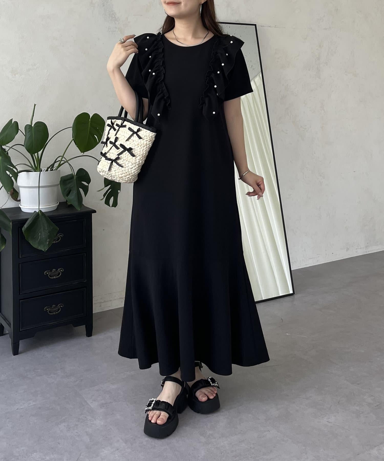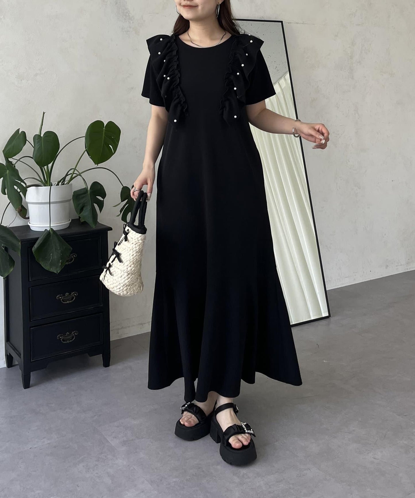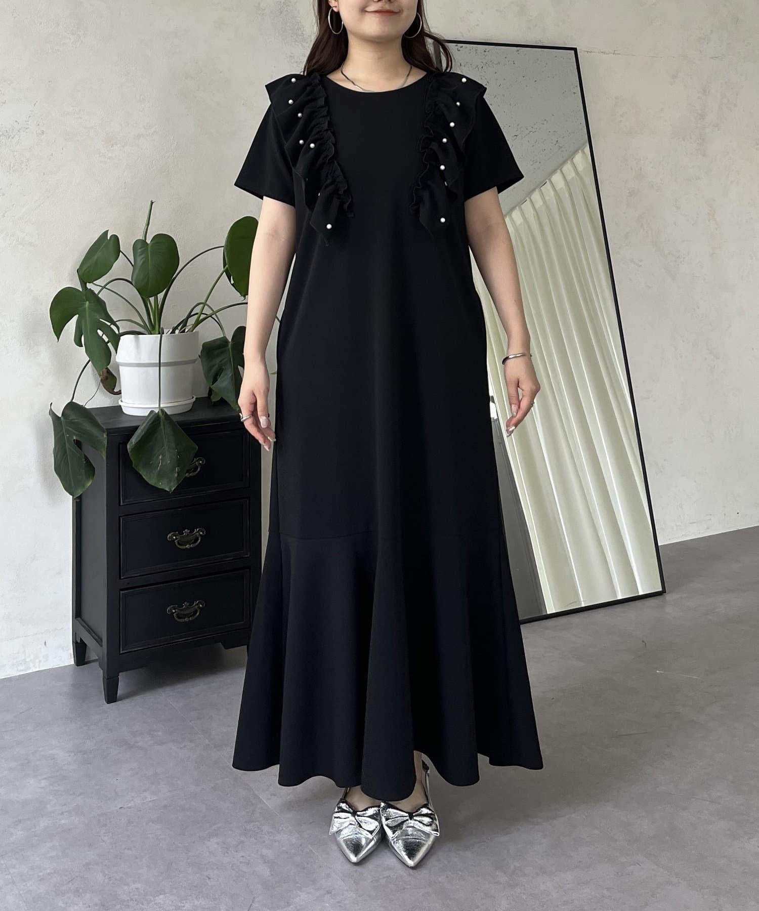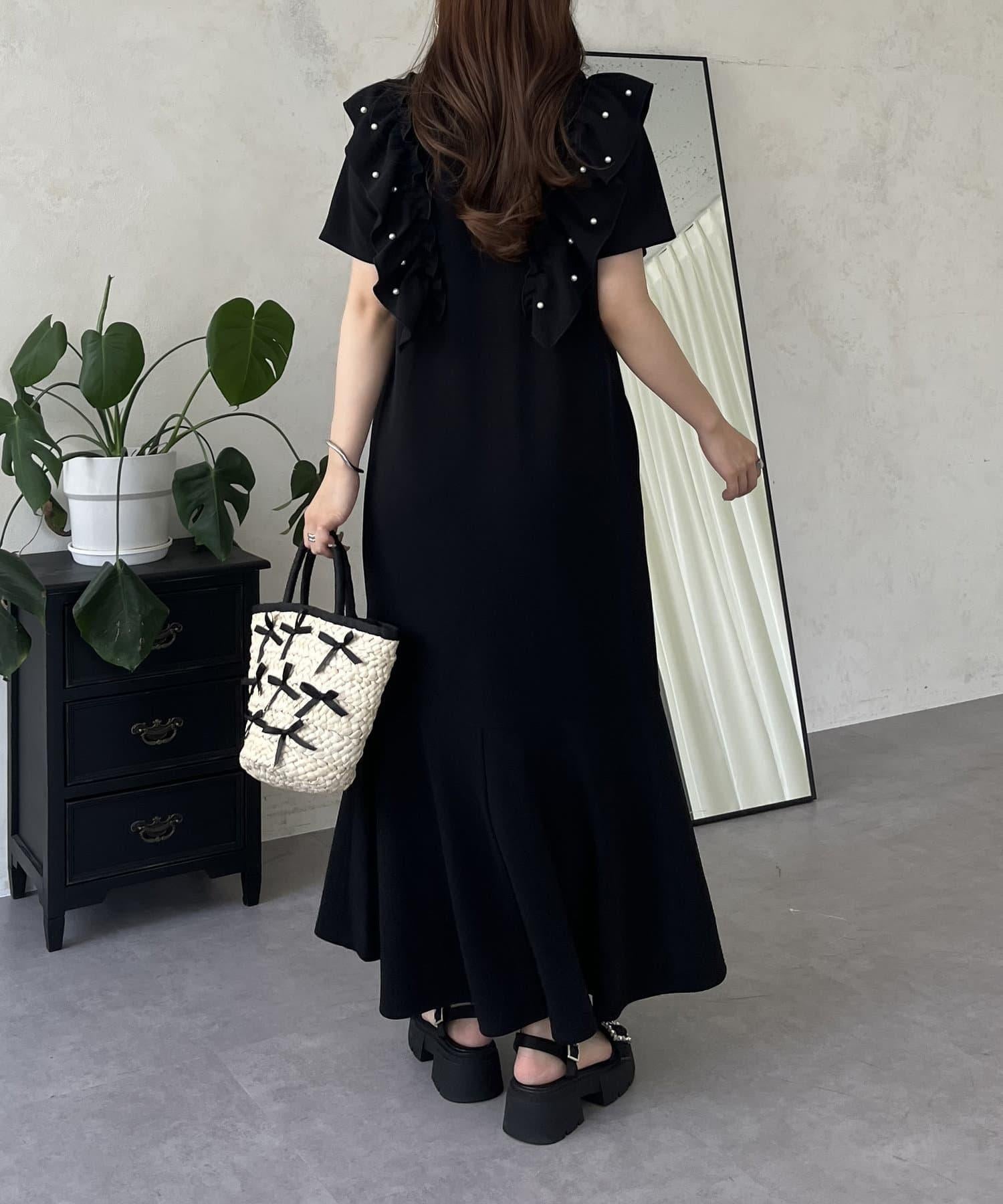 彈力珍珠荷葉邊人魚剪裁連衣裙