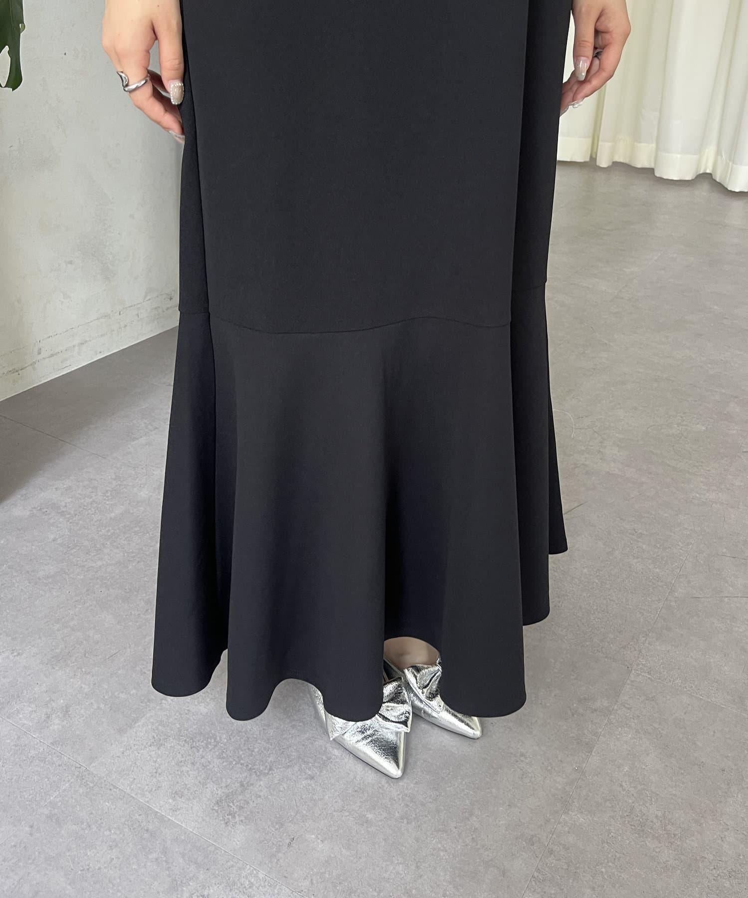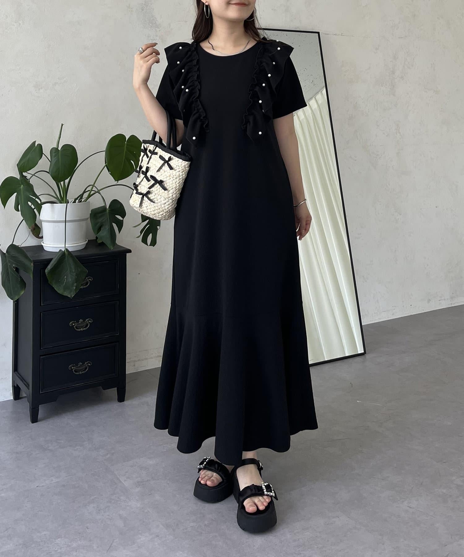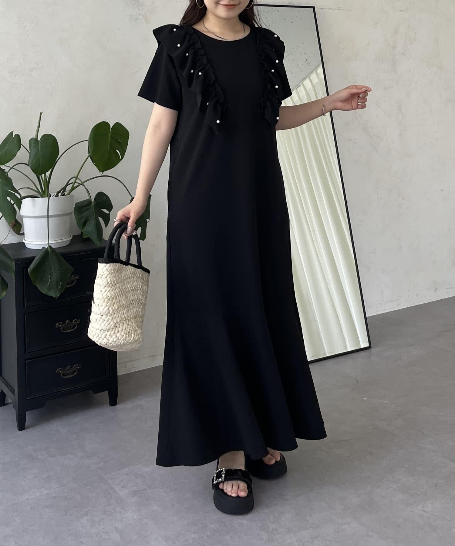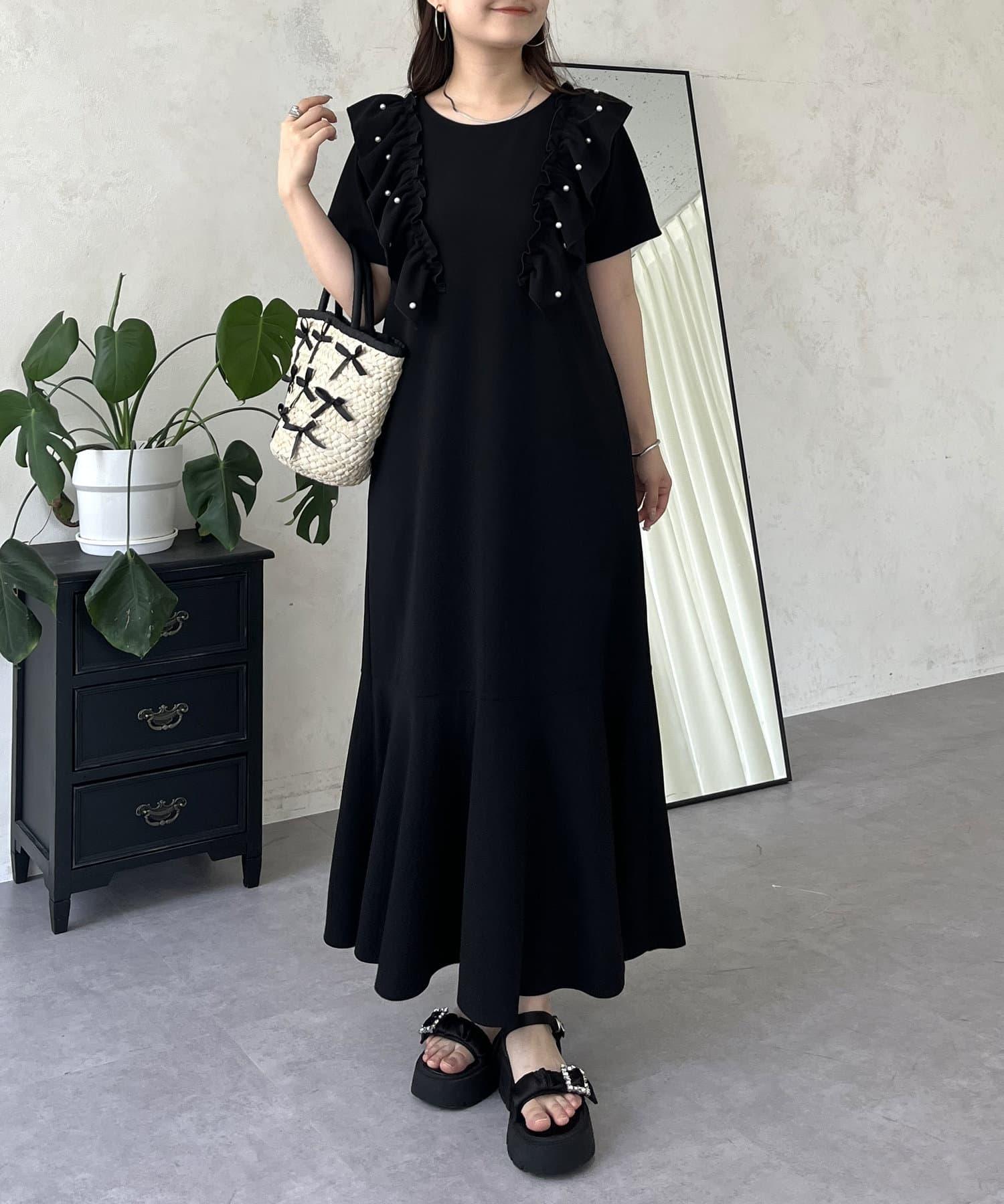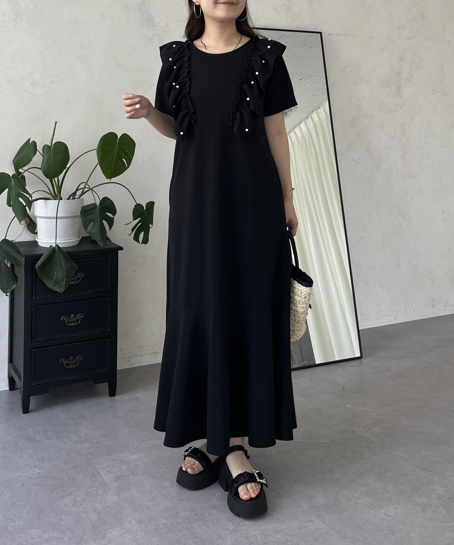 彈力珍珠荷葉邊人魚剪裁連衣裙