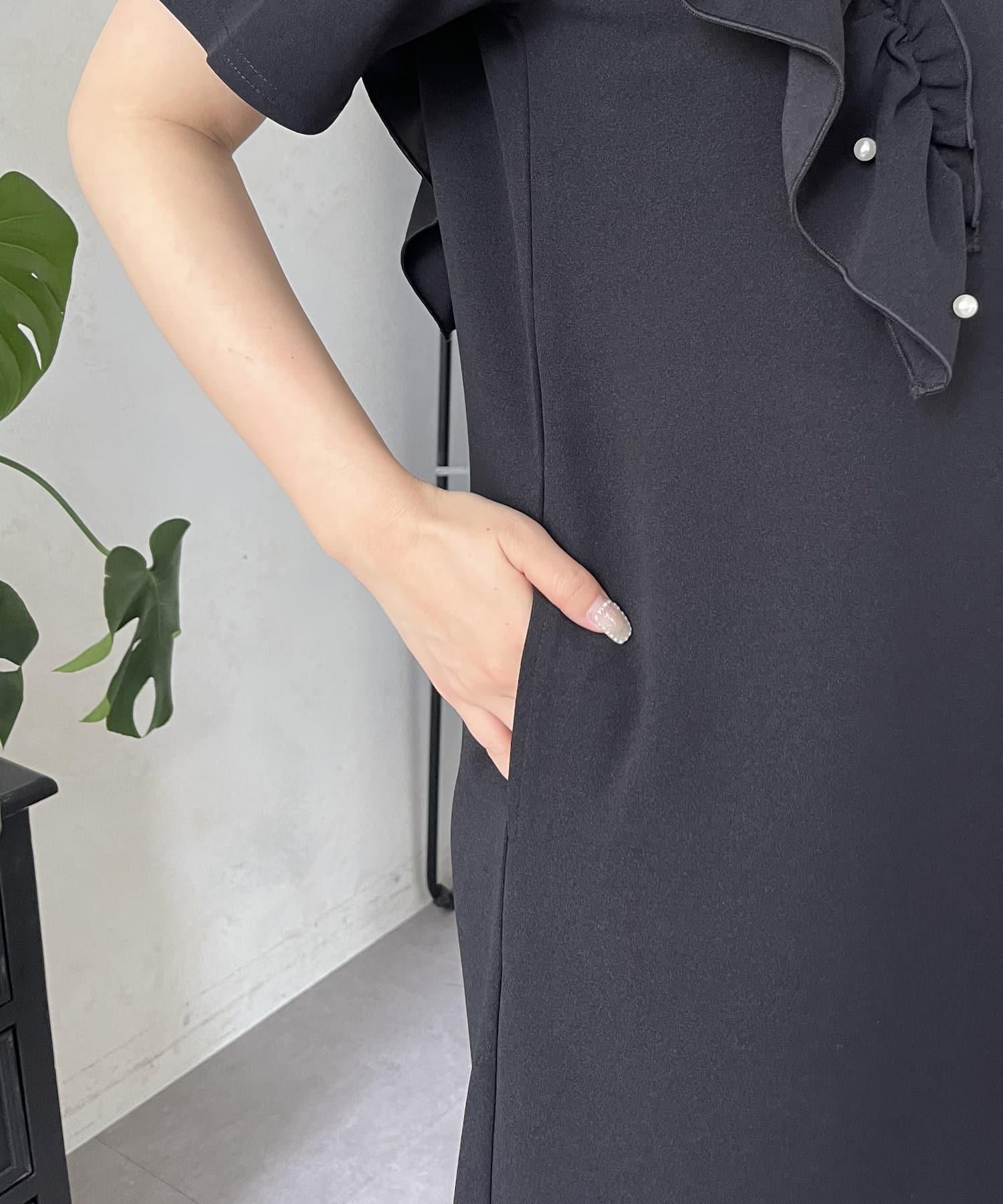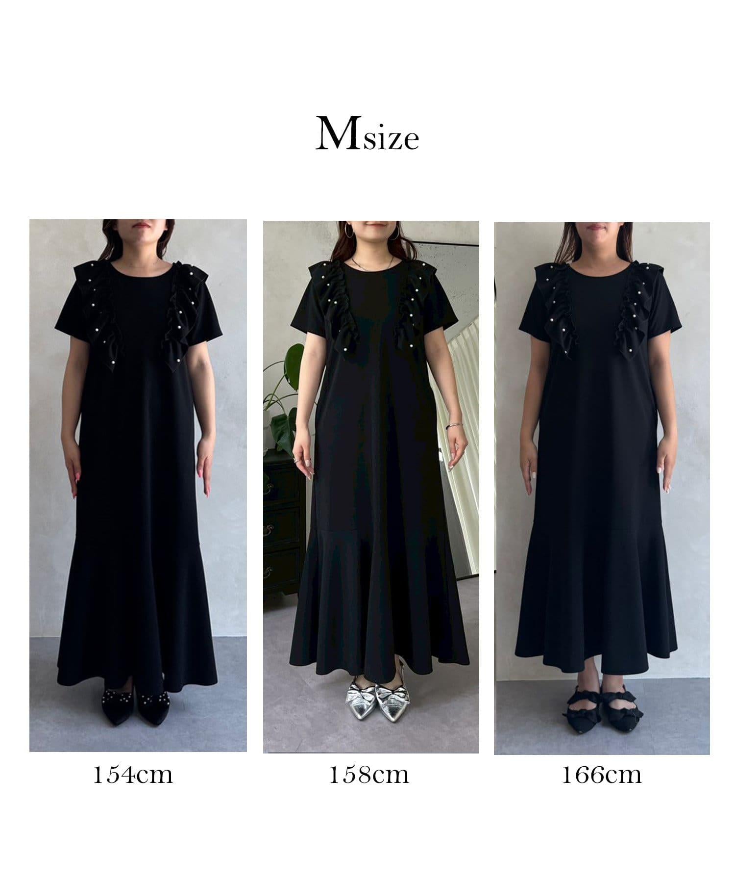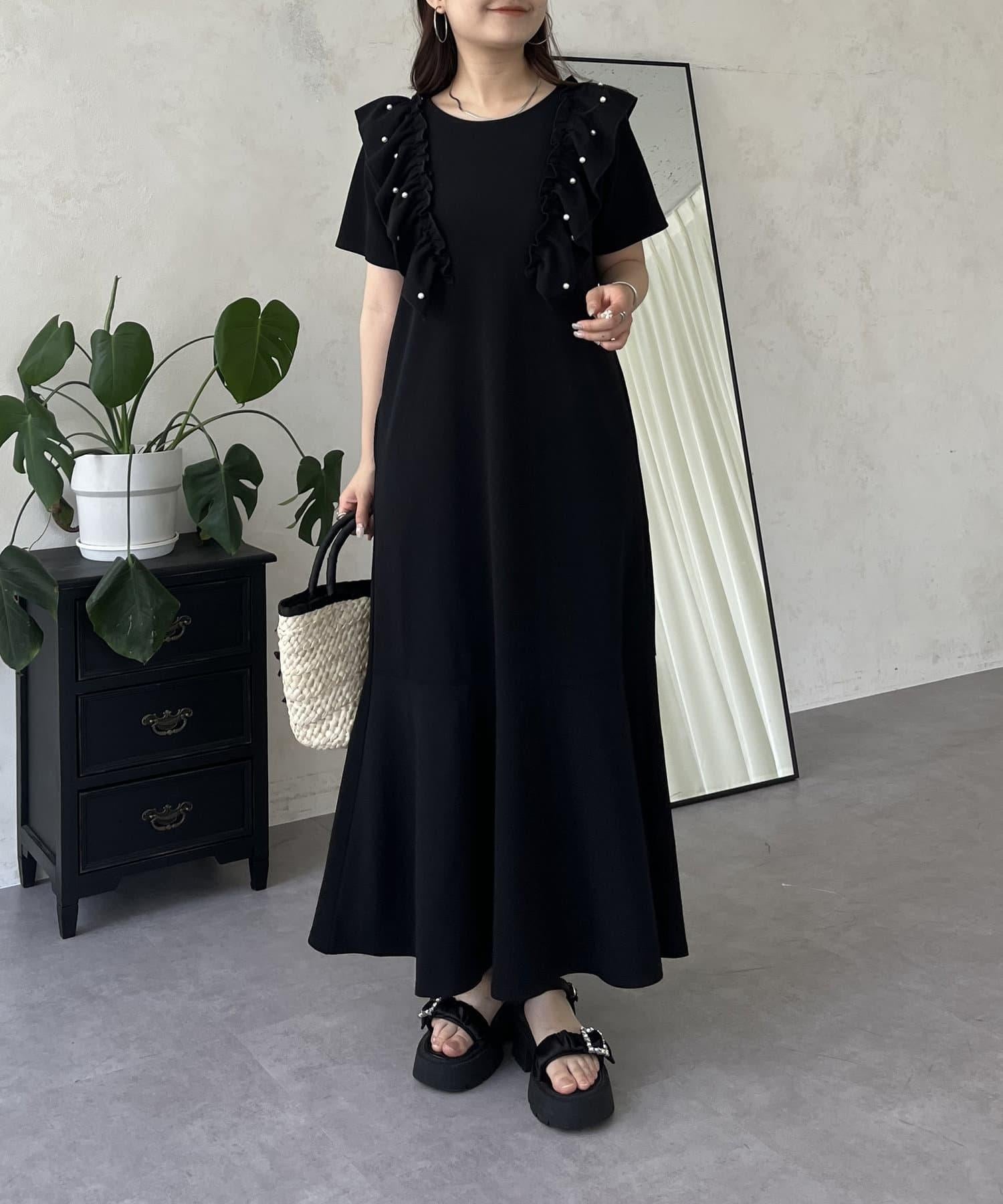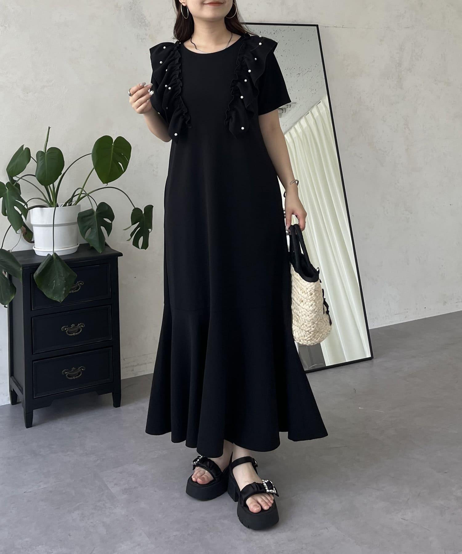 彈力珍珠荷葉邊人魚剪裁連衣裙