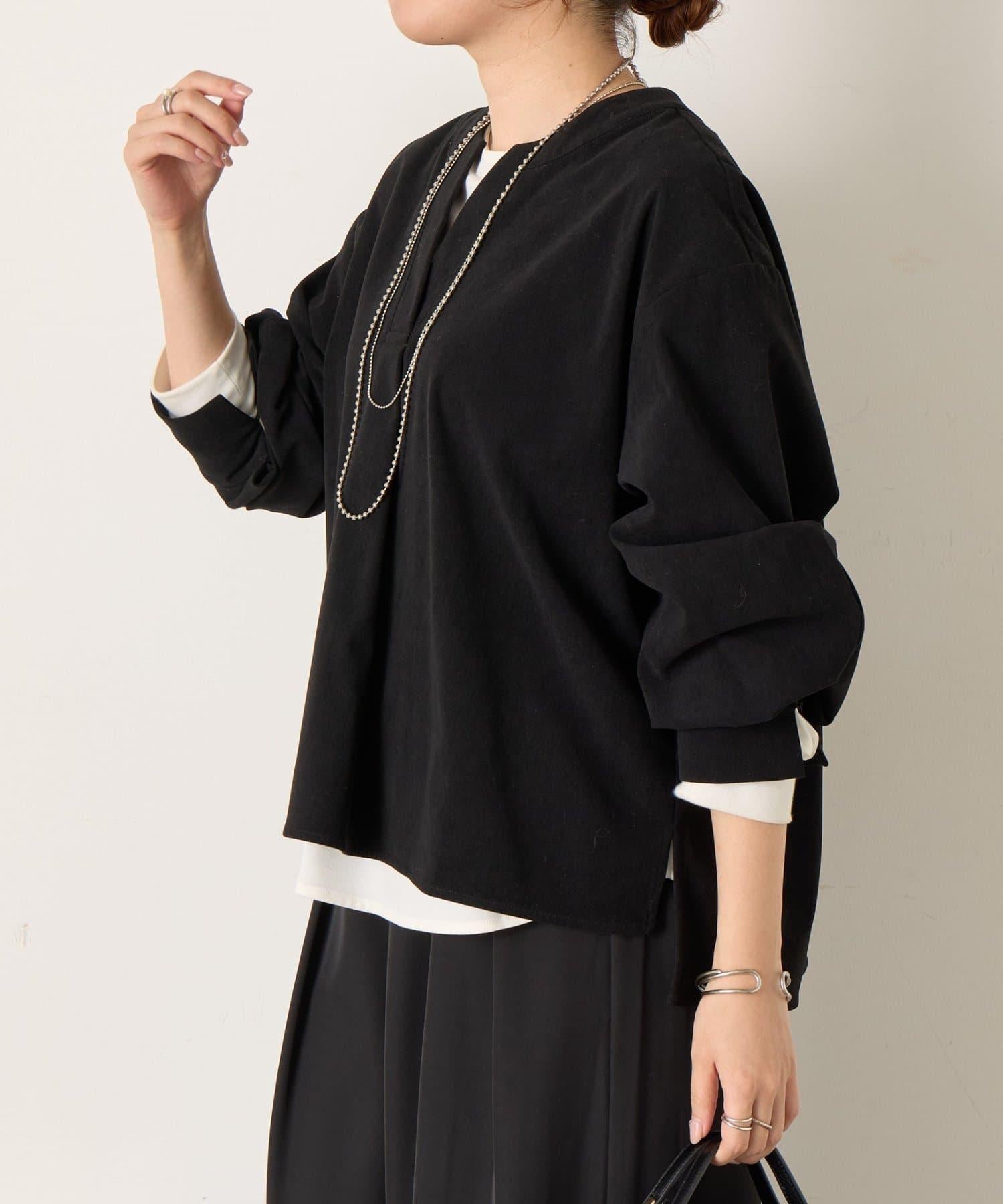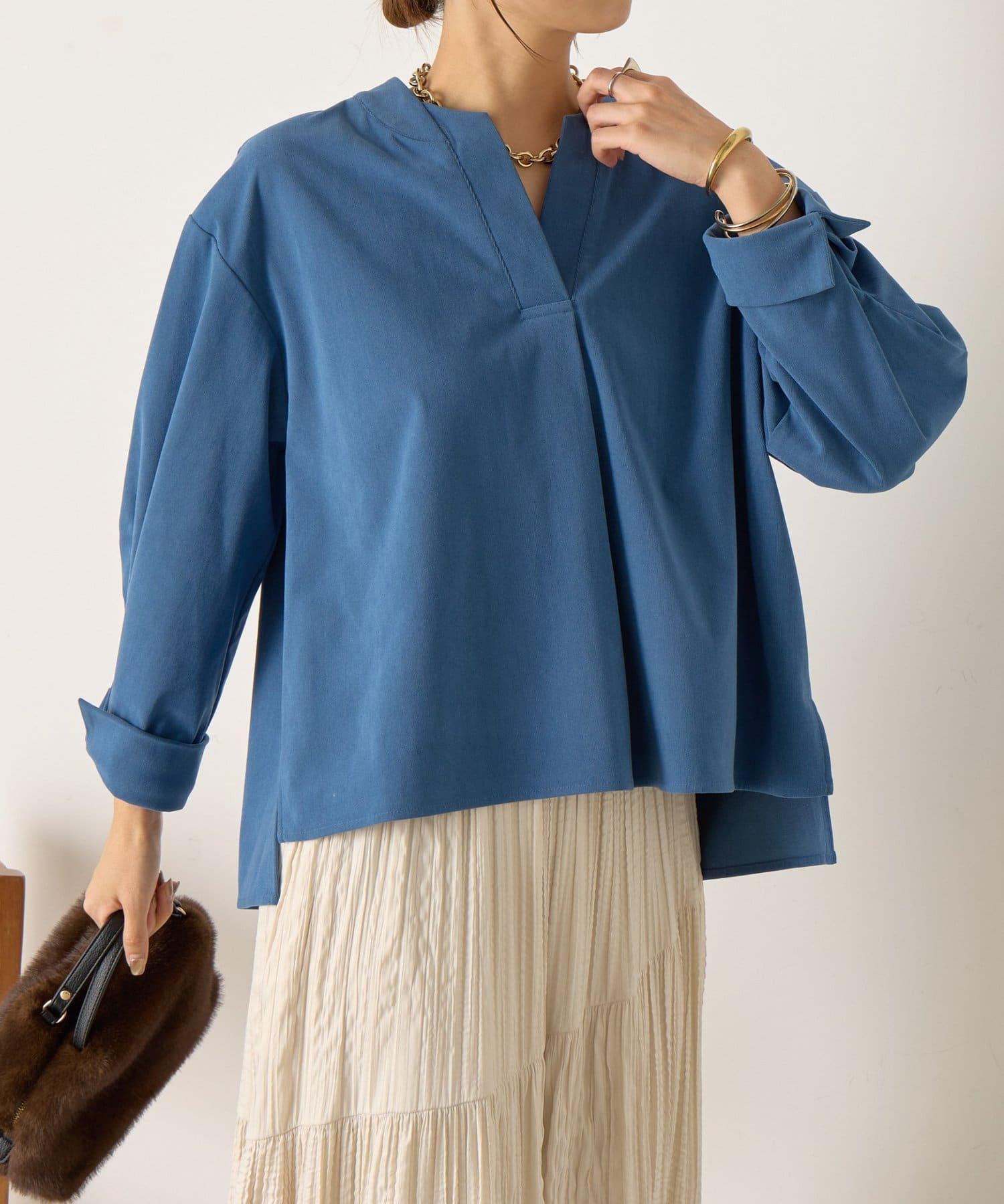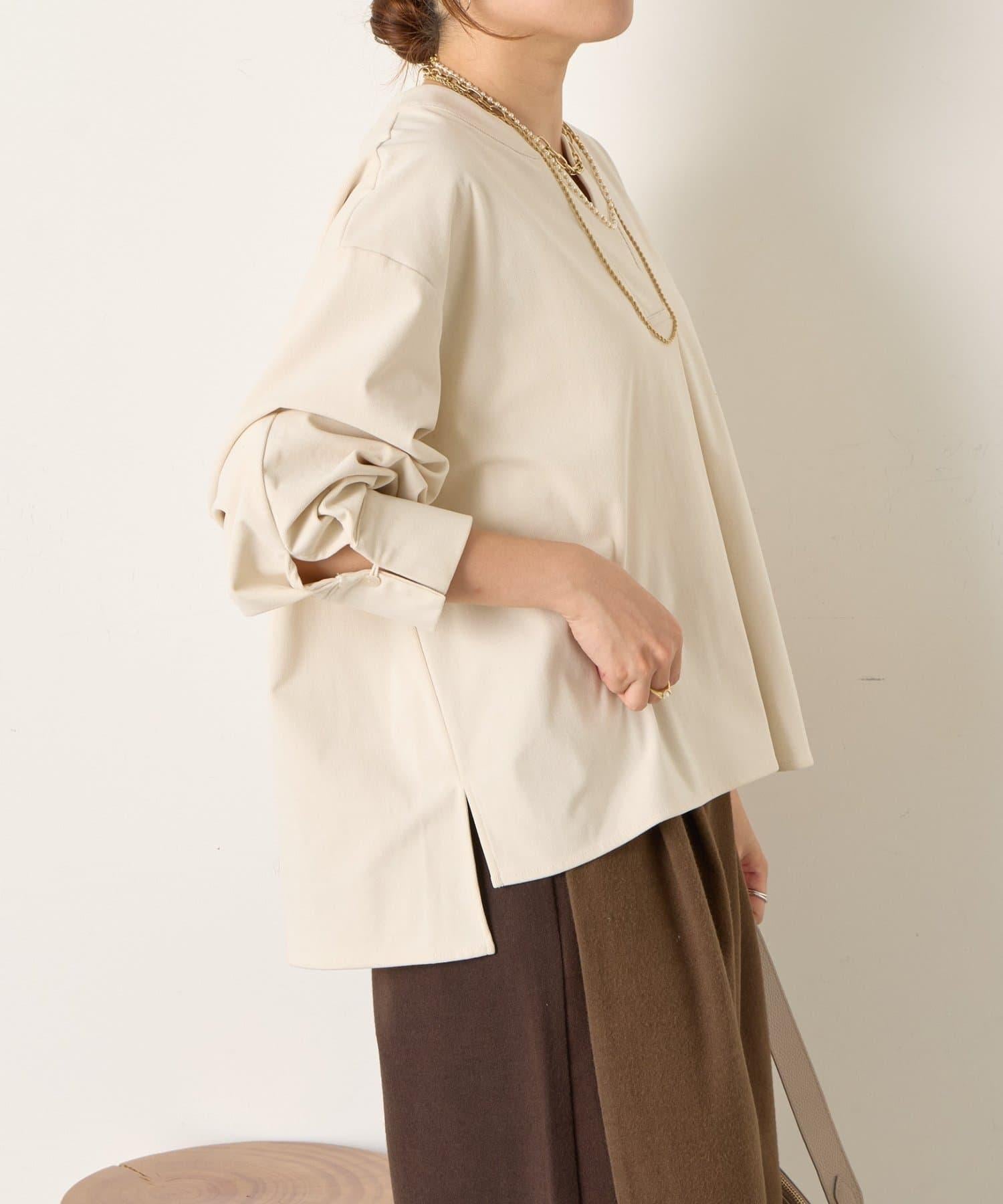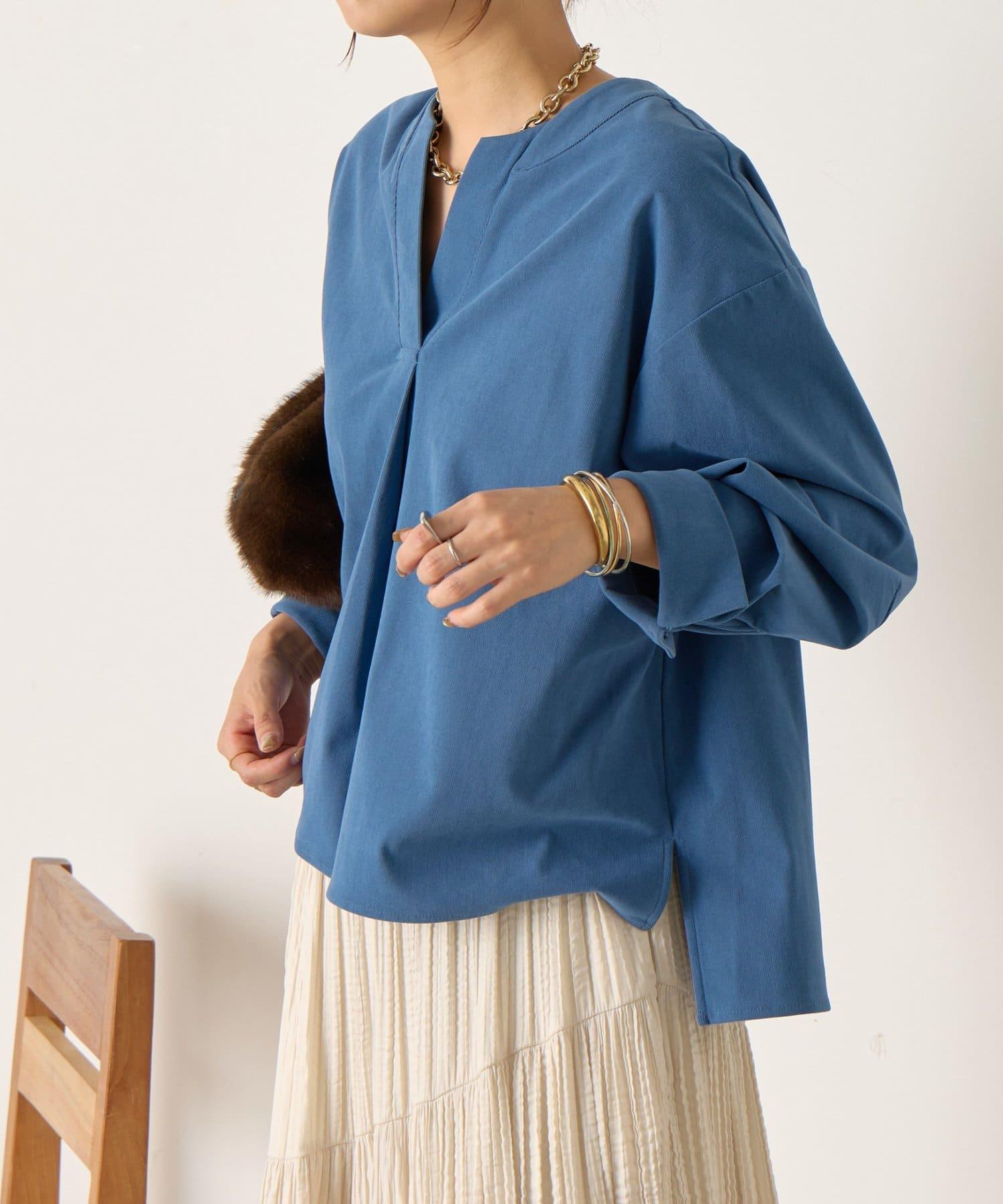 套頭上衣,領口採用 V 型開叉設計,外觀簡潔。
