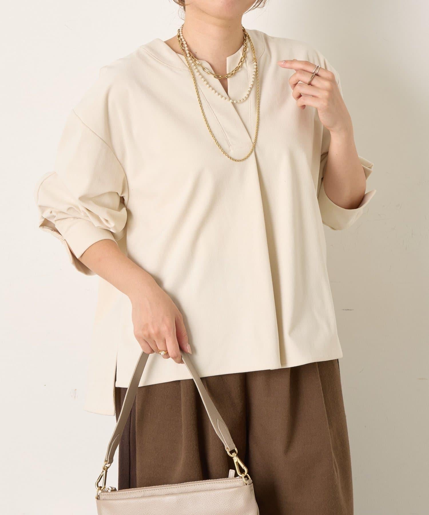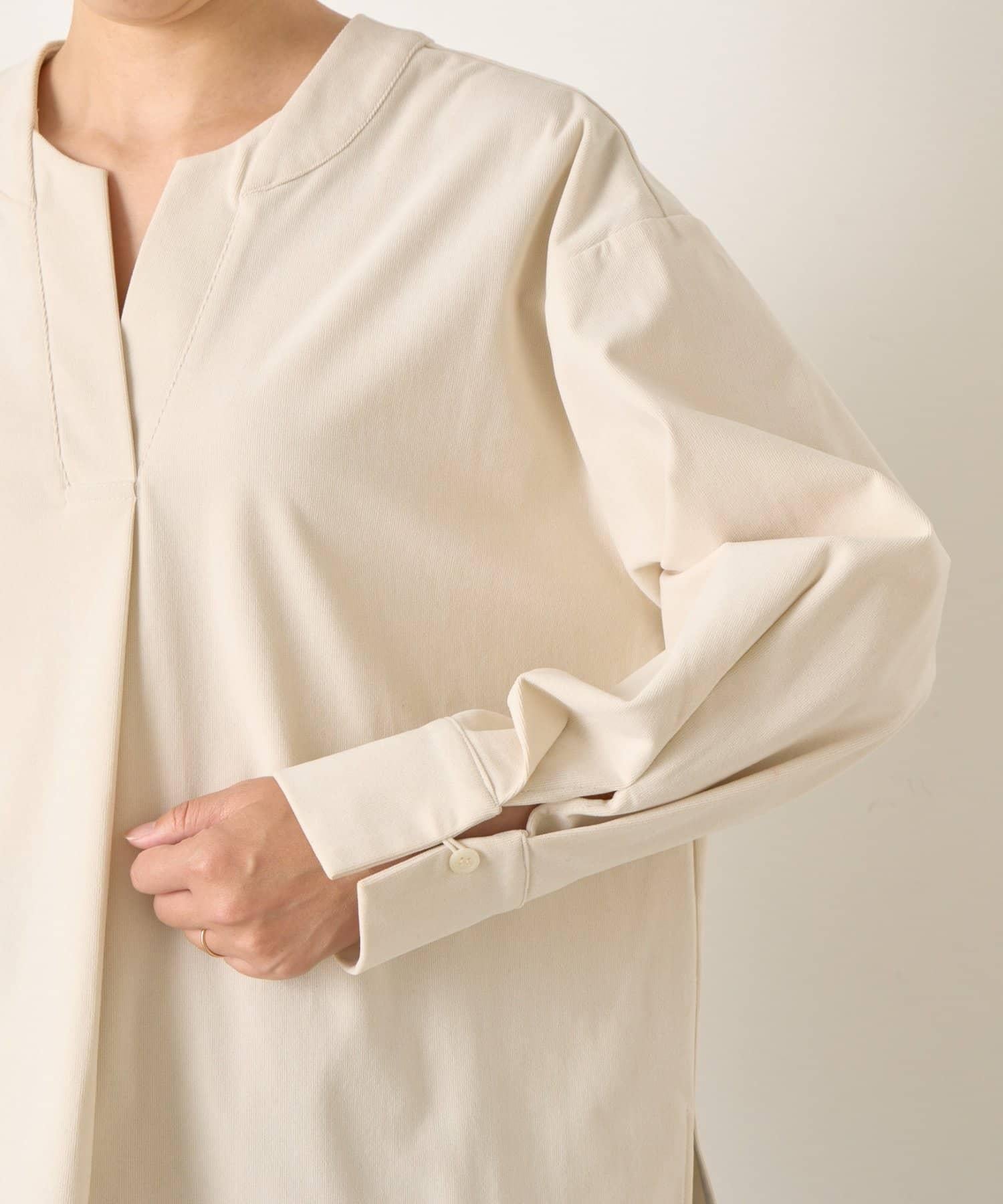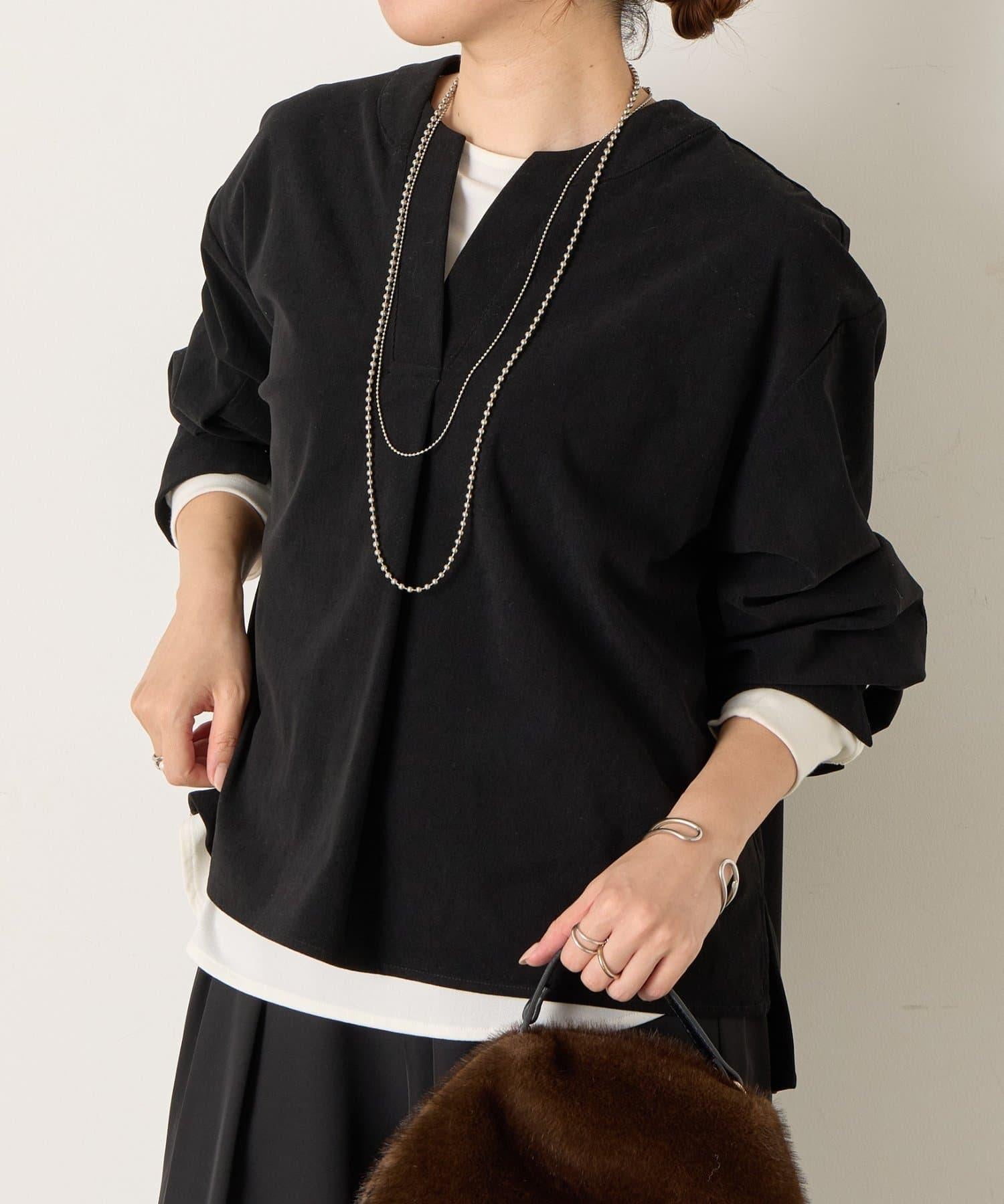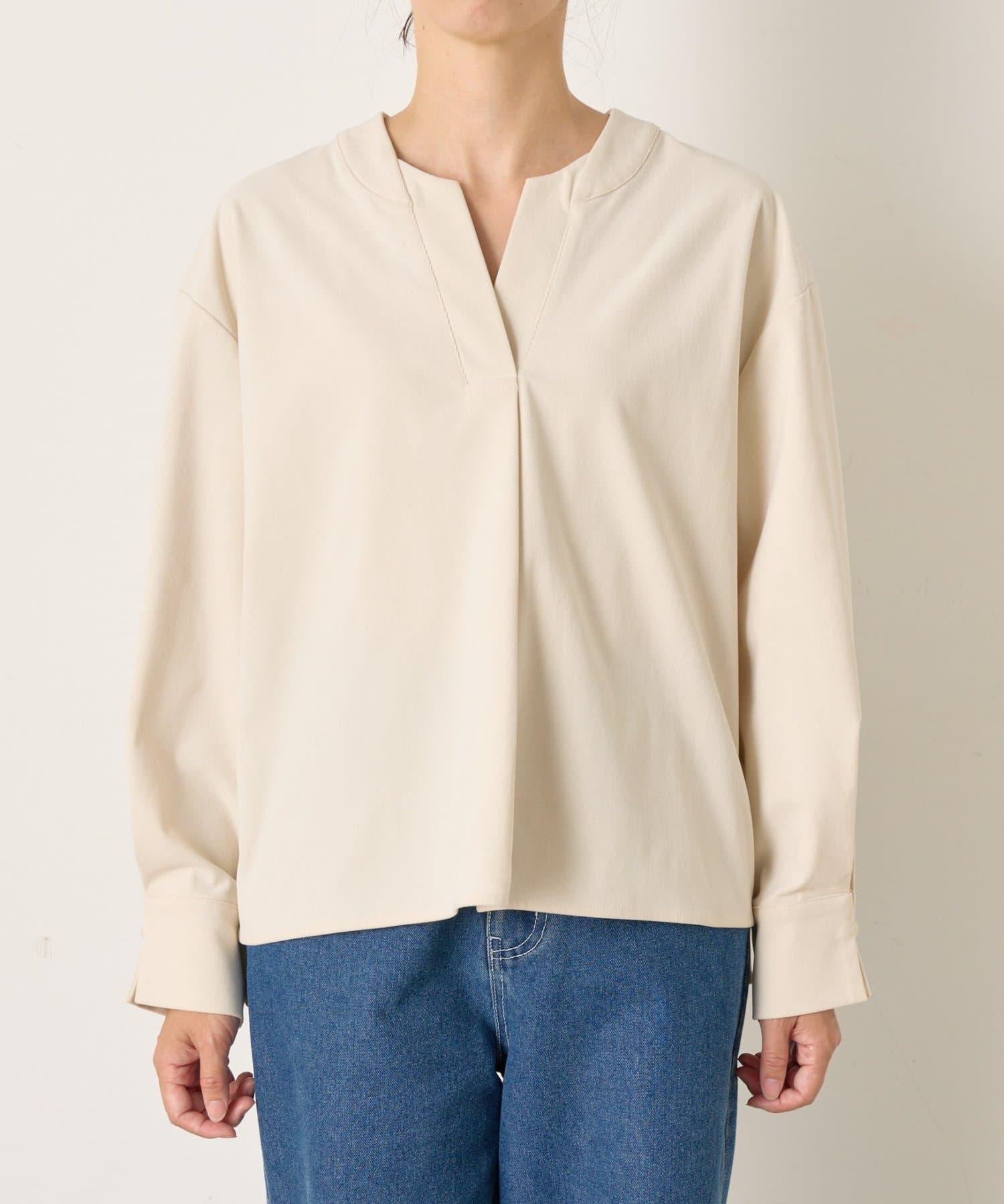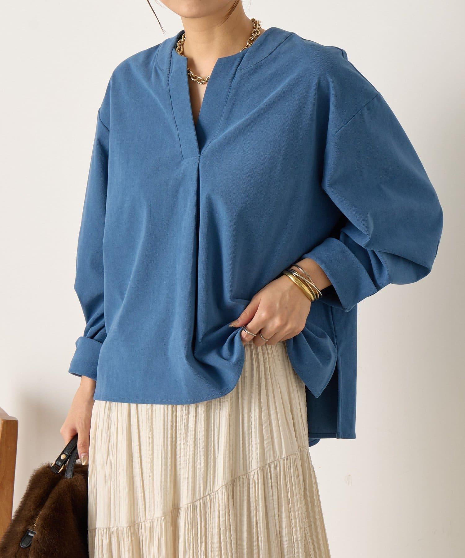 套頭上衣,領口採用 V 型開叉設計,外觀簡潔。